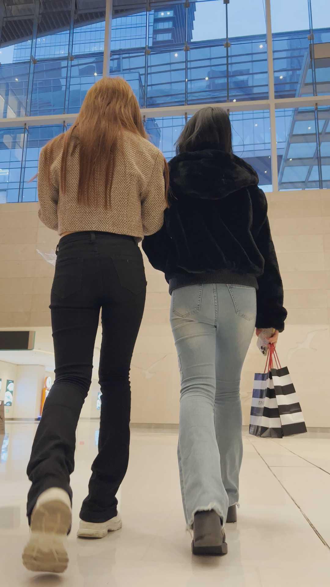 B1474黑牛仔裤与蓝色牛仔裤两妹子