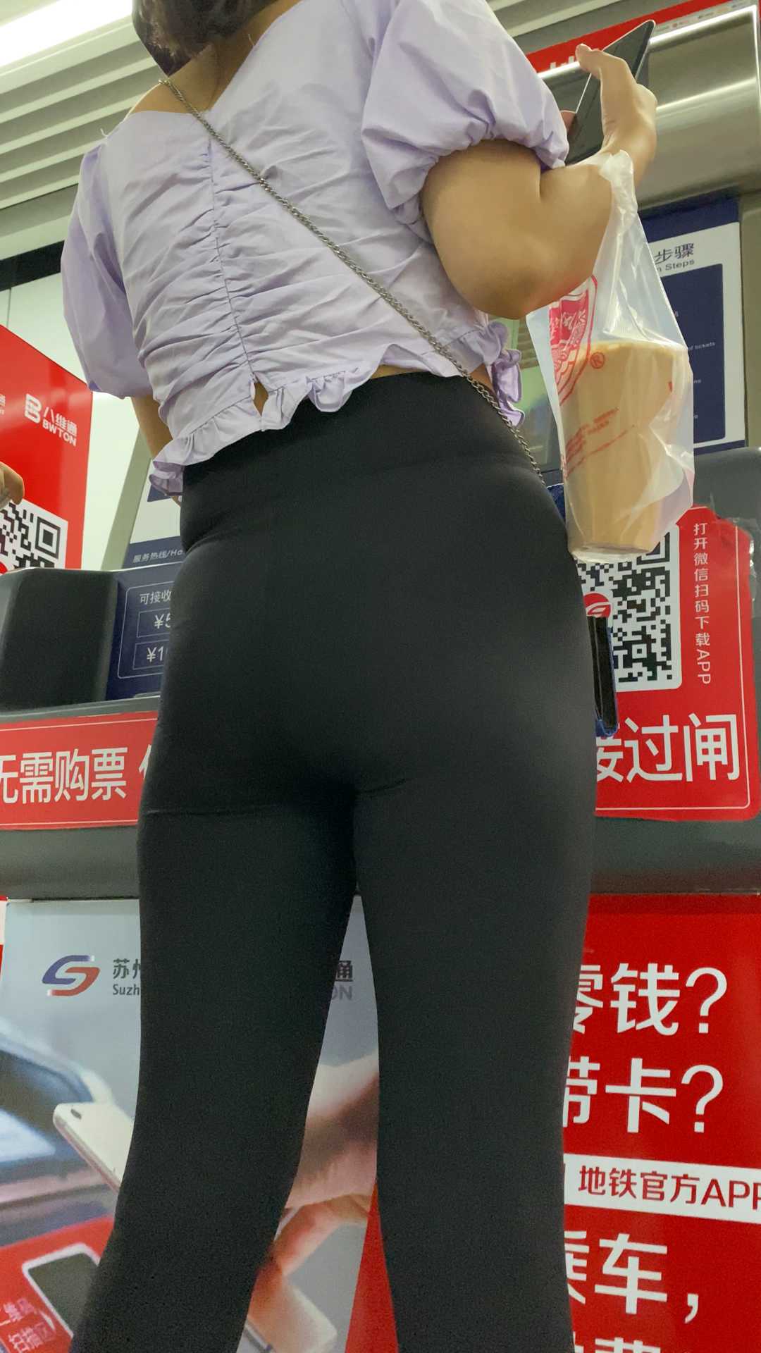 B1483黑瑜伽裤大宽臀饱满内痕美女