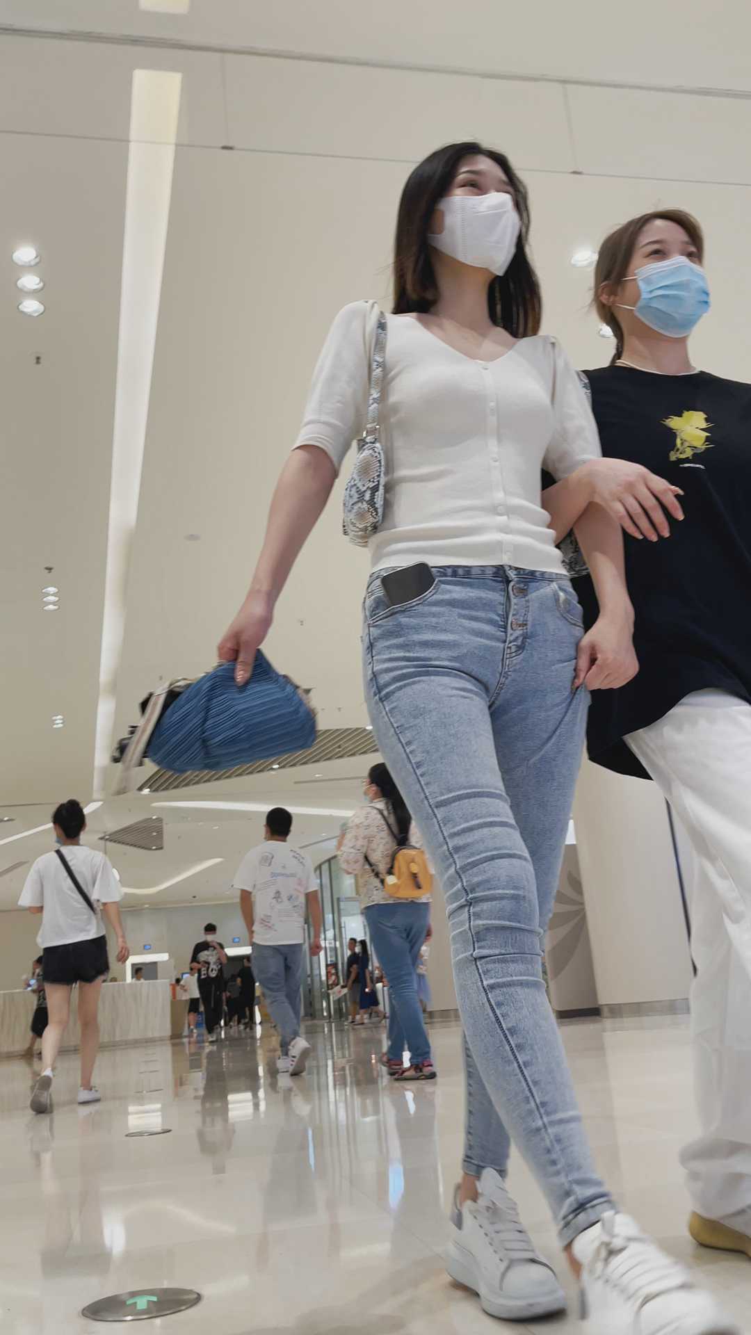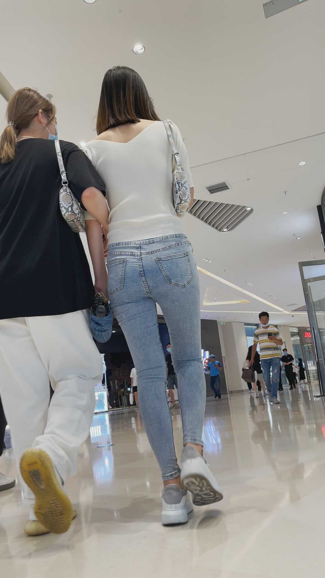 B175商场紧身包臀灰牛仔妹子小姐姐