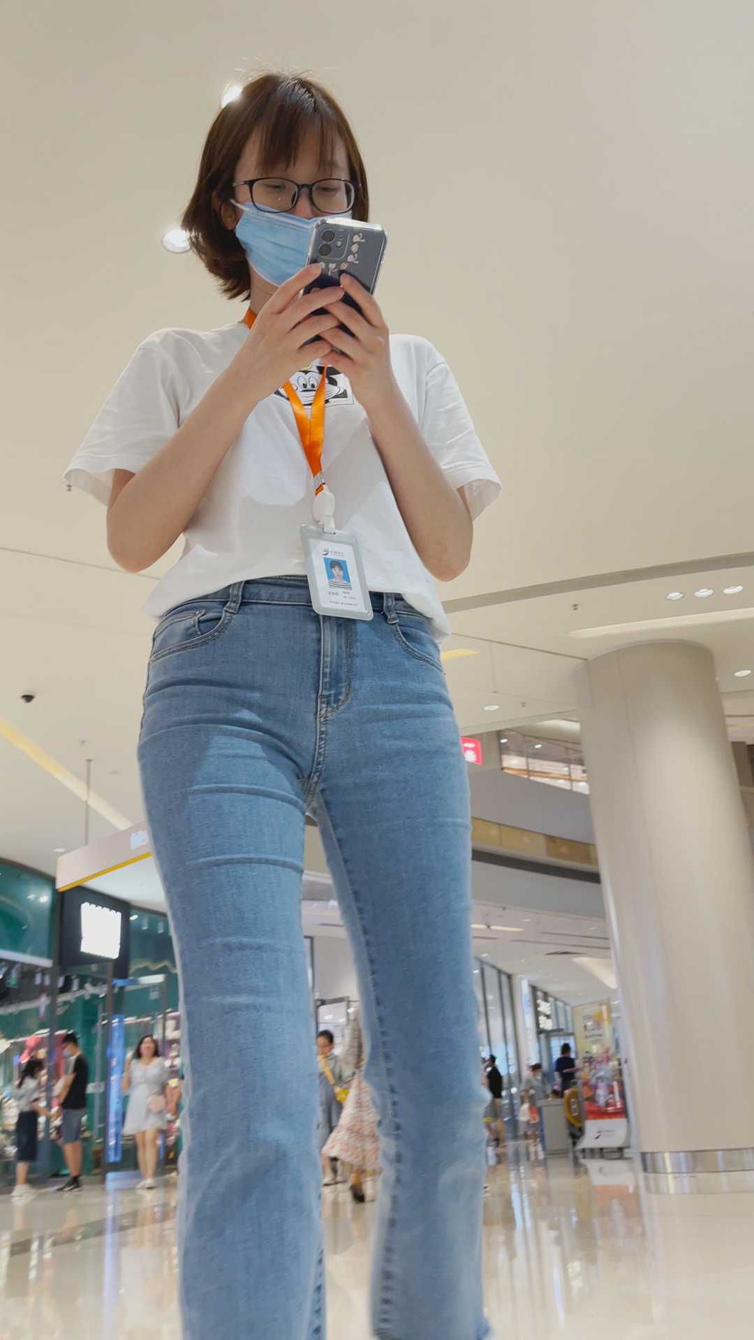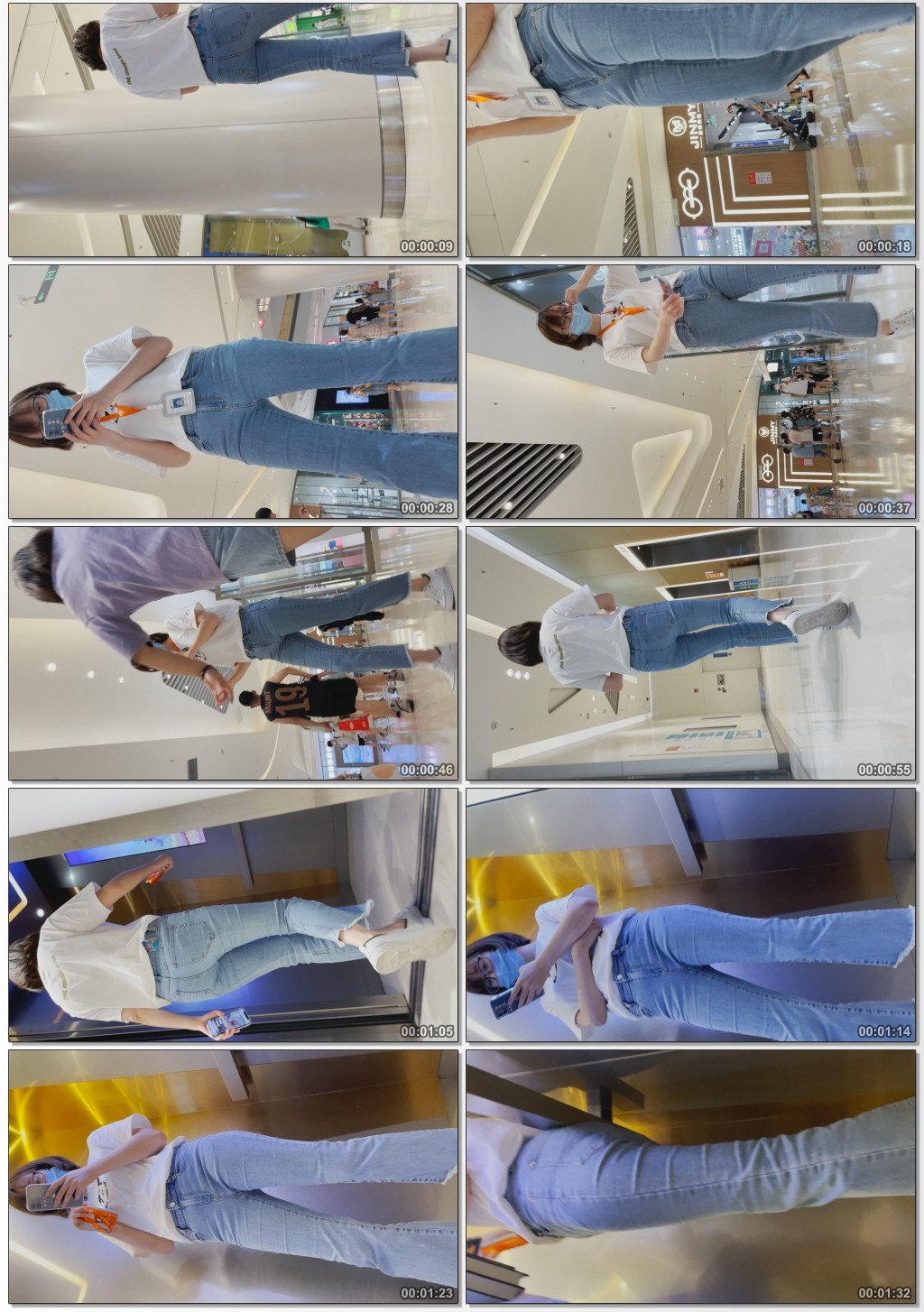 B186商场紧身牛仔眼镜妹
