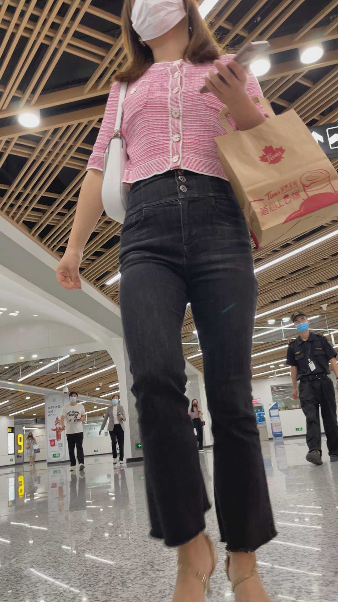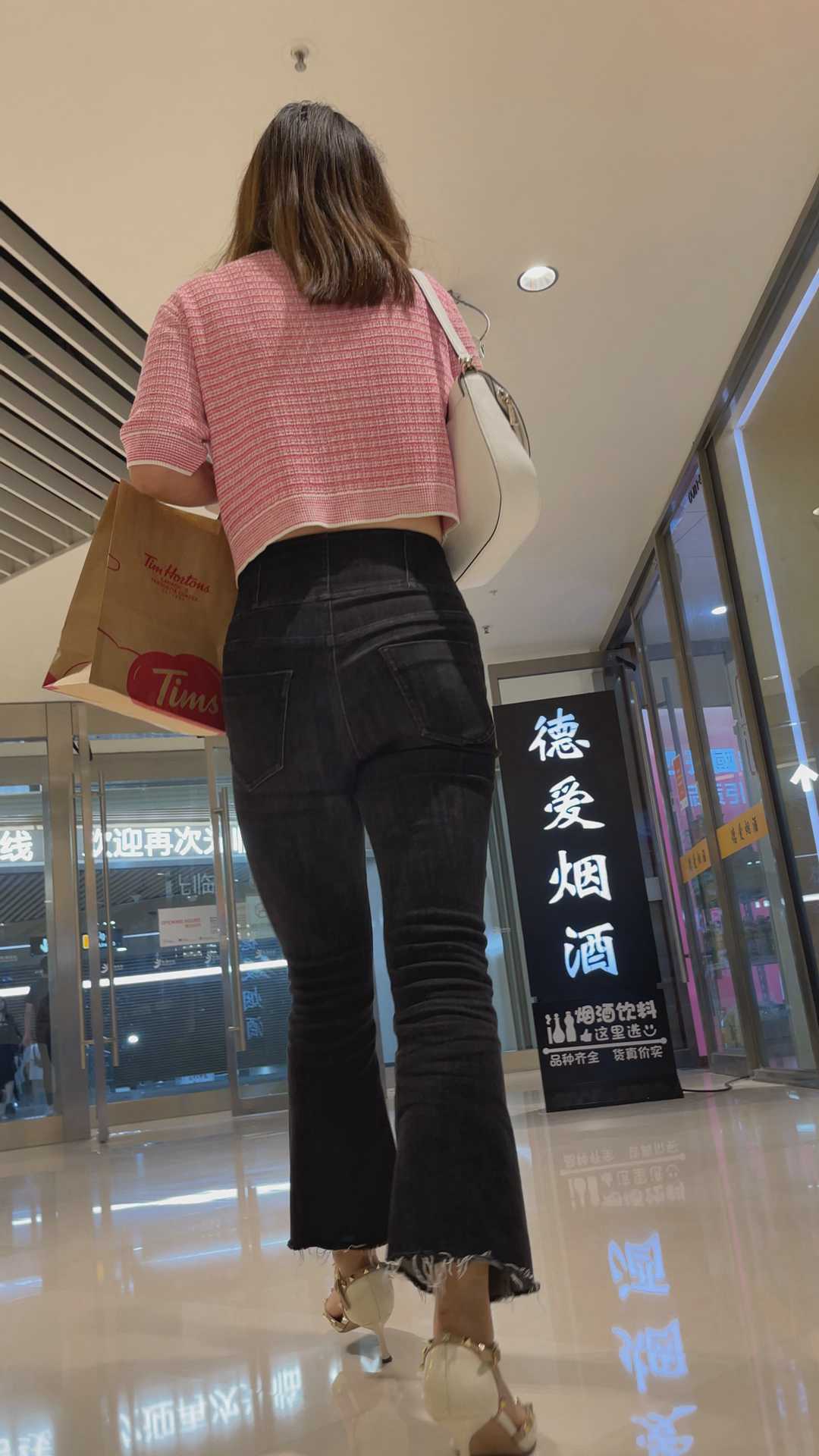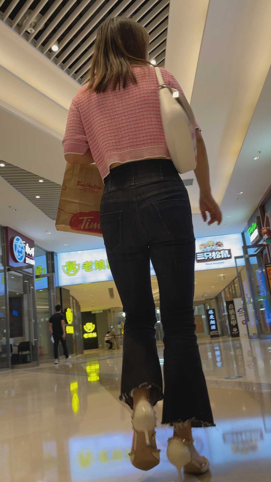 B193商场紧身黑牛仔喇叭裤妹子