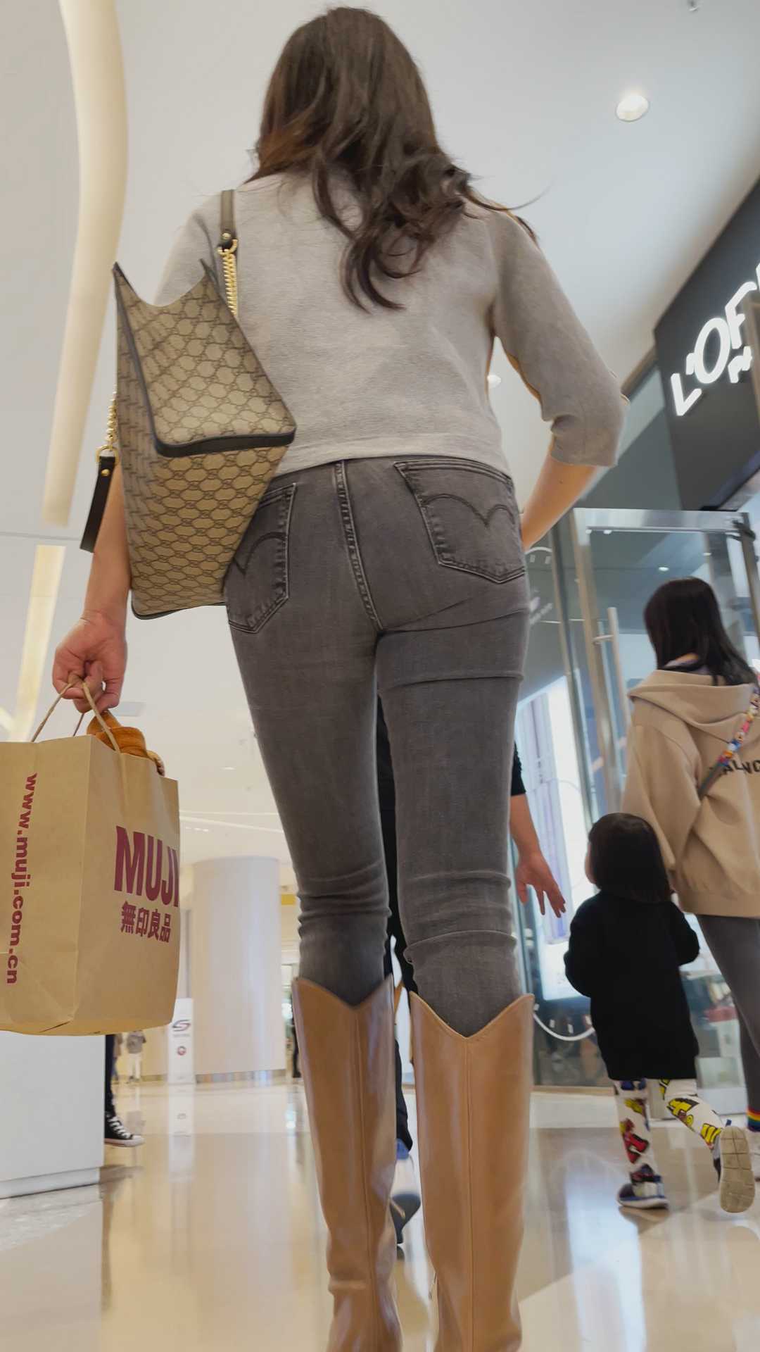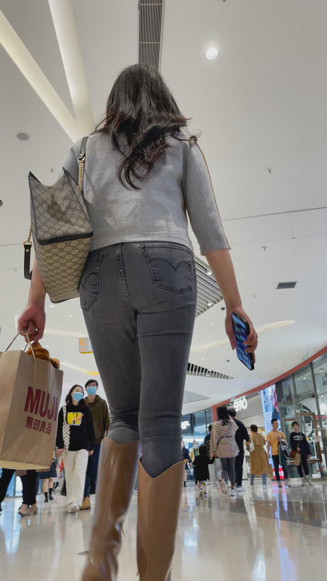 B216商场高挑灰牛仔紧臀少妇