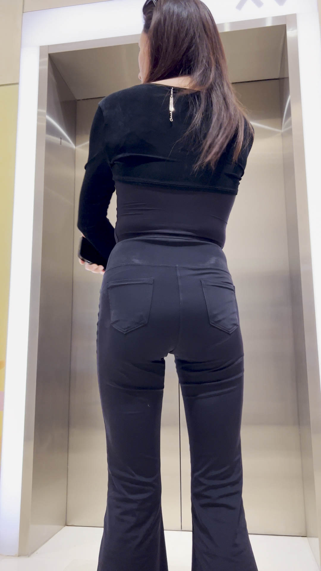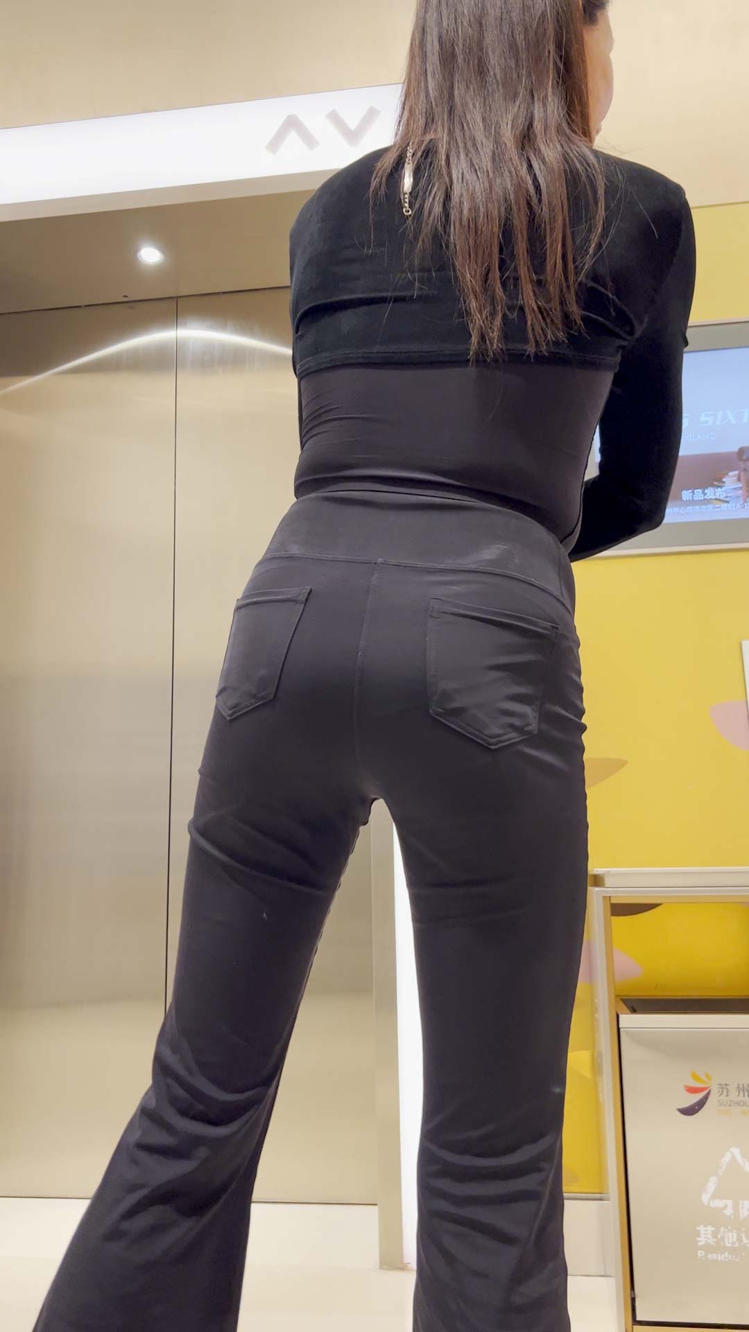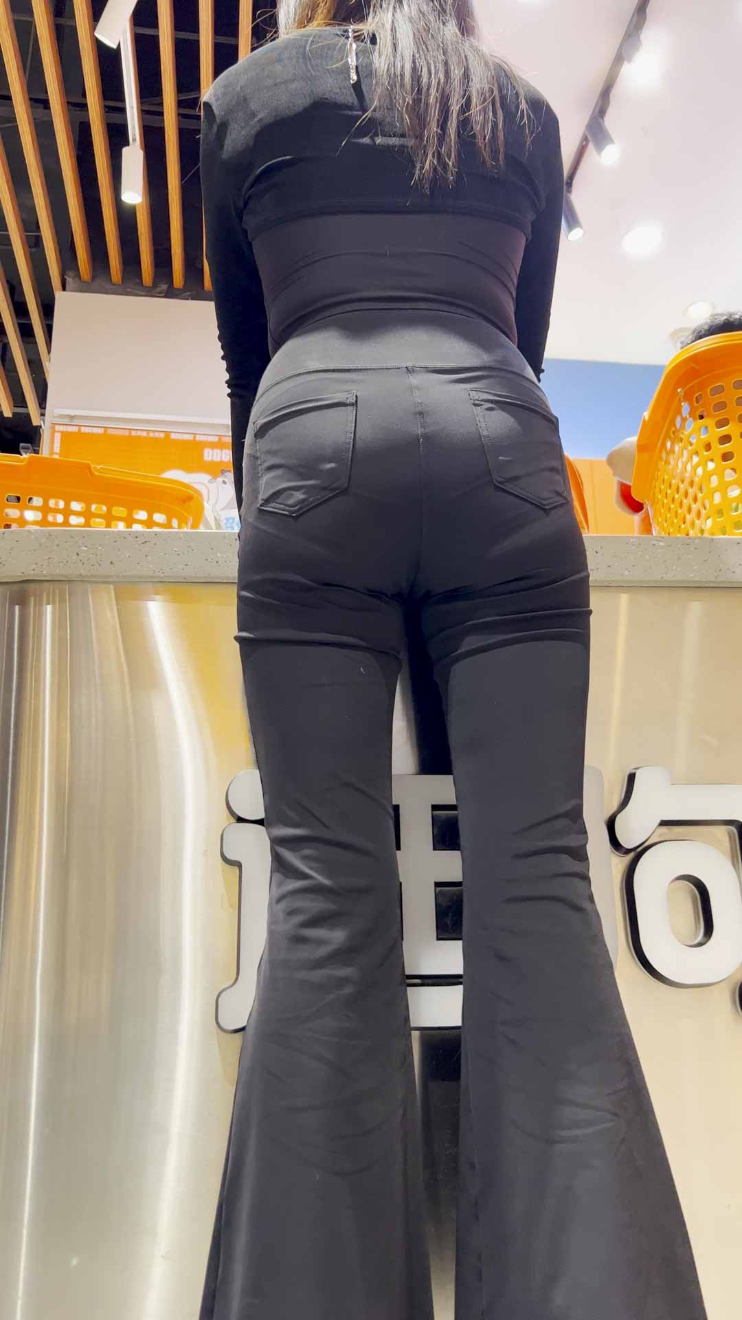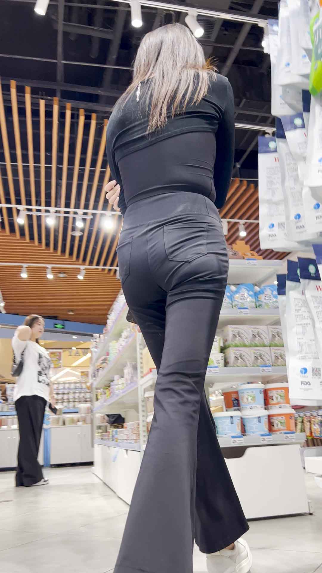 B244高挑黑裤透内痕包臀少妇