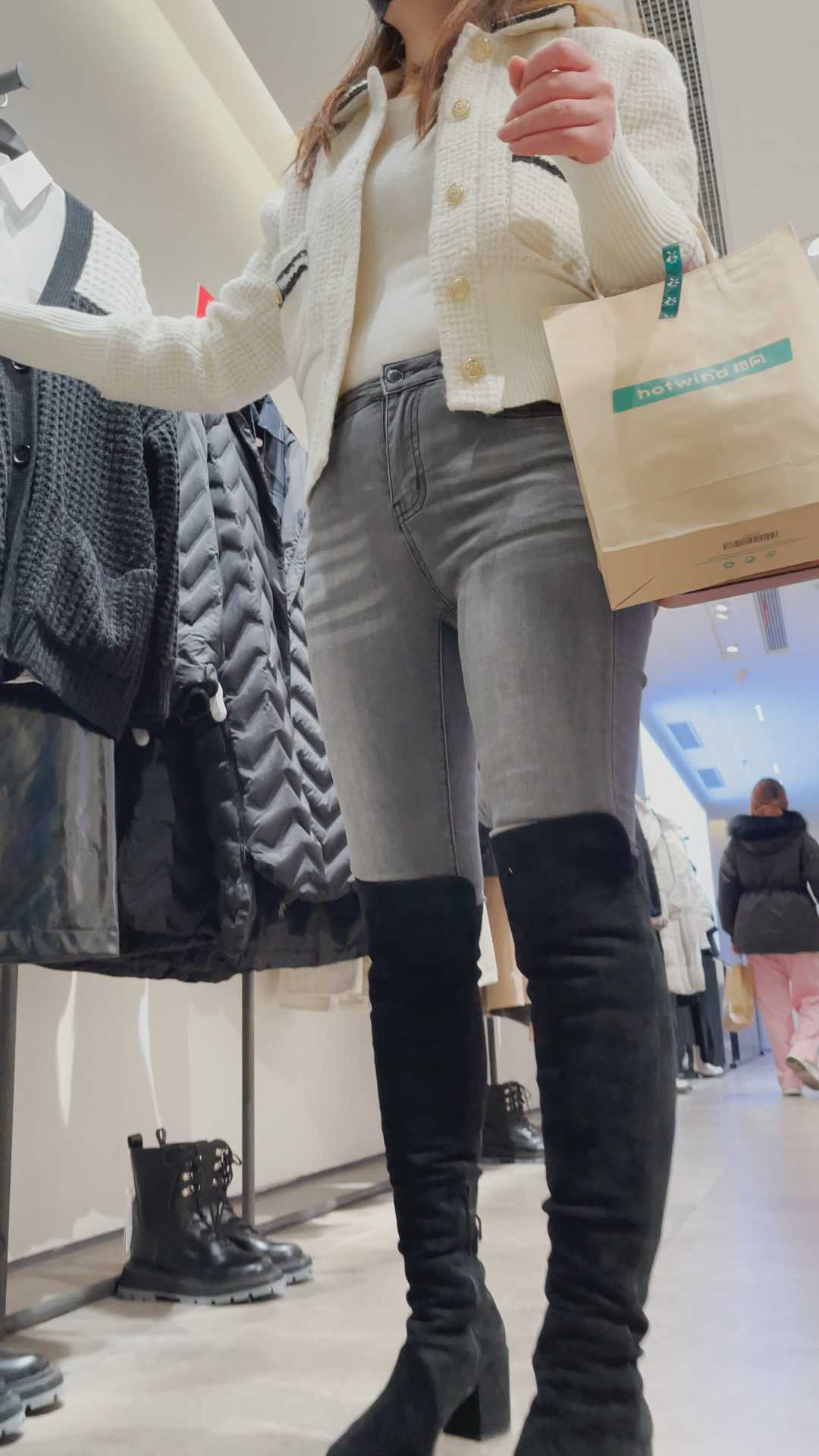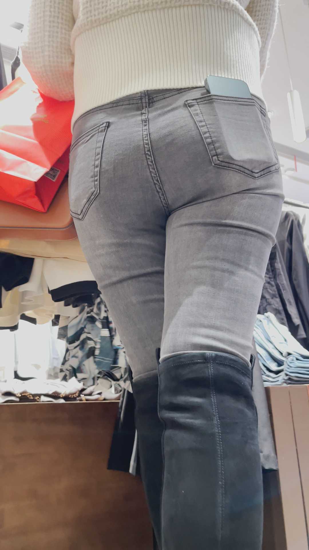 B277性感灰牛仔紧臀紧三角小姐姐
