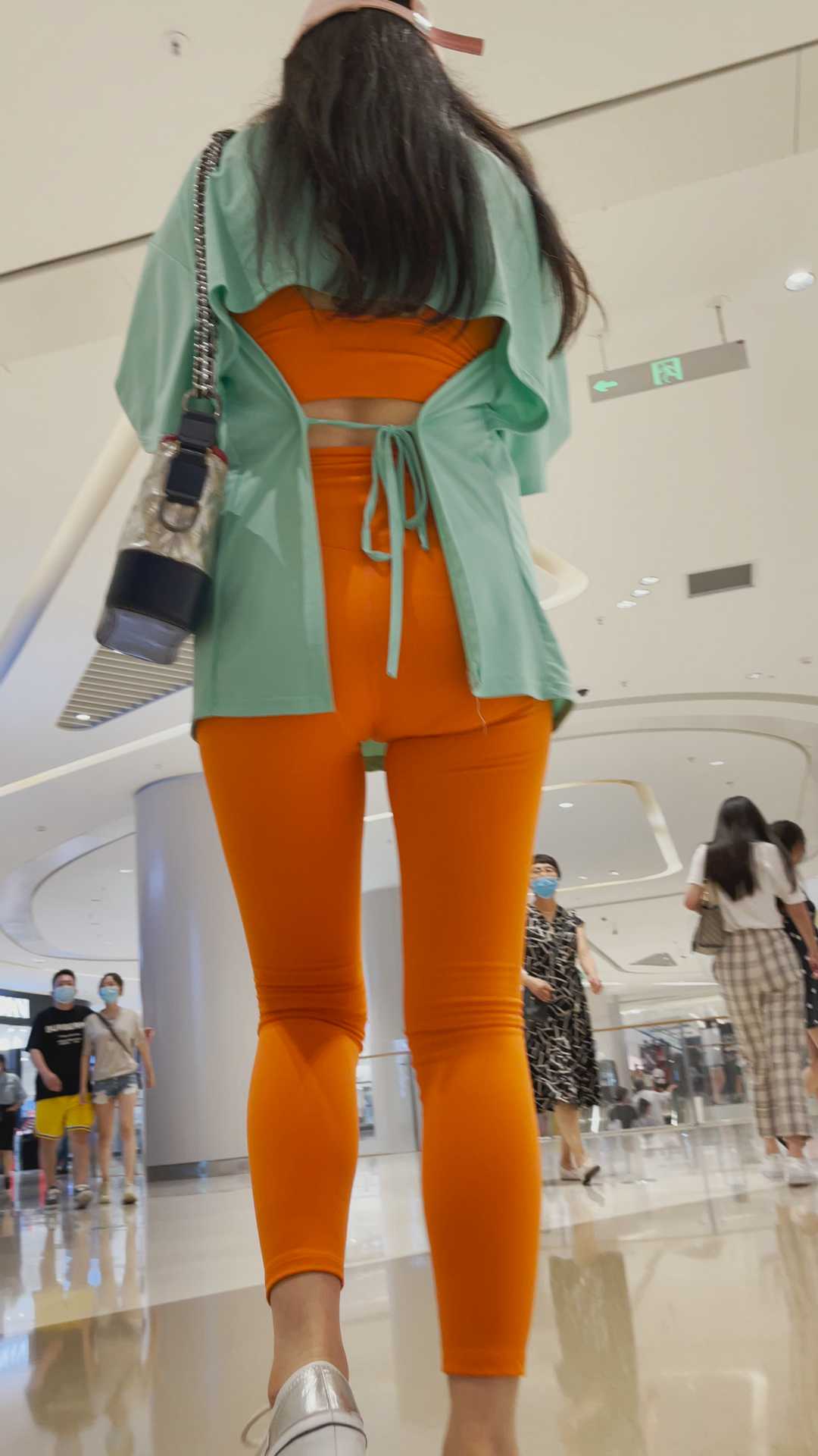 B459橘红健身裤大宽臀少妇