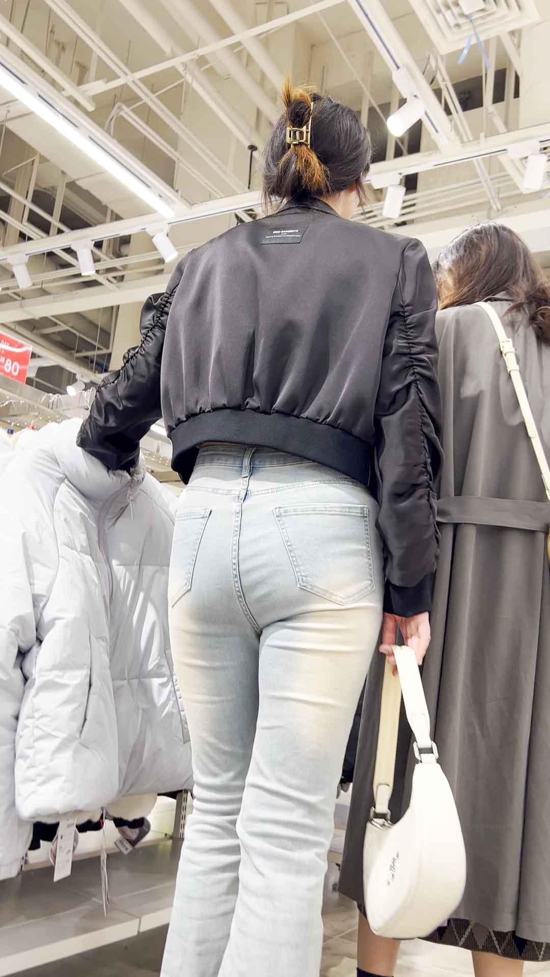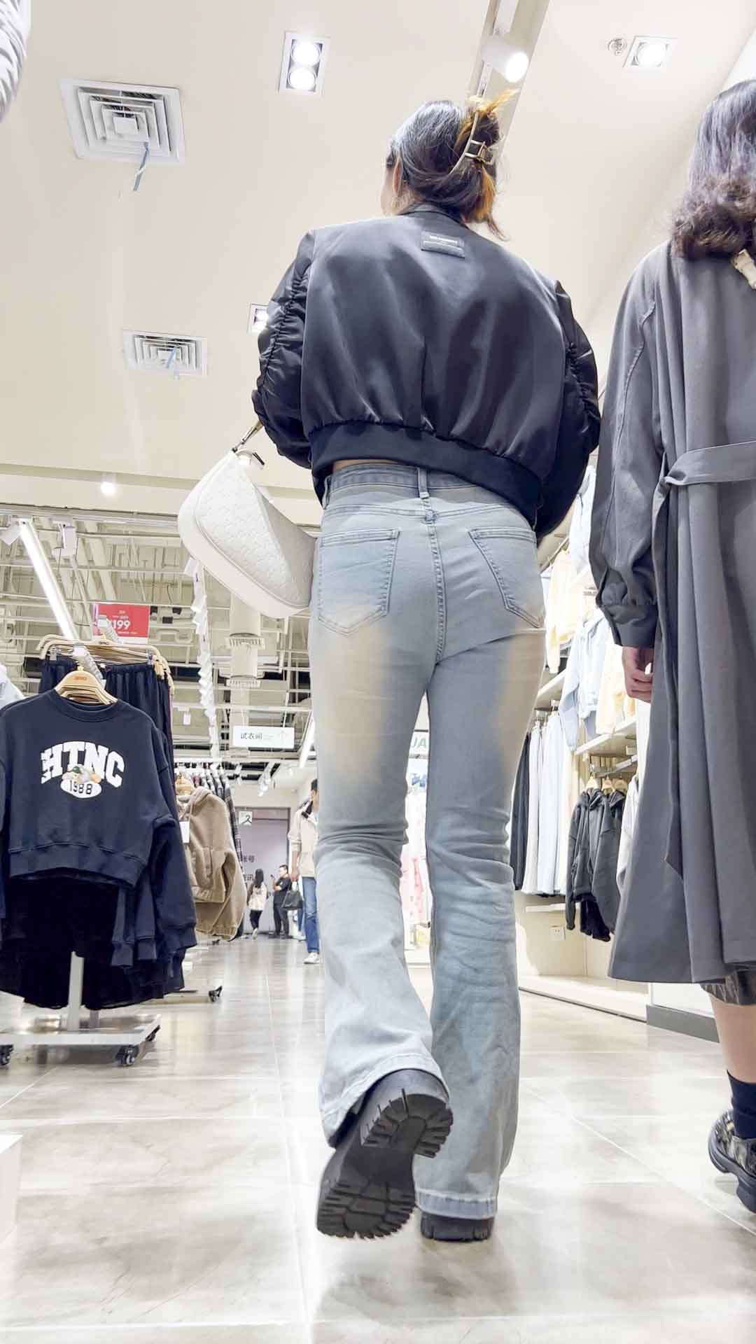 B507白牛仔紧臀高挑小姐姐