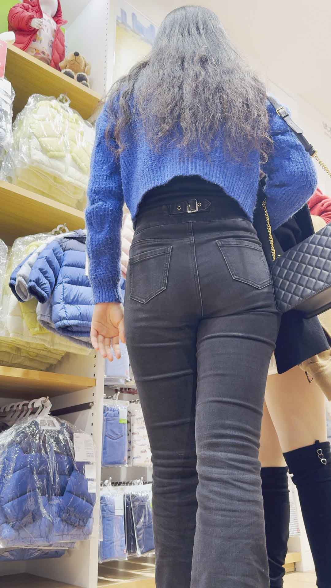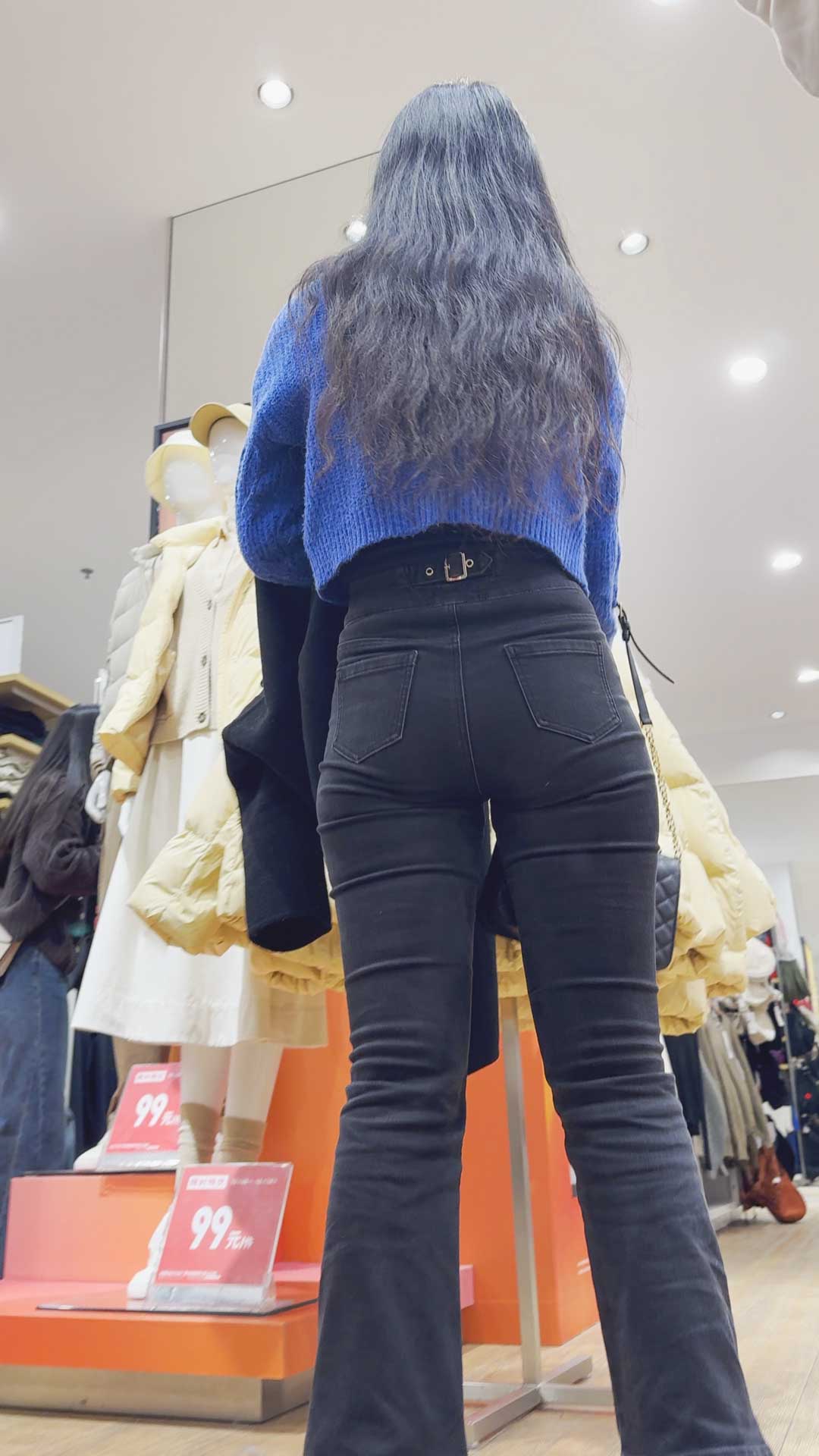 B606紧身牛仔裤勾勒出火辣身姿