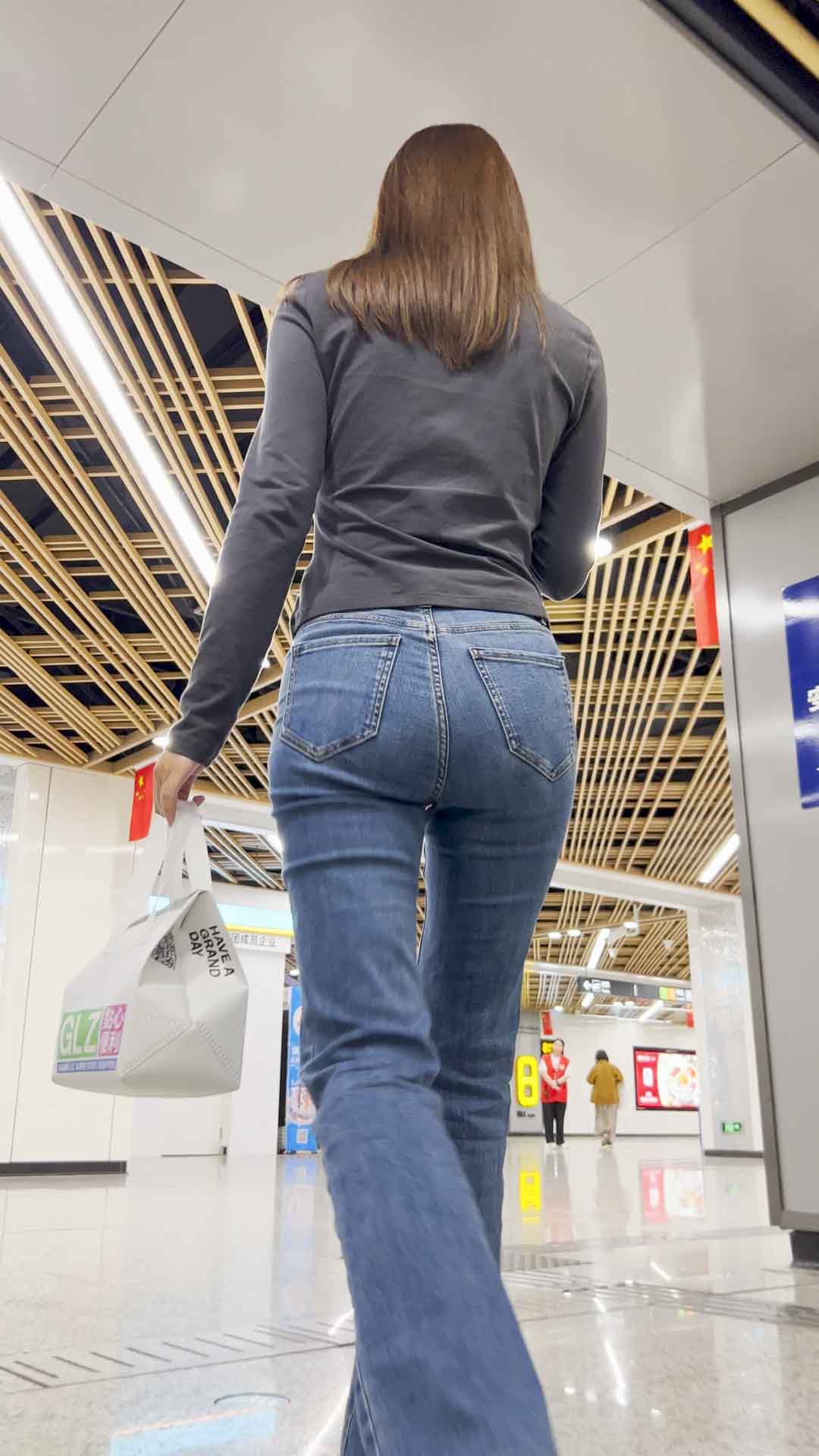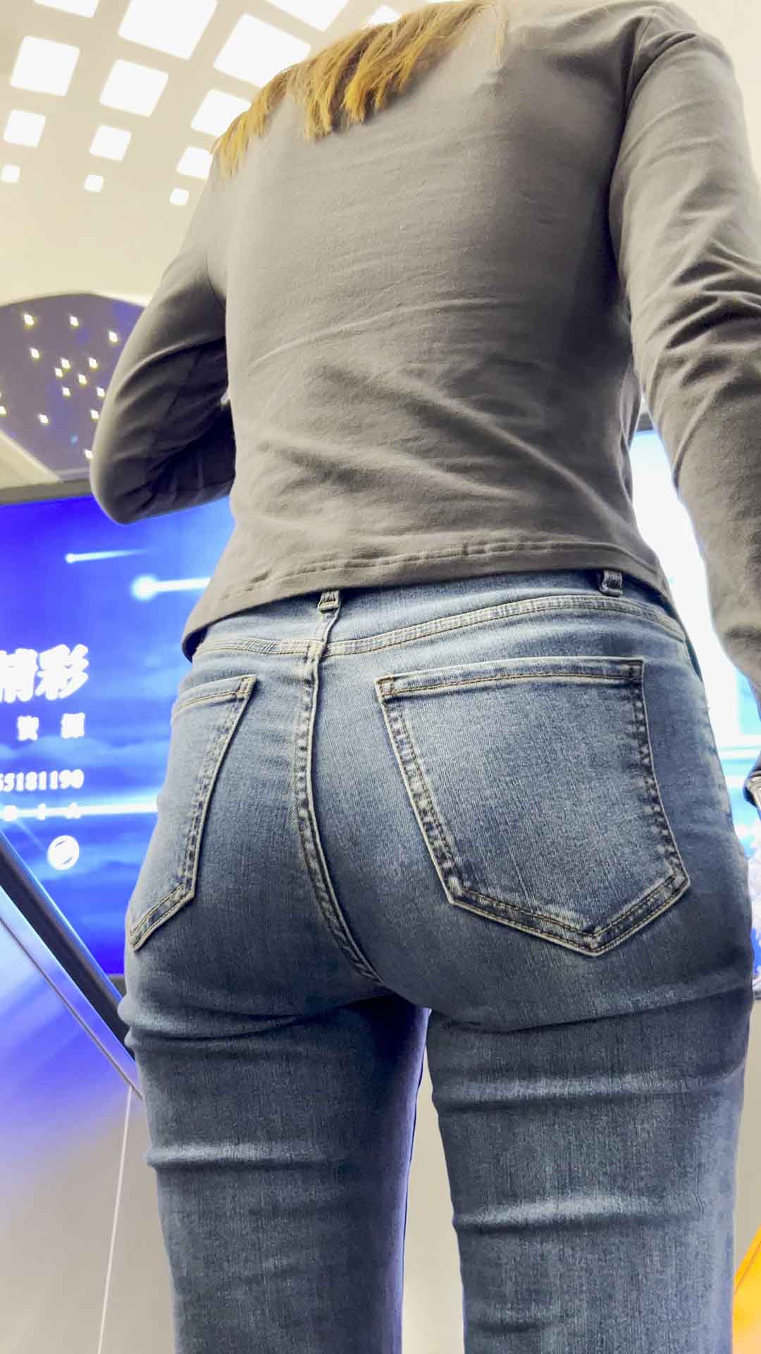 B698翘臀穿上紧身牛仔裤后X型
