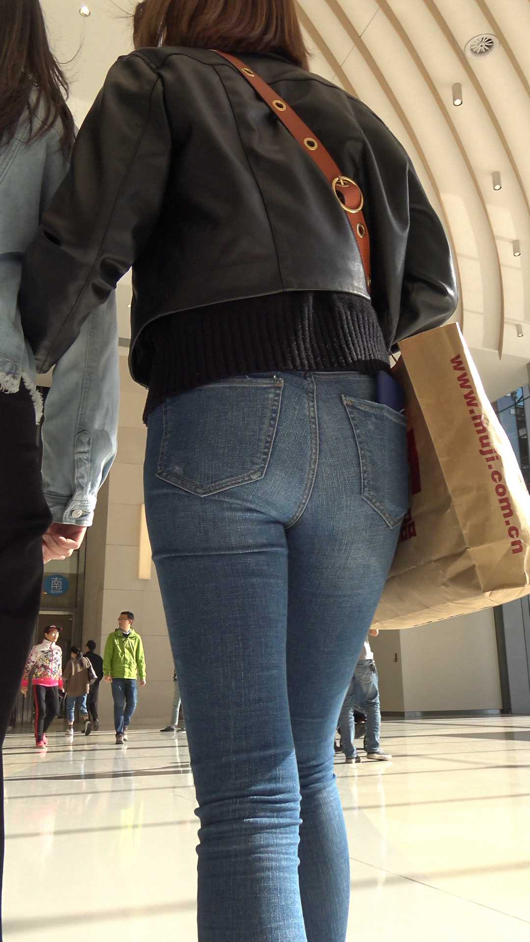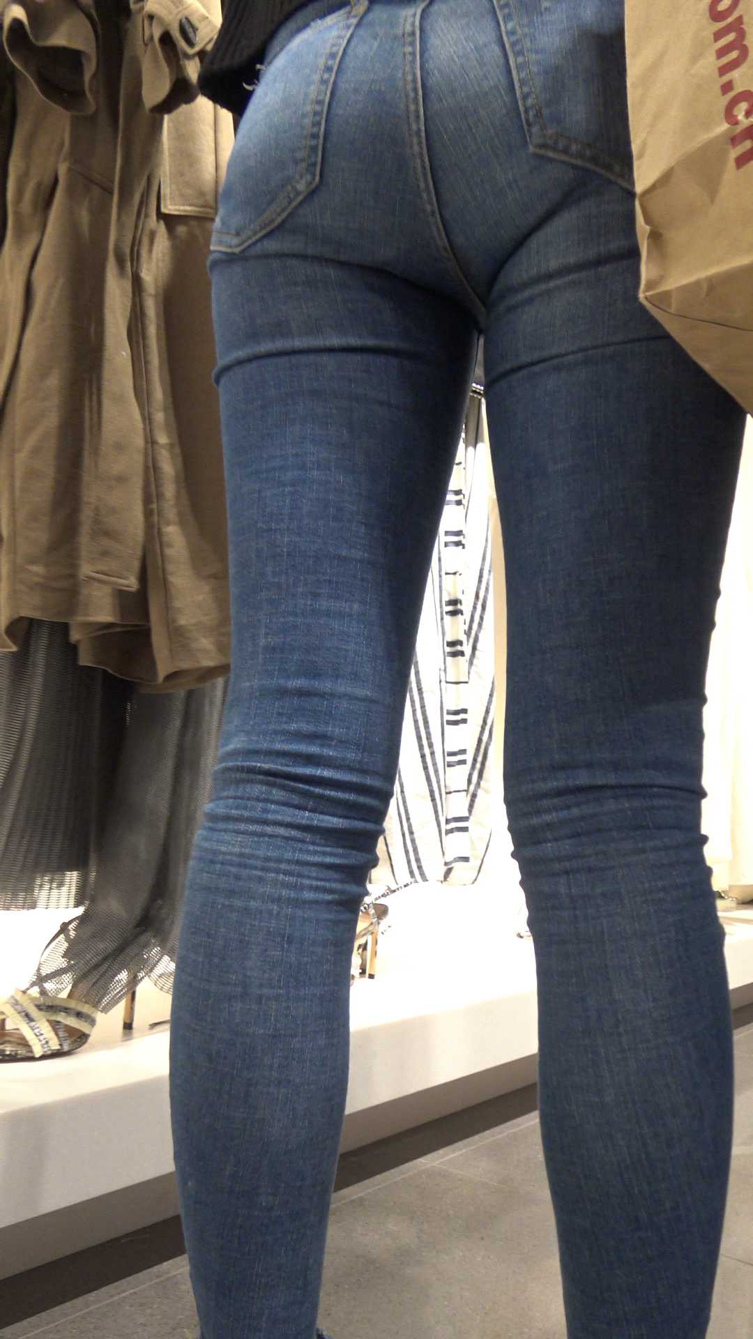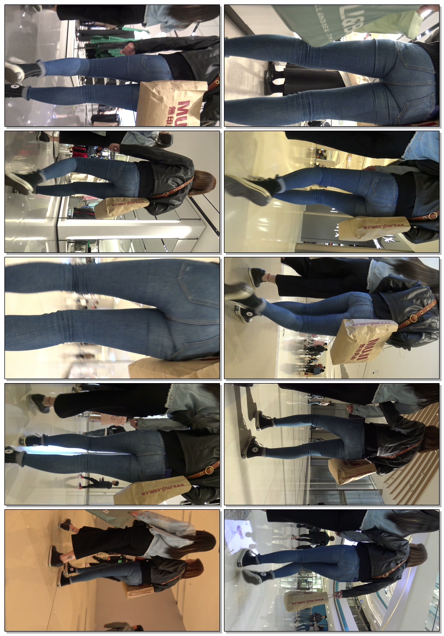 C377商场紧身包臀牛仔紧内痕美女第三季