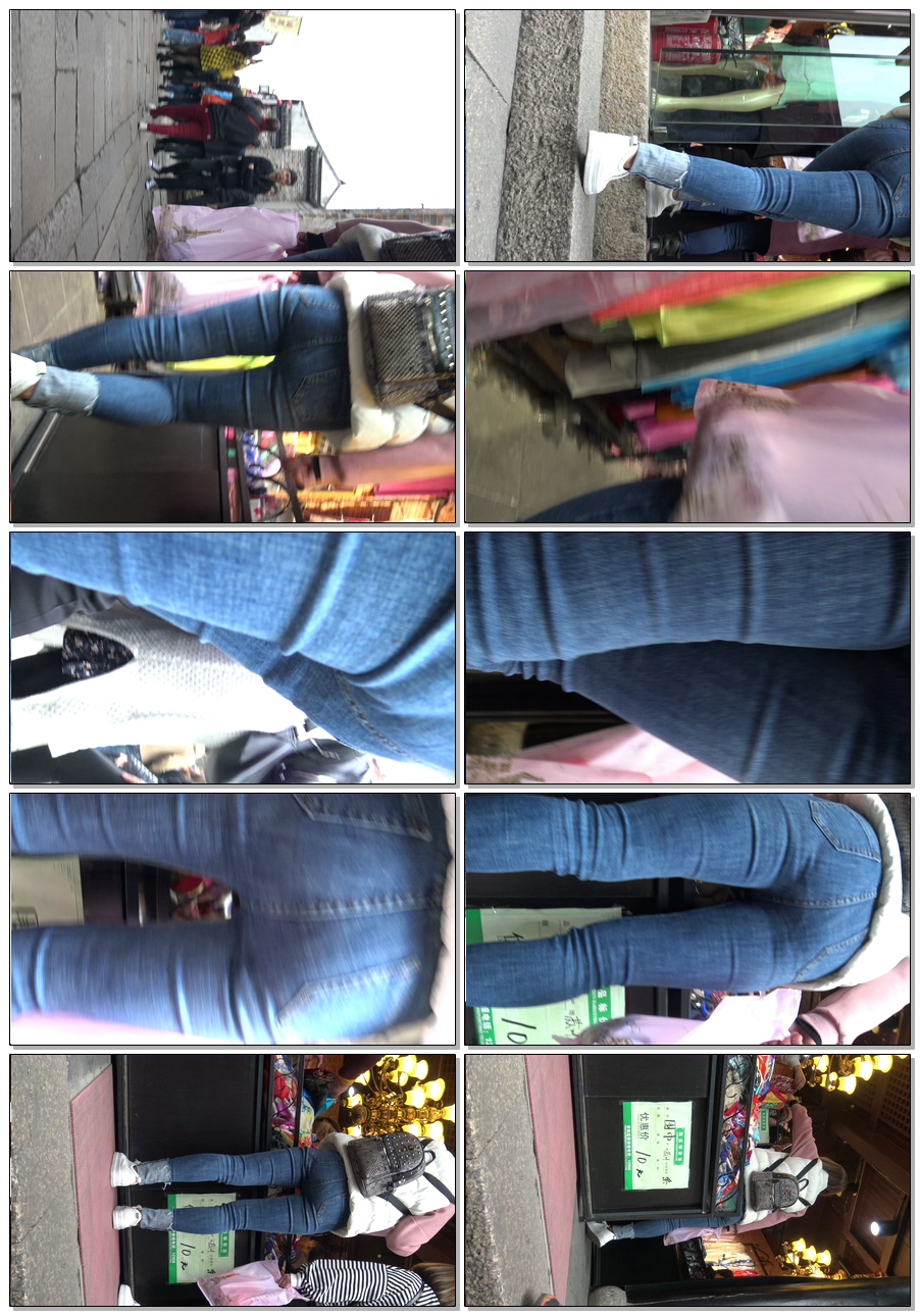 C433古街紧身牛仔裤少妇身材变形