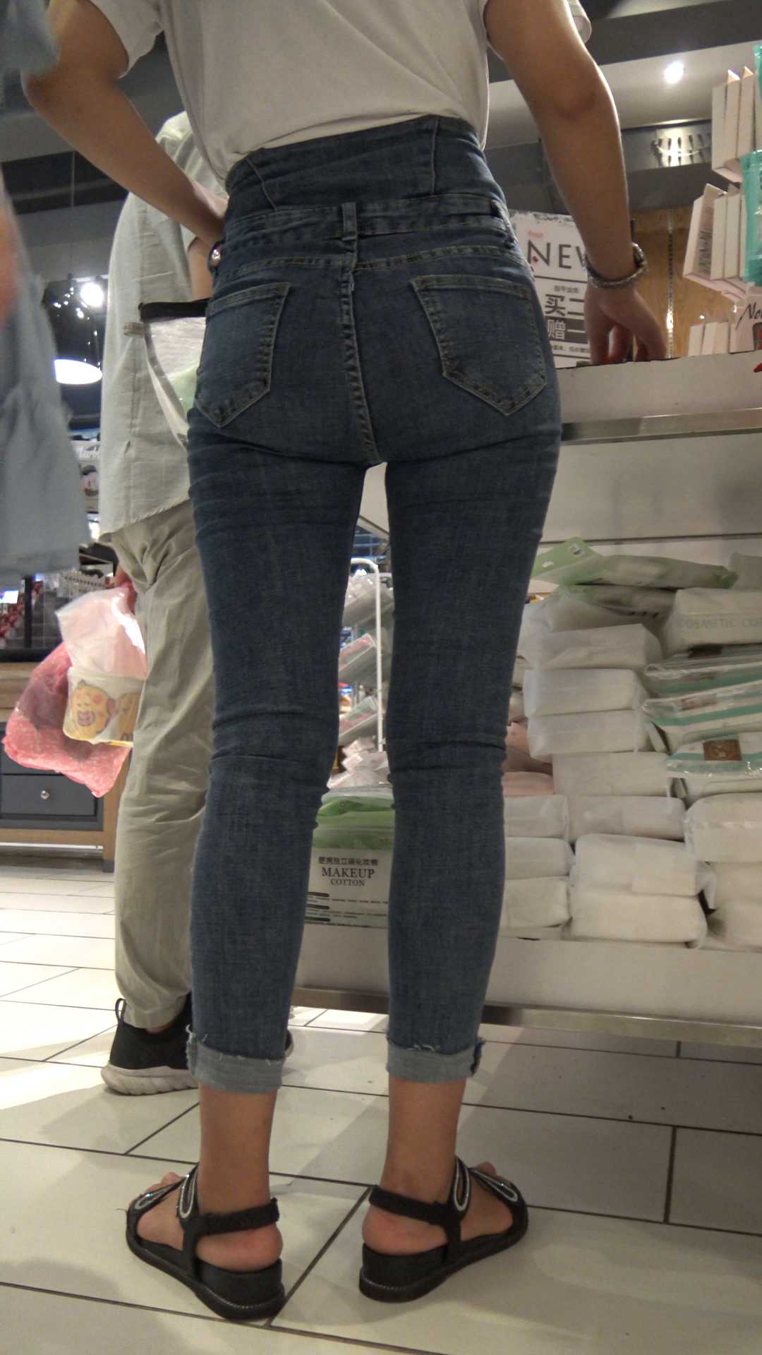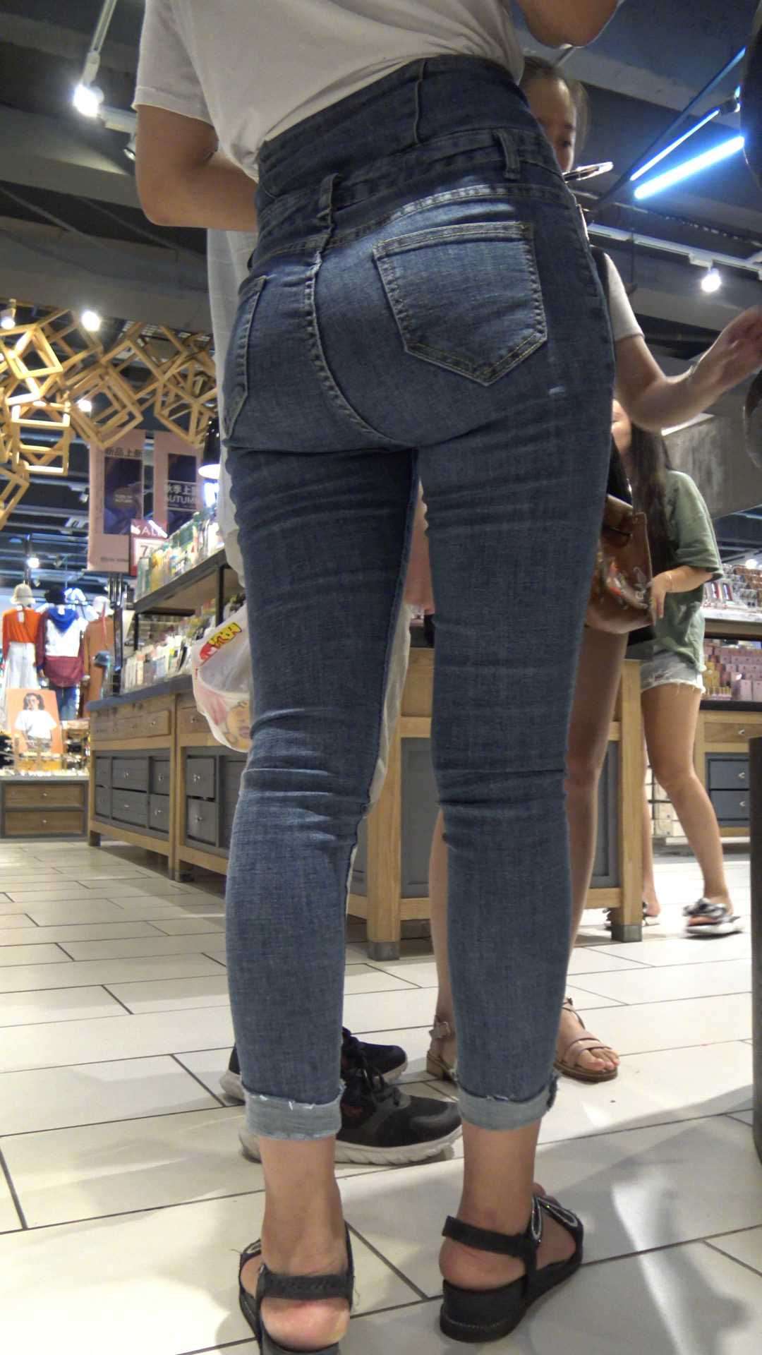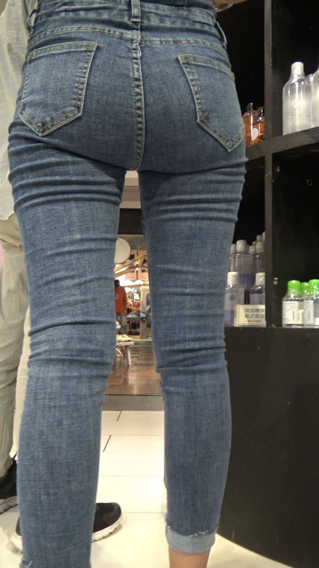 C510商场紧身蓝牛翘臀美女战斗力强