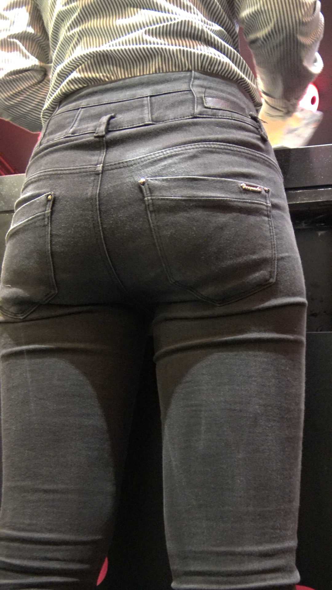 C553商场黑牛仔紧翘臀美女