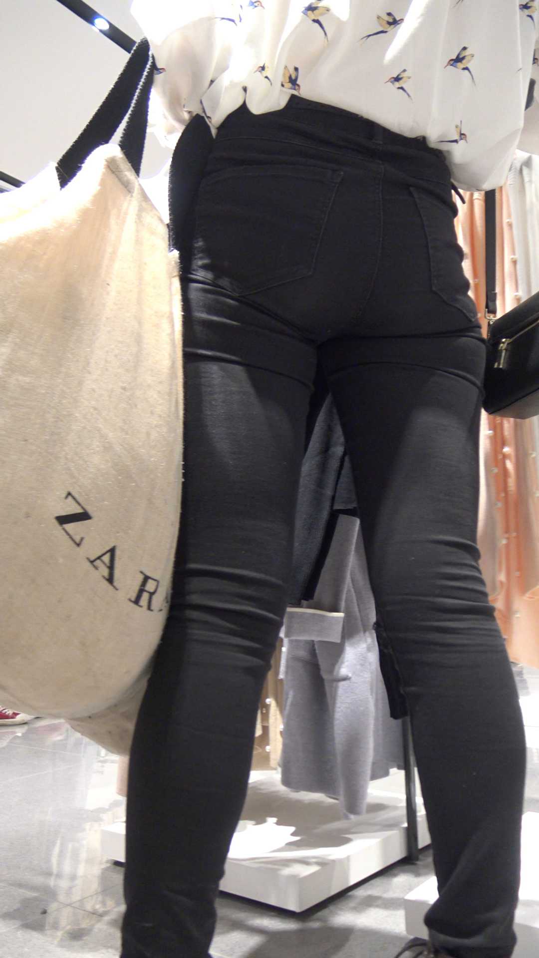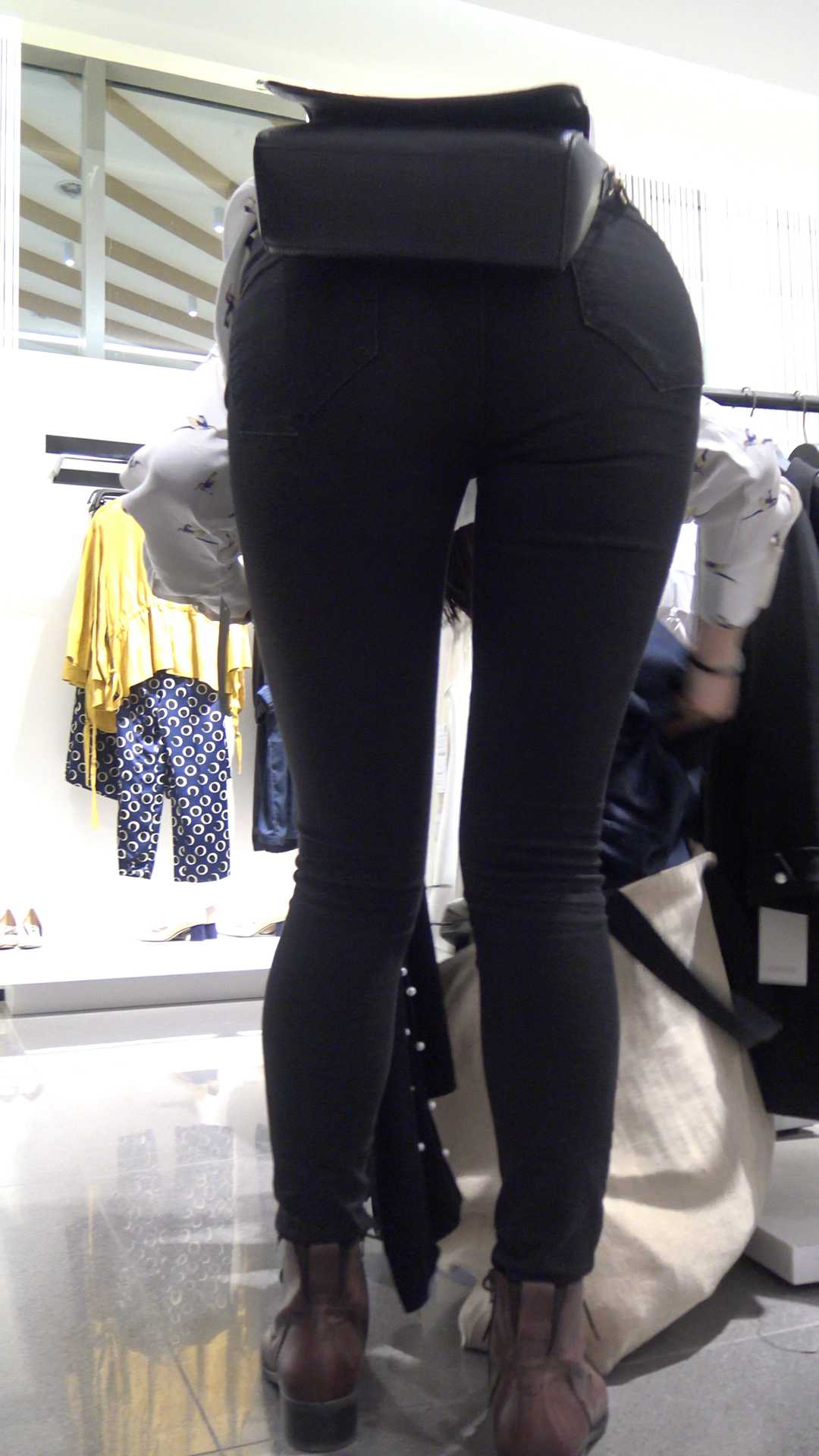 C685服装店黑牛仔翘臀美女