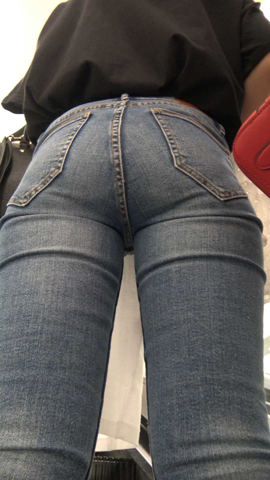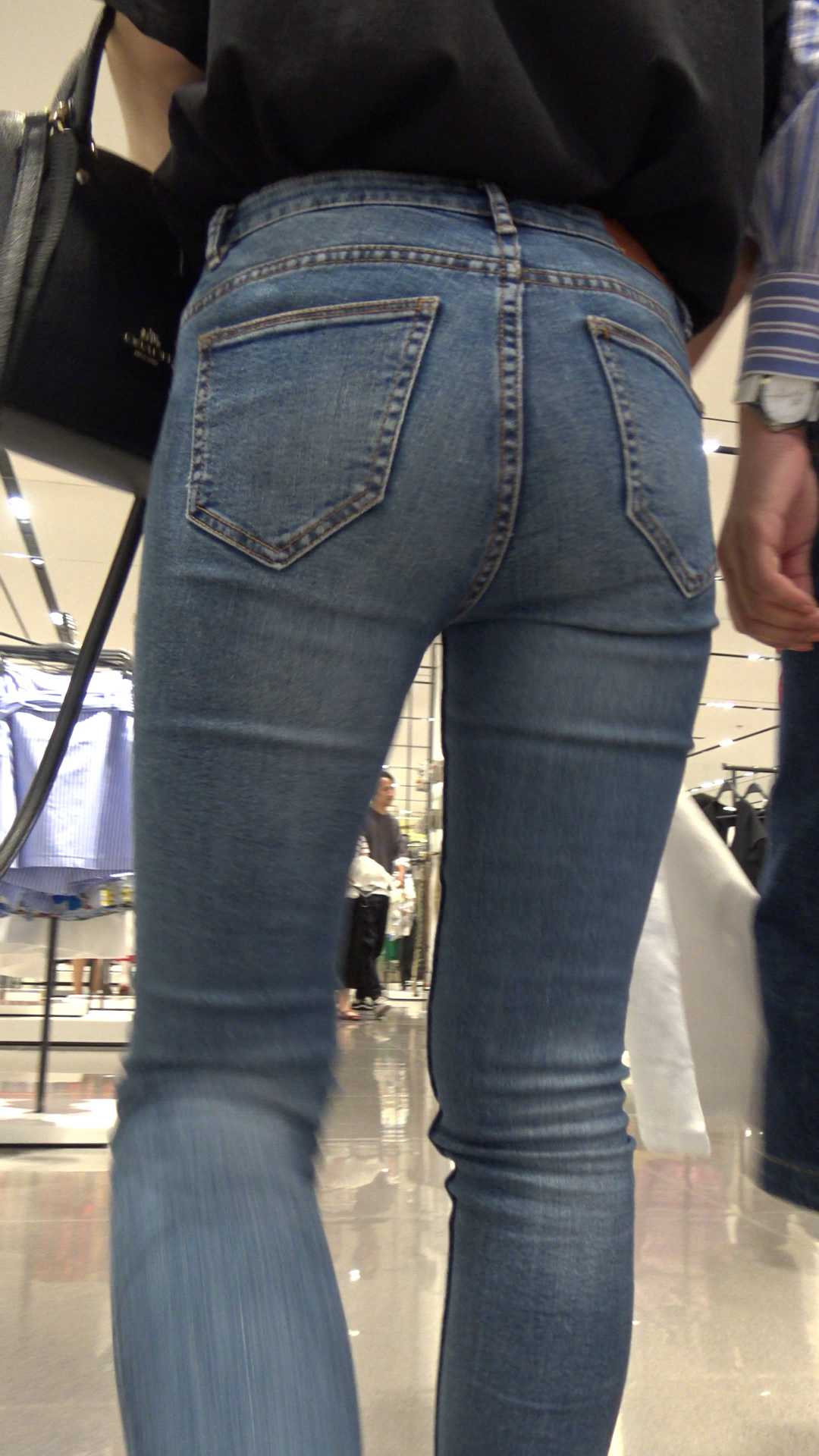 C881紧身牛仔大宽臀紧内痕眼镜少女