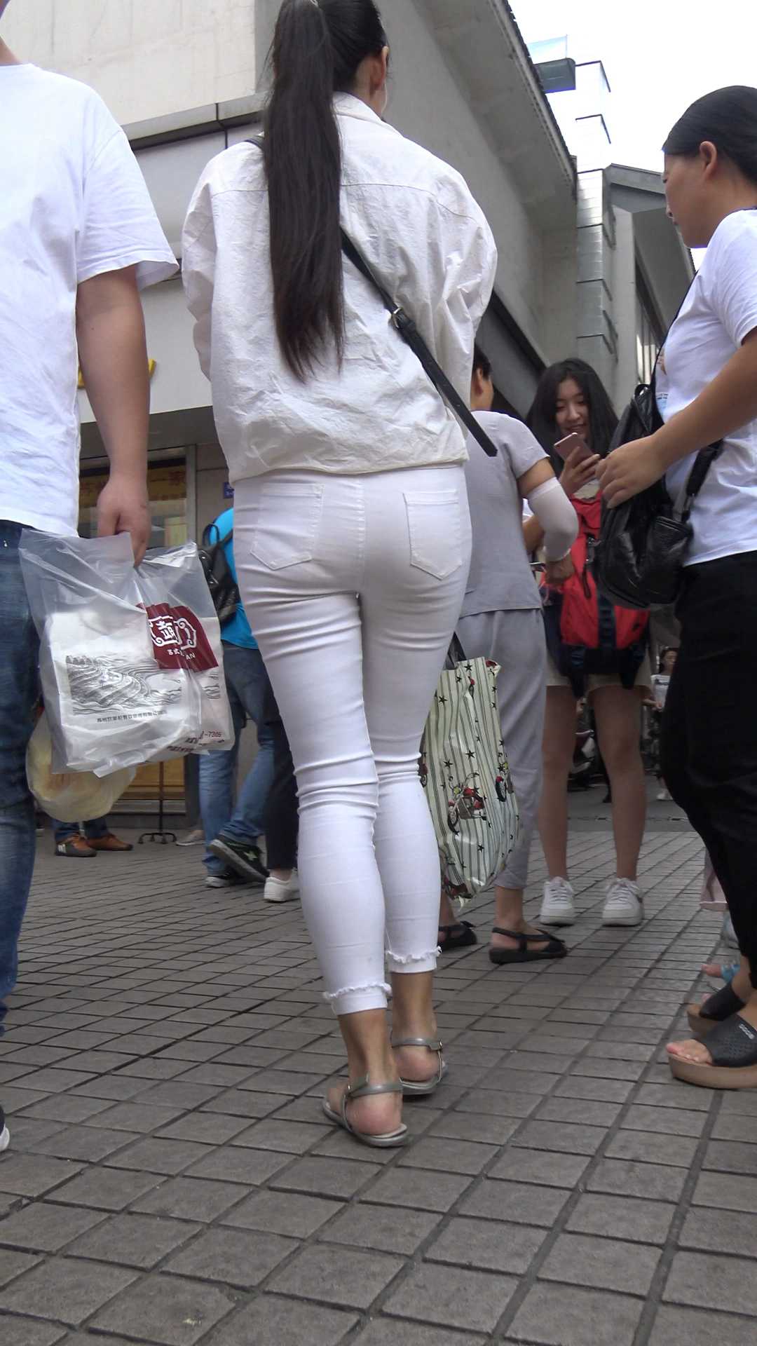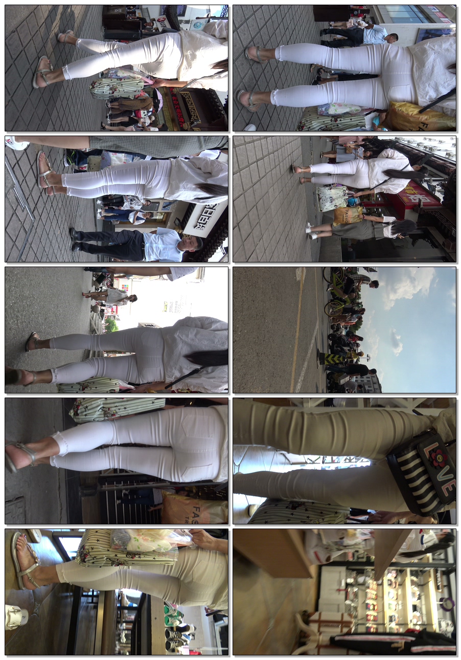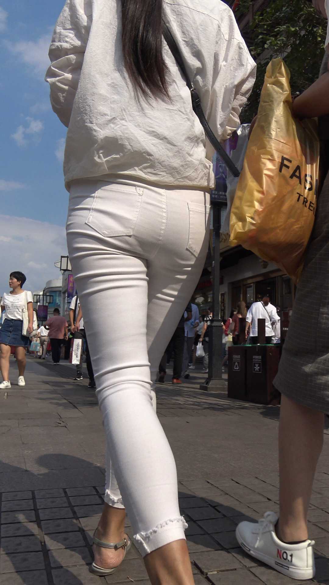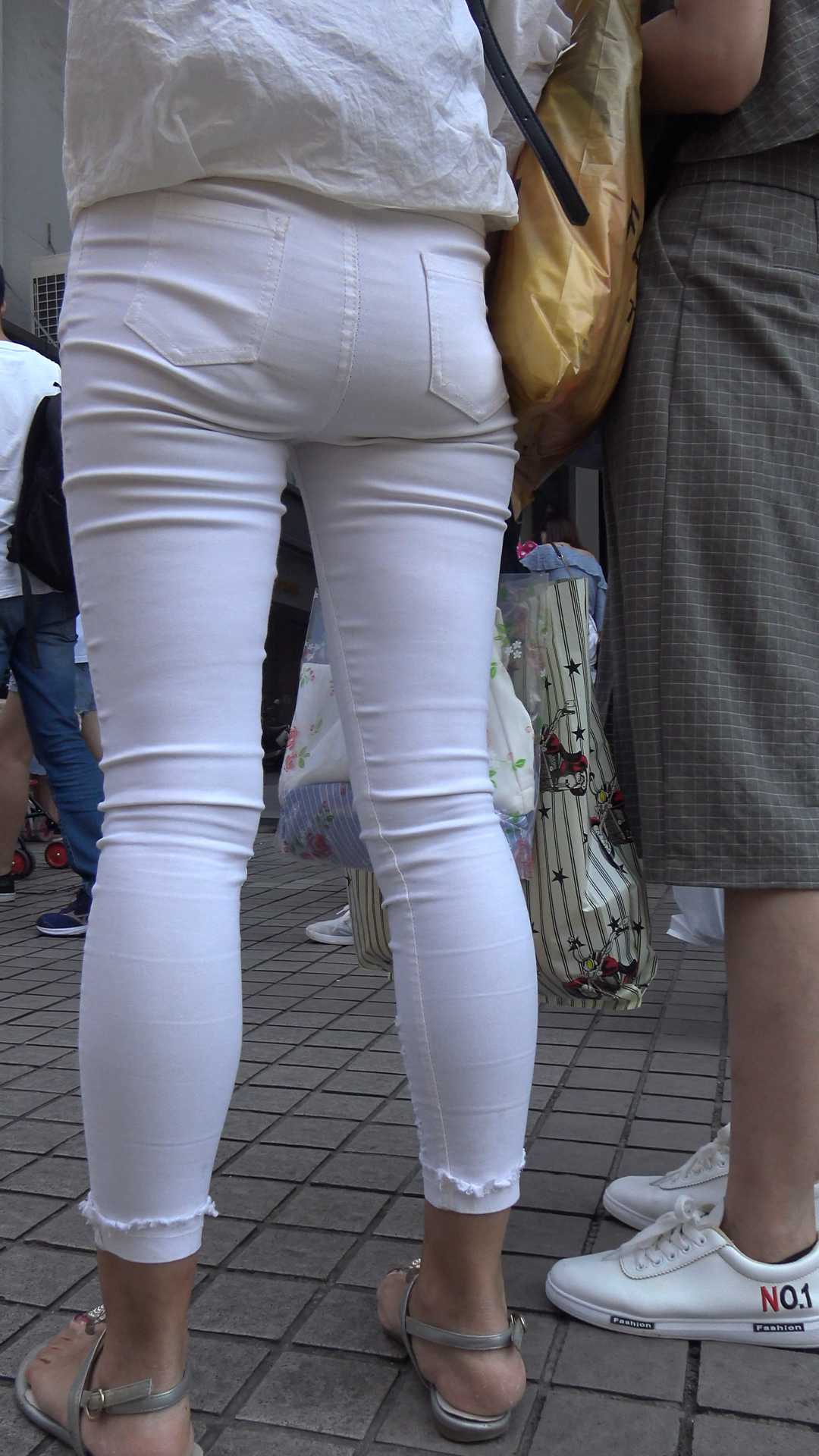 C901紧身白裤子透内痕少妇