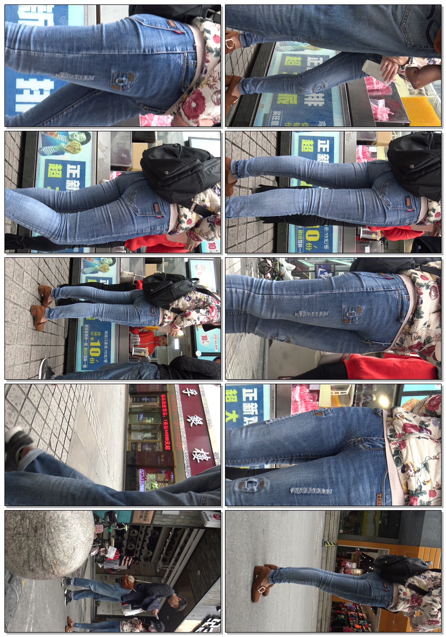 C924紧身蓝牛肥臀前后特写