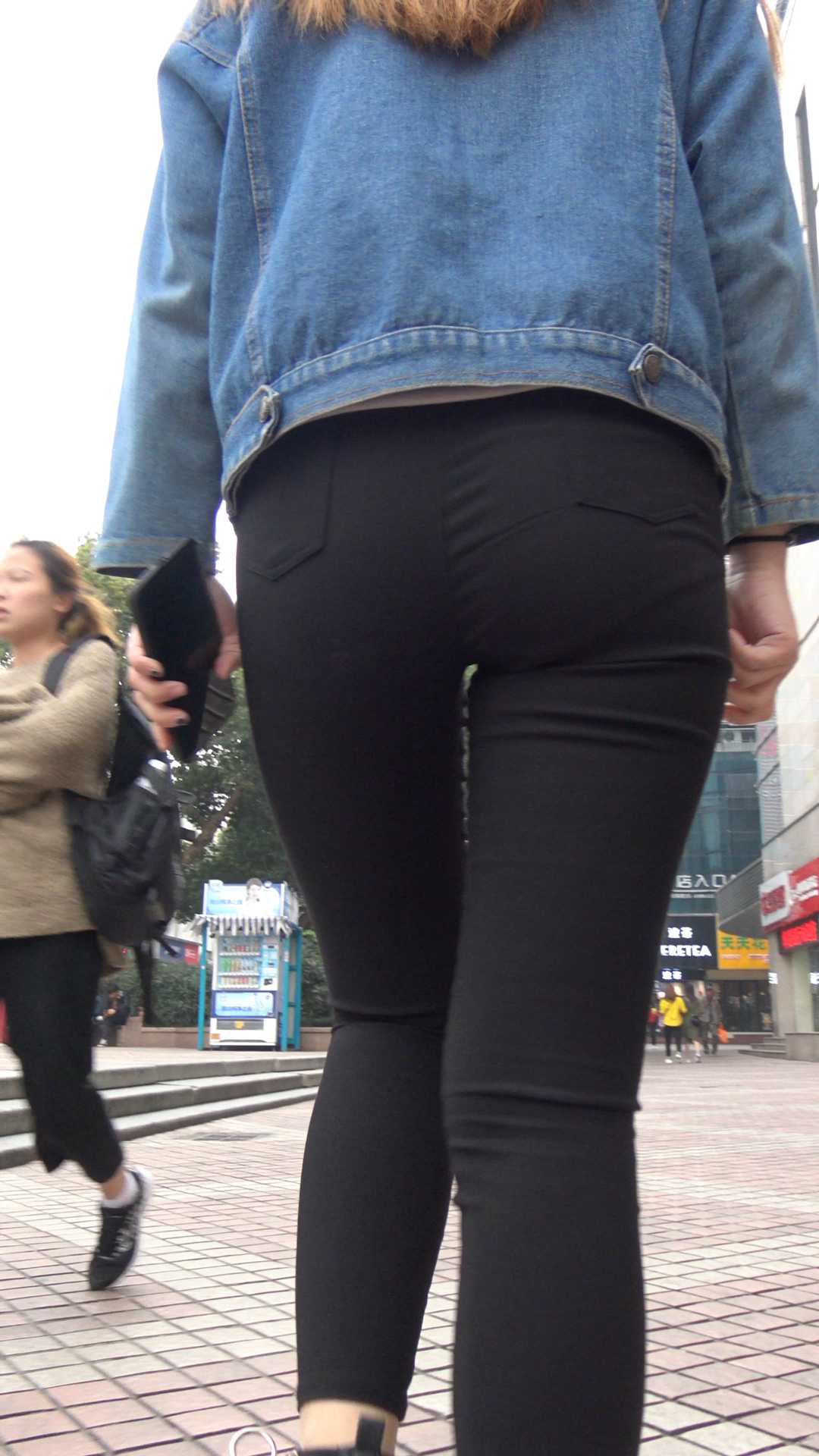 C939紧身饱满黑裤翘臀少女