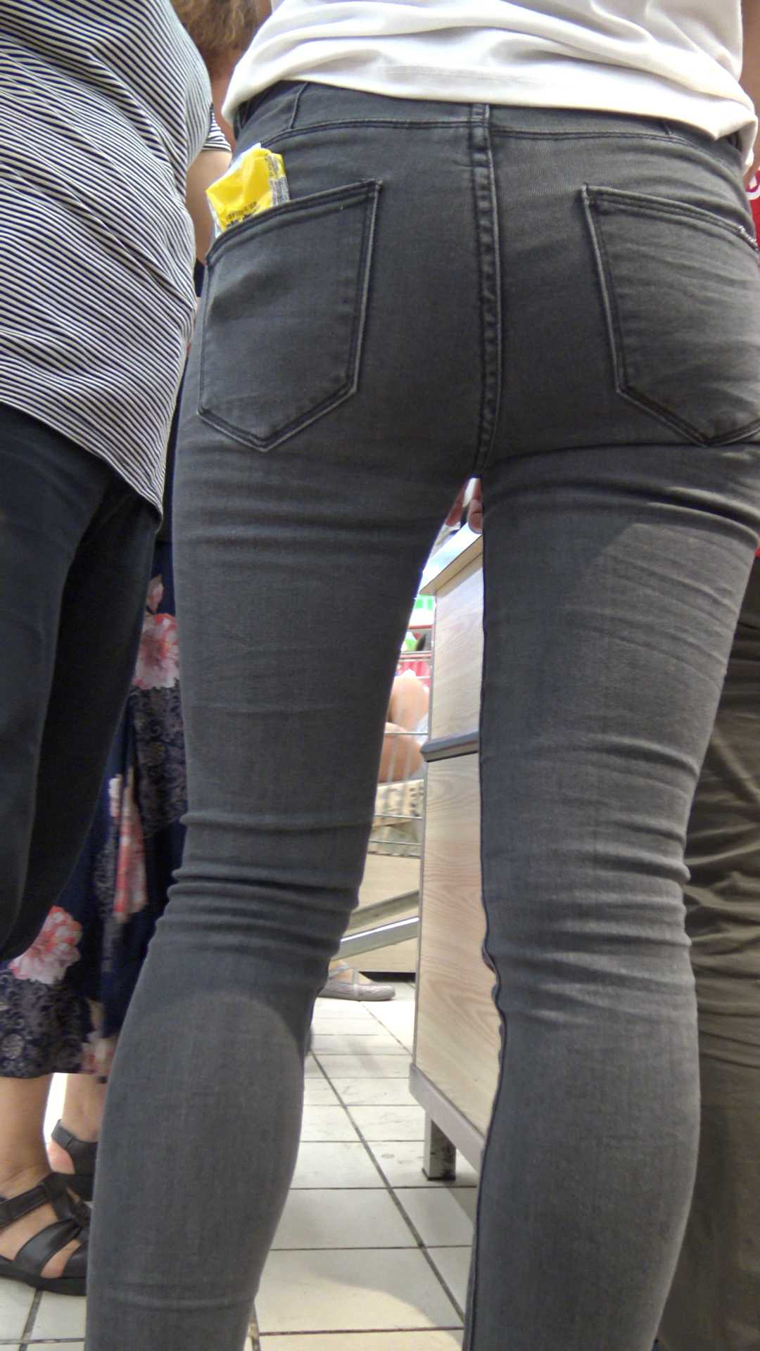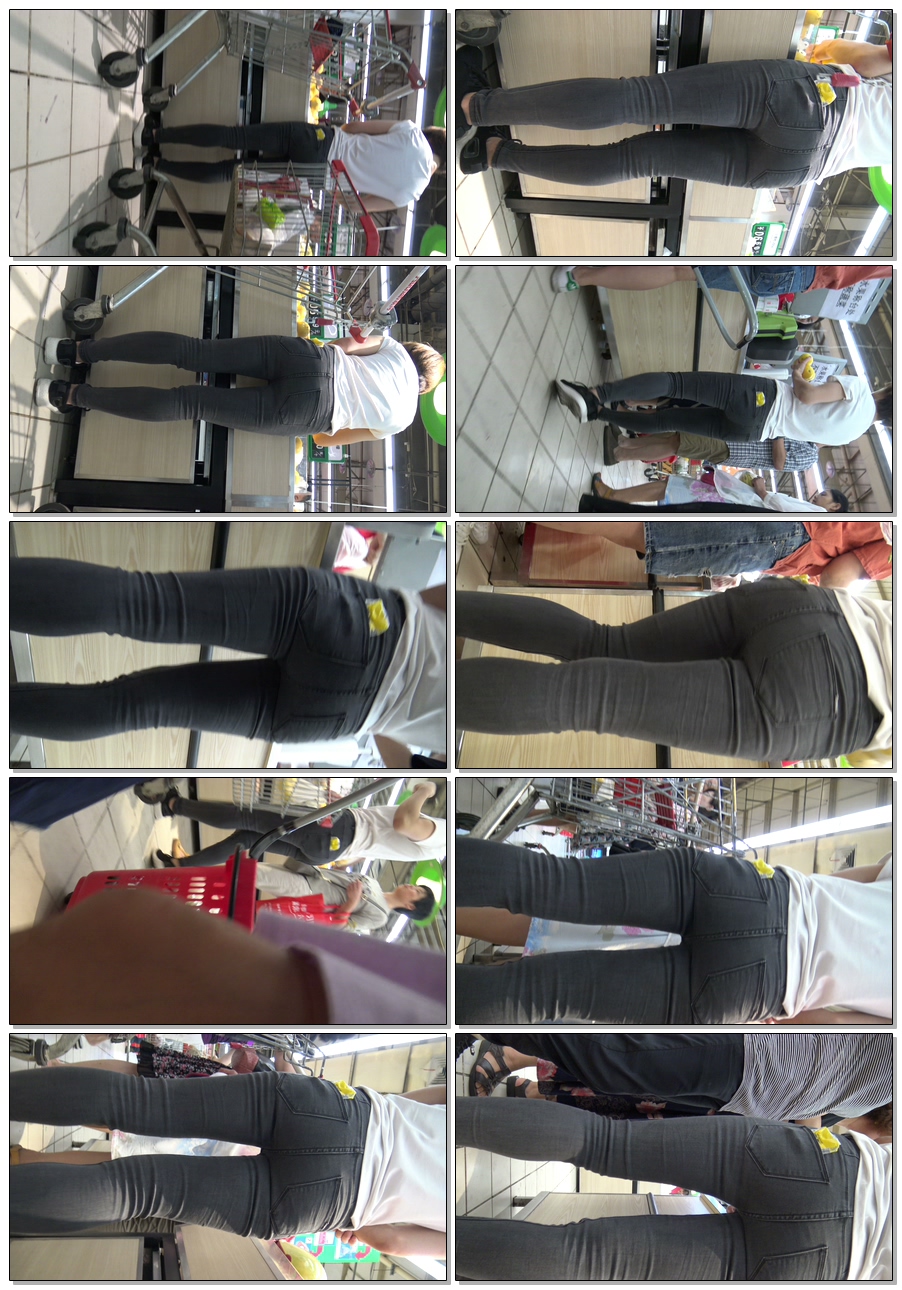 C1183超市紧身黑牛仔翘臀美女