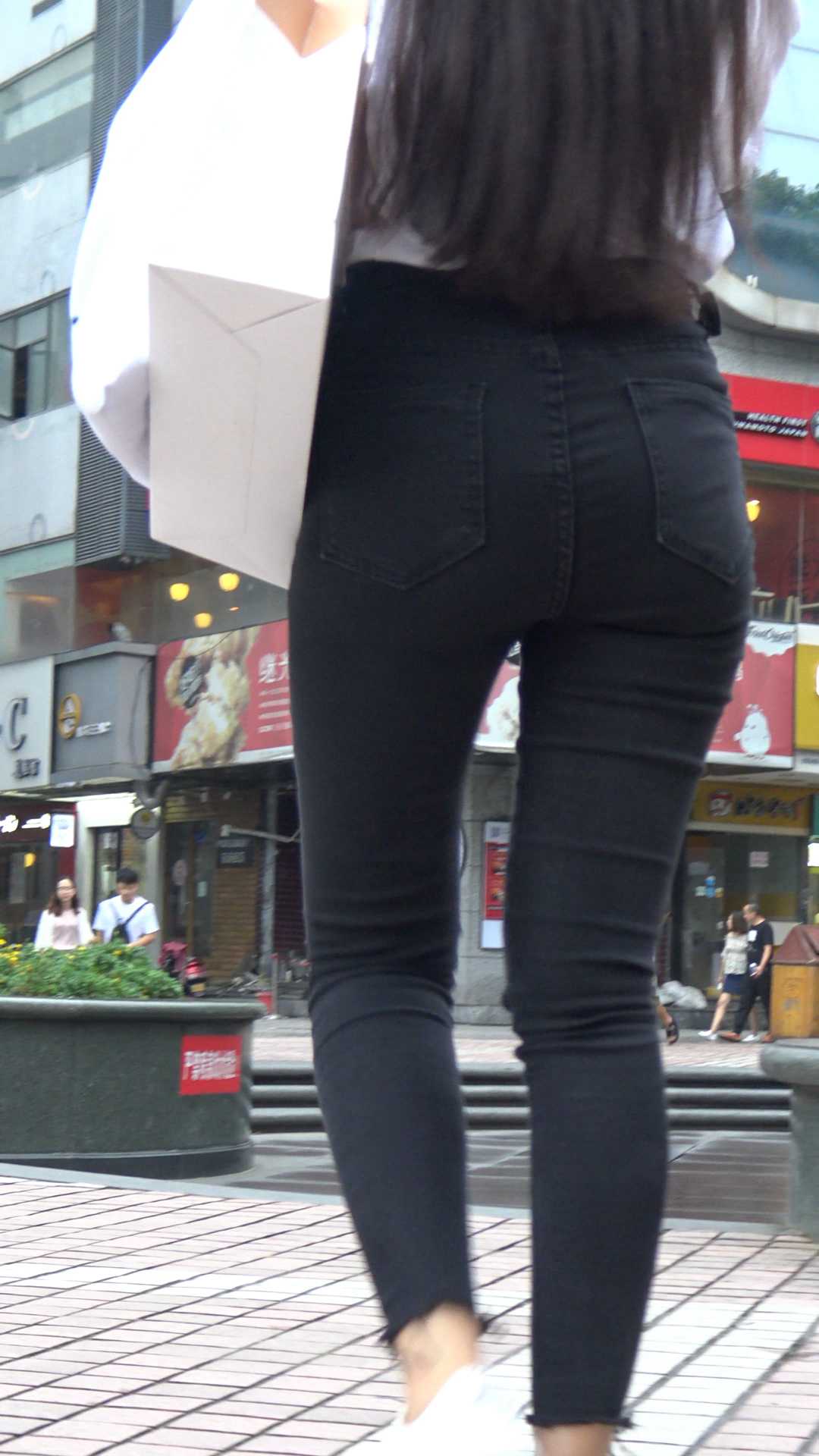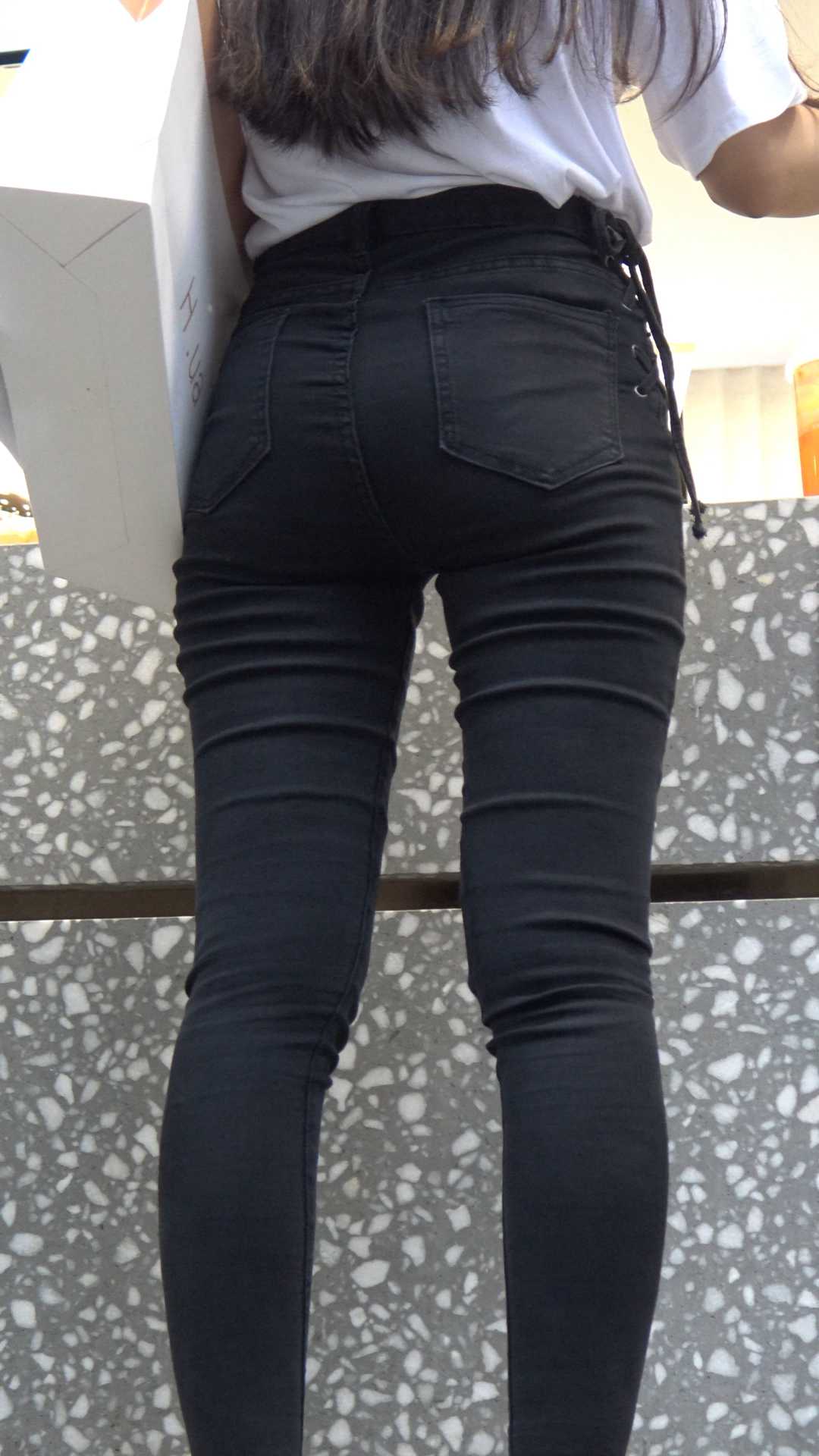 C1284超紧黑牛仔大翘臀长发美女