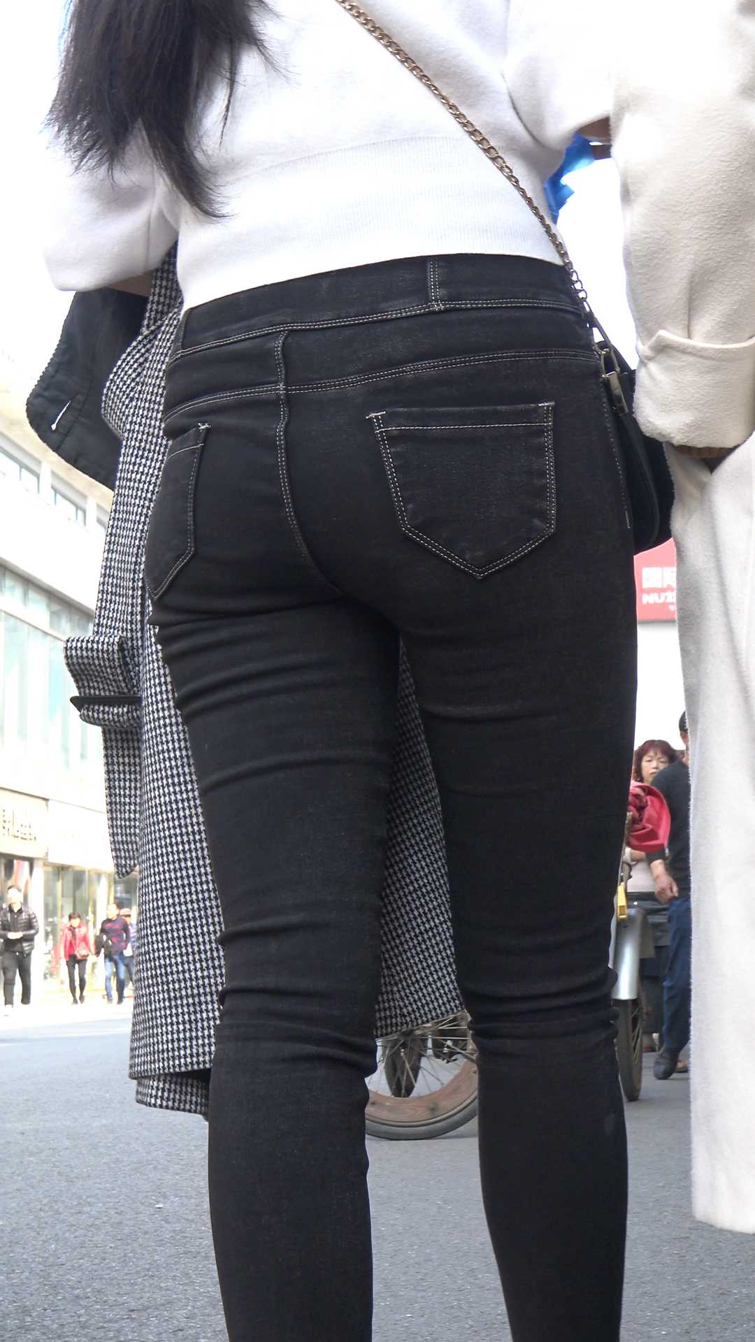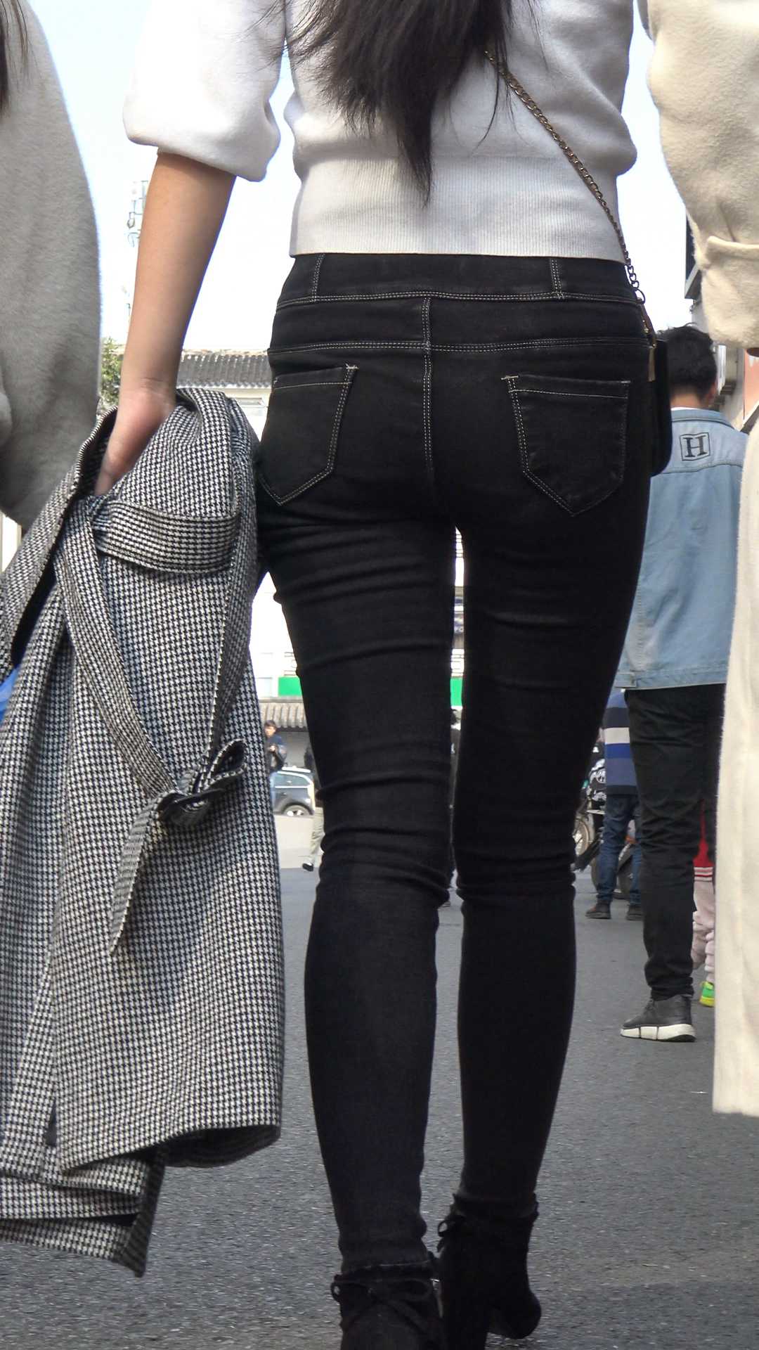 C1468黑牛仔深沟宽臀长发少妇