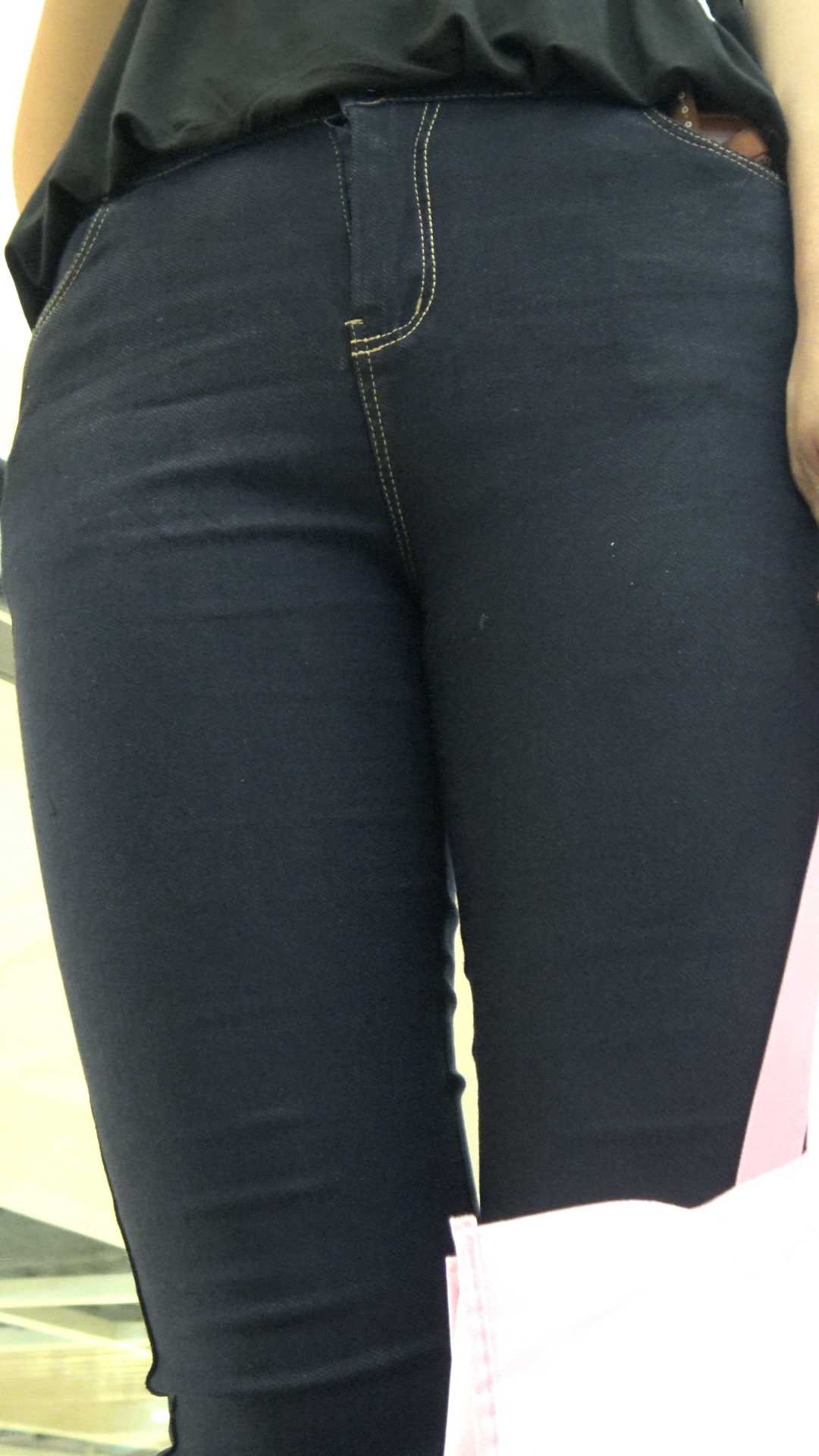 C1476黑牛仔饱满三角区特写