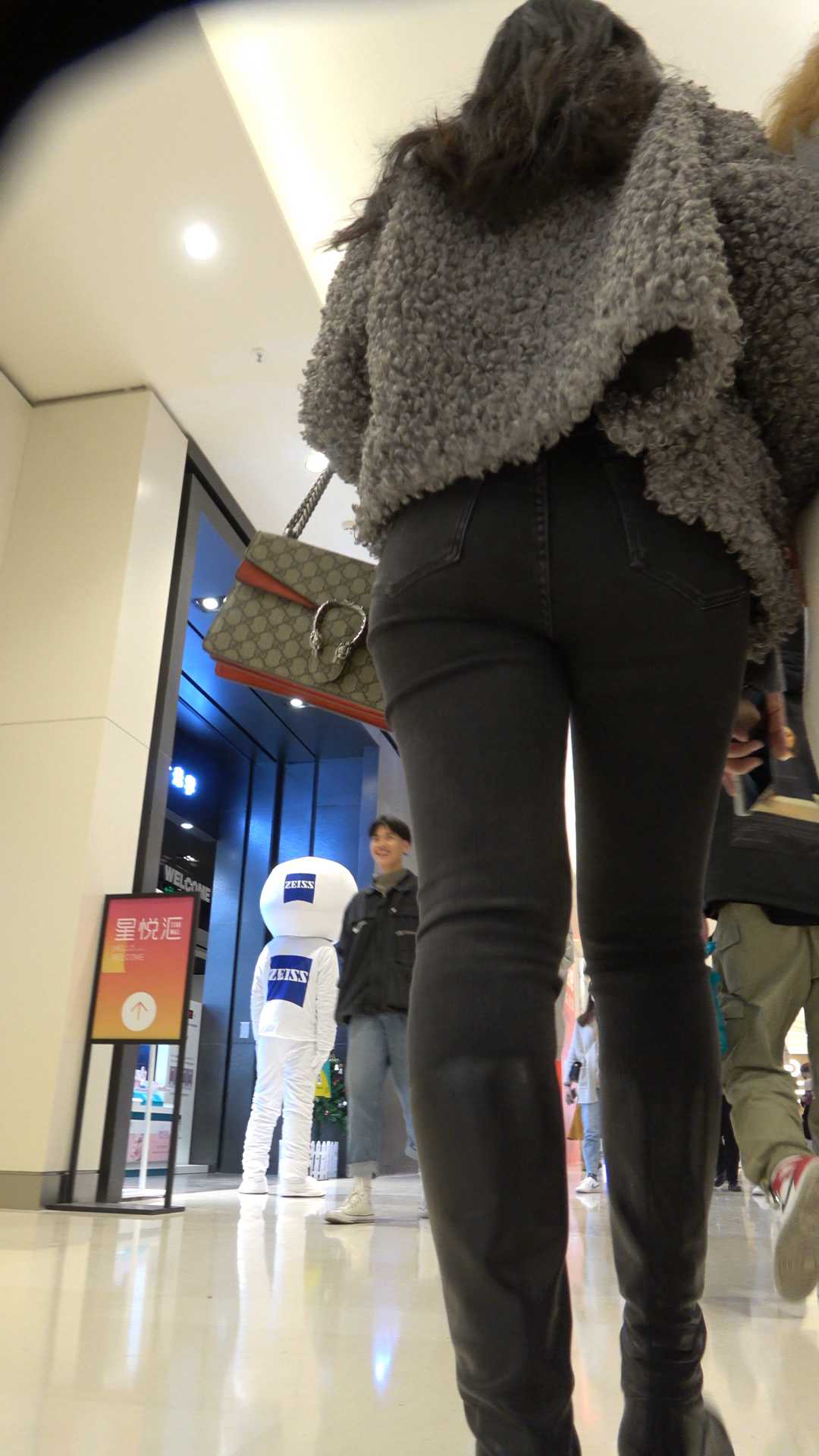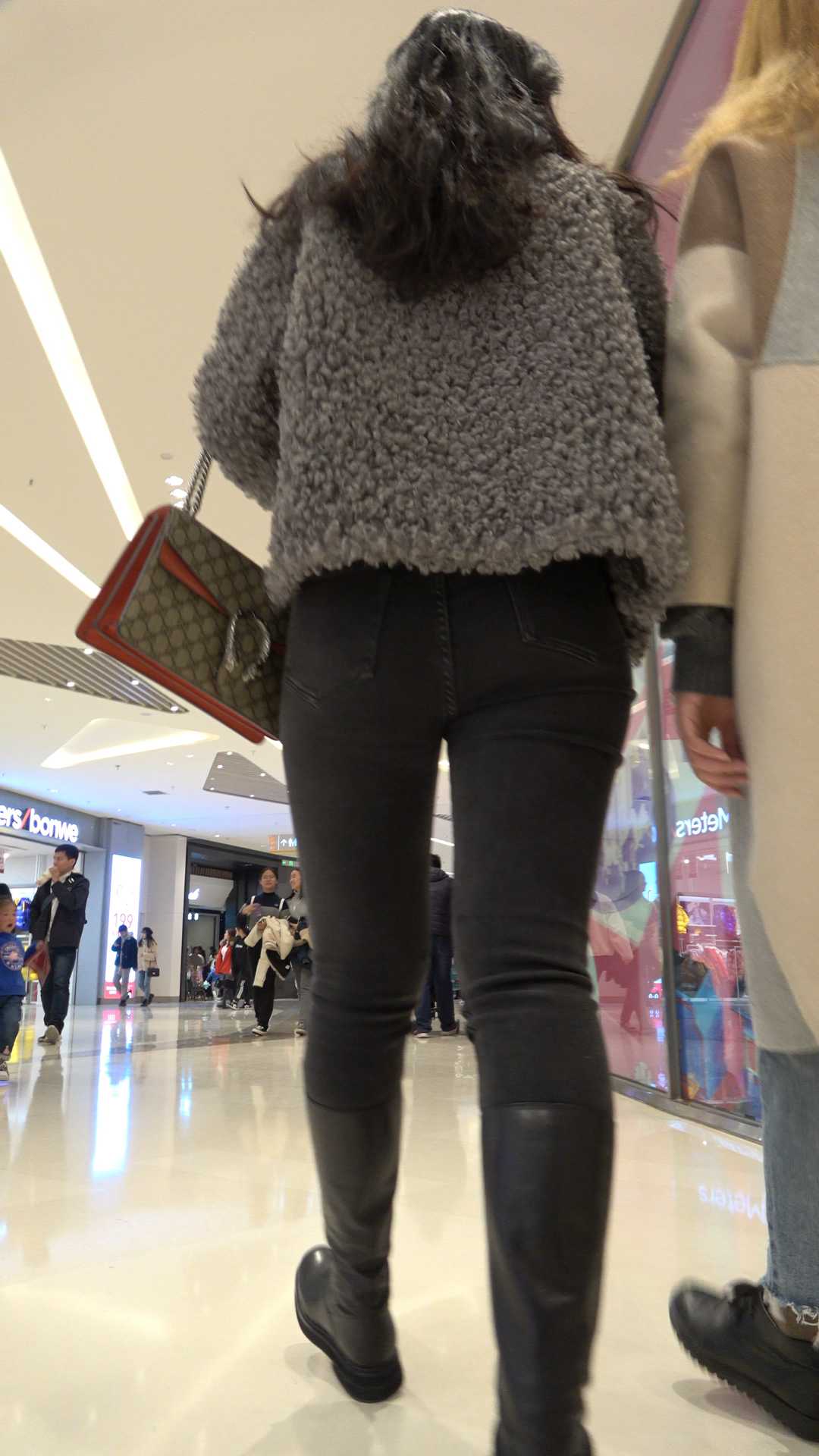 C36商场紧身包臀黑牛仔少妇