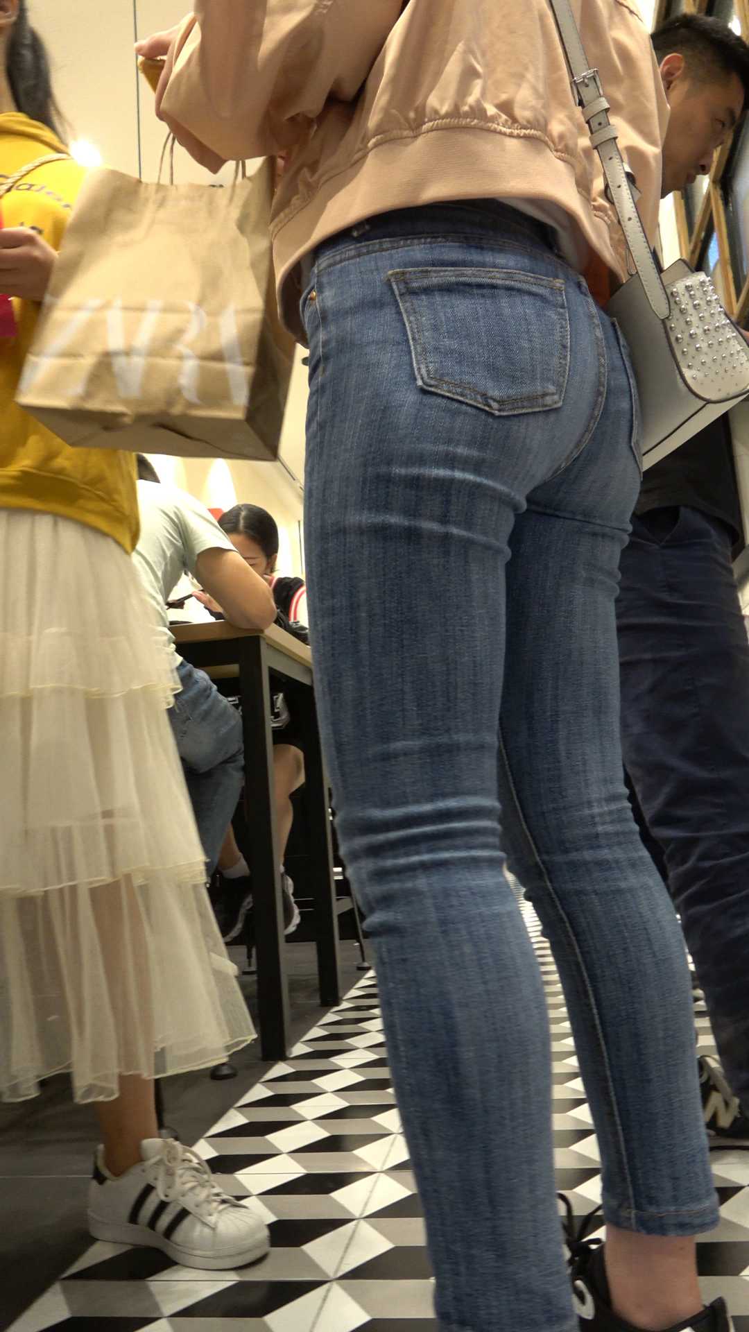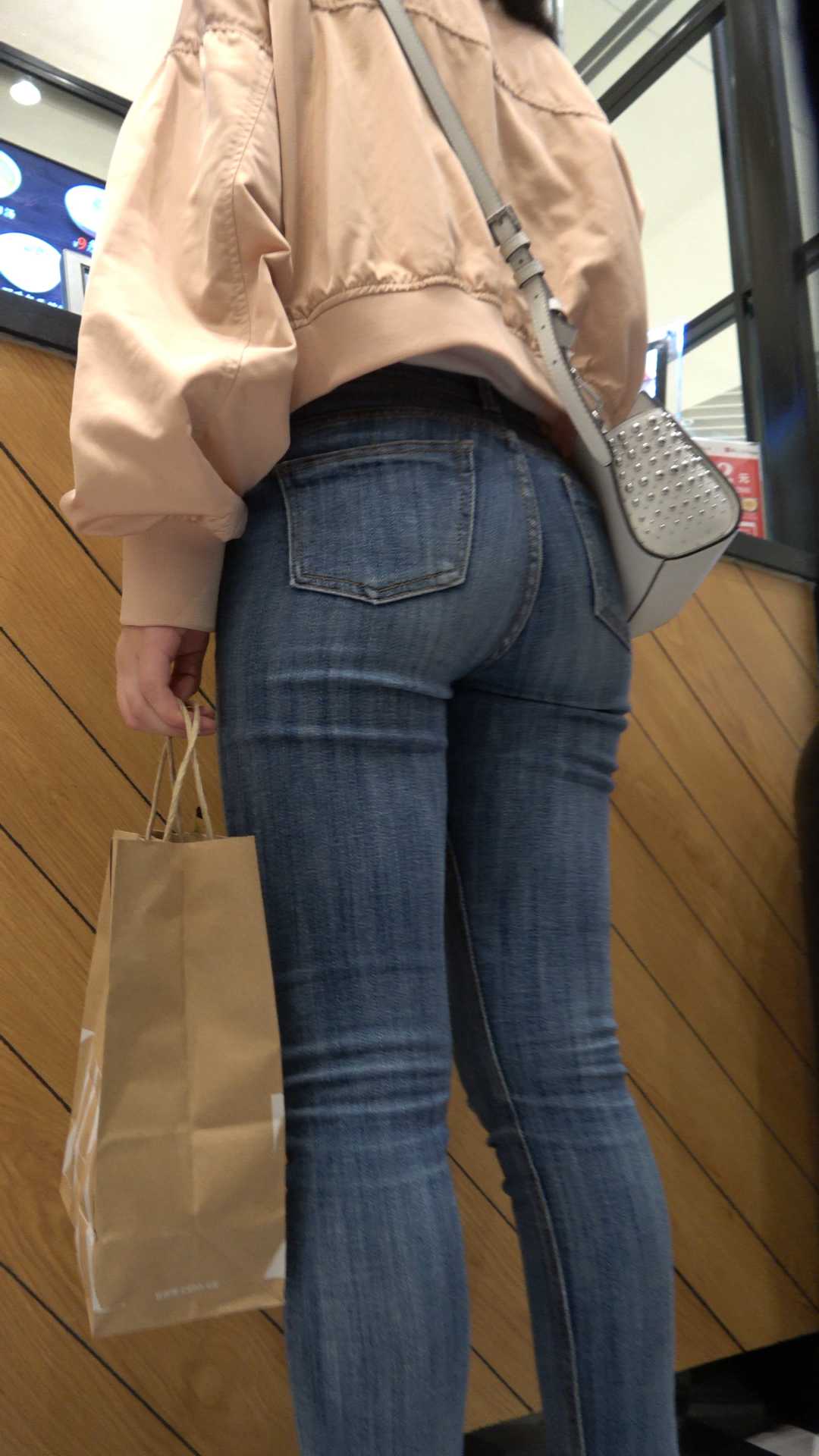 C63商场超紧牛仔肥臀大学妹