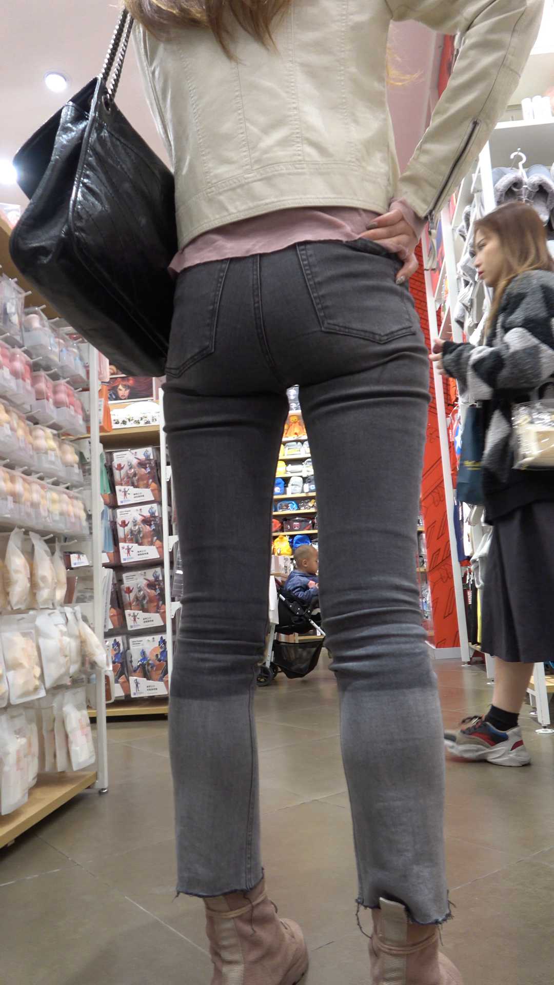 C198灰牛仔紧内痕美女小姐姐