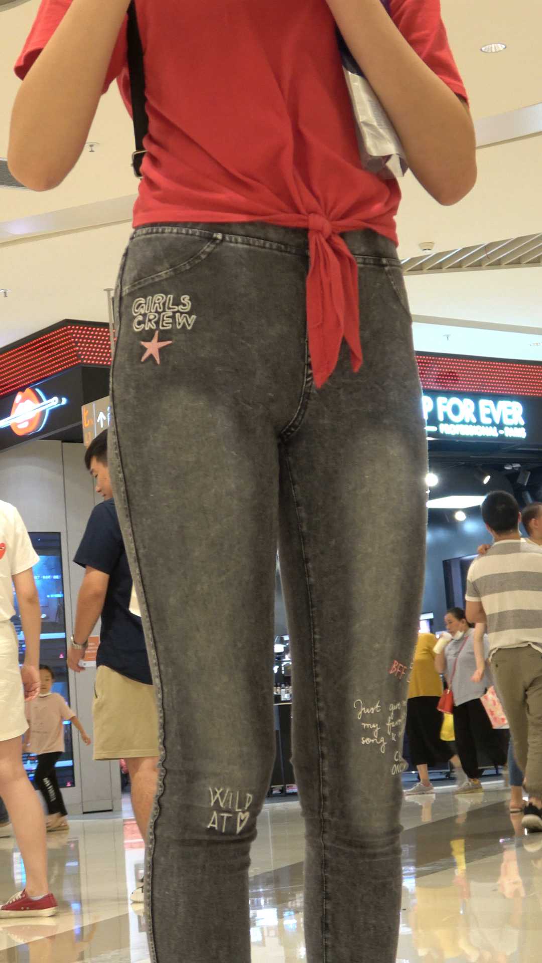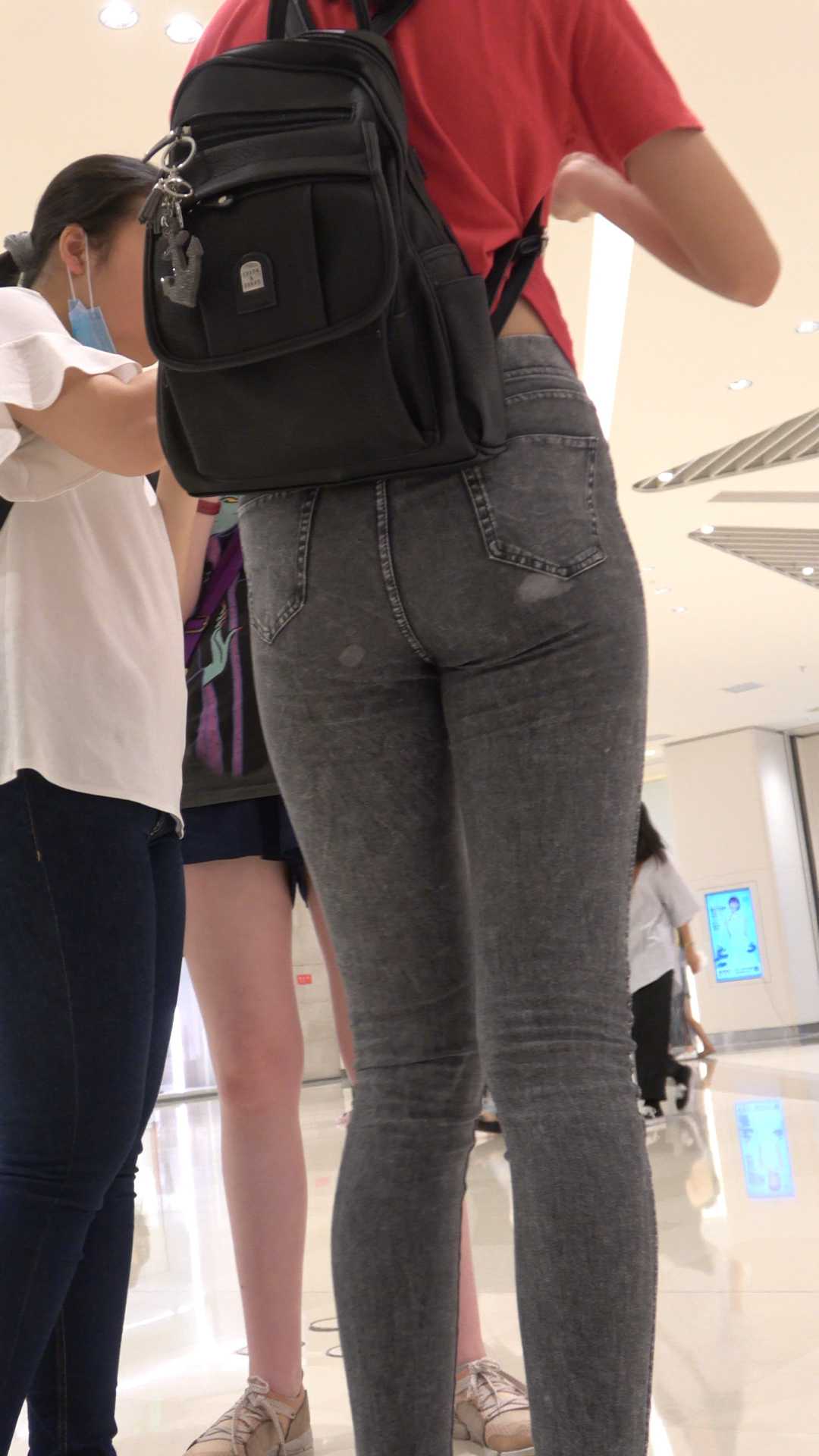 C214紧身包臀灰牛仔前后特写