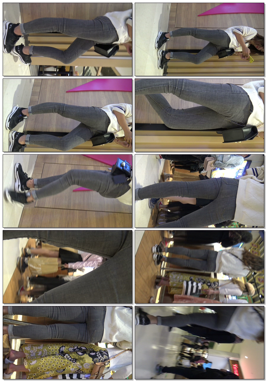 C225紧身灰牛仔少妇玩手机