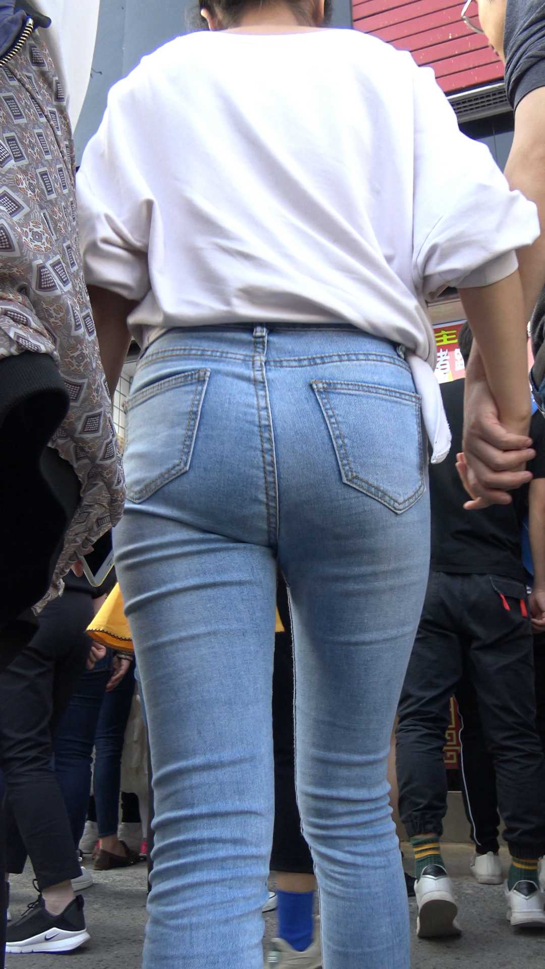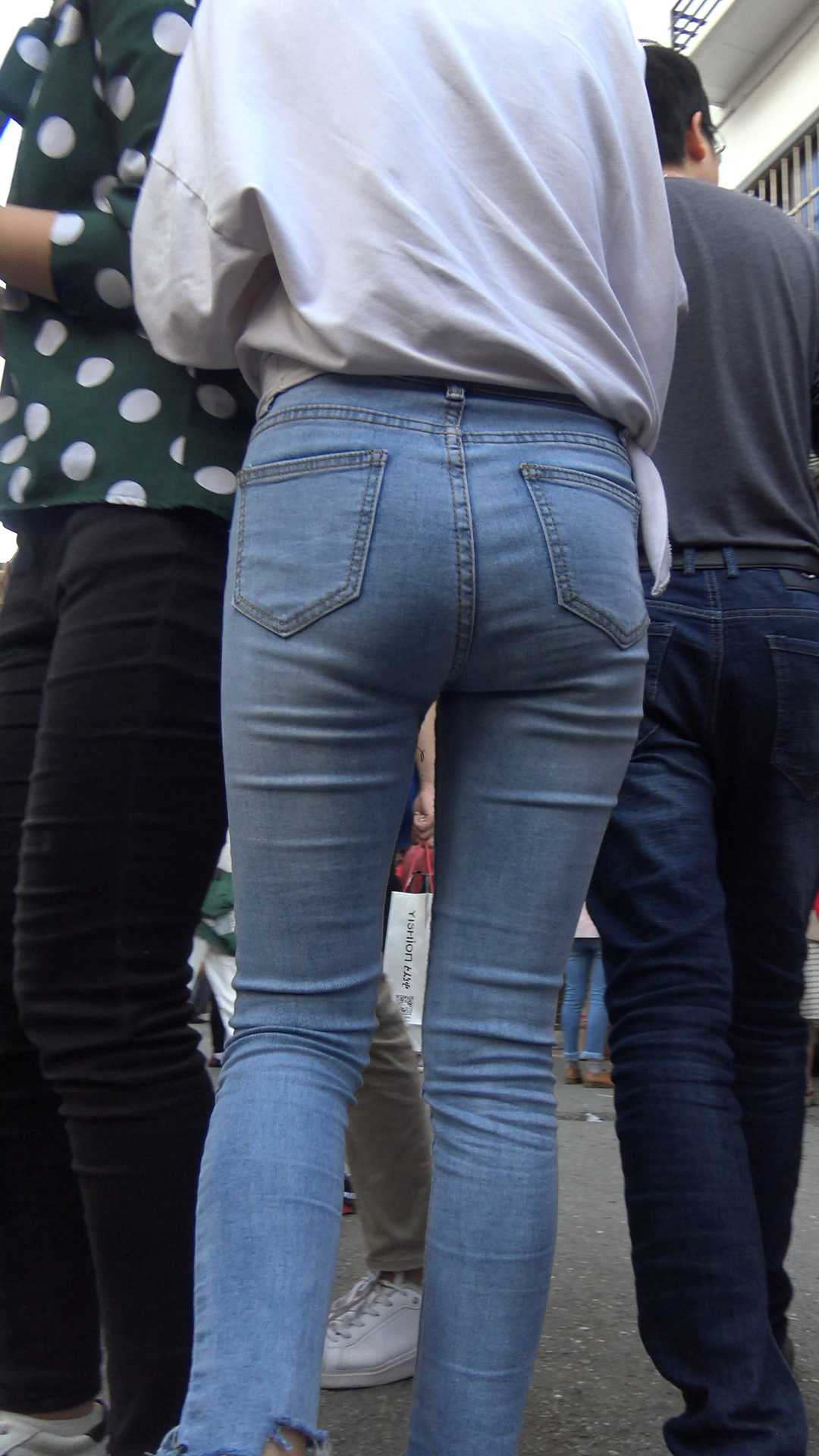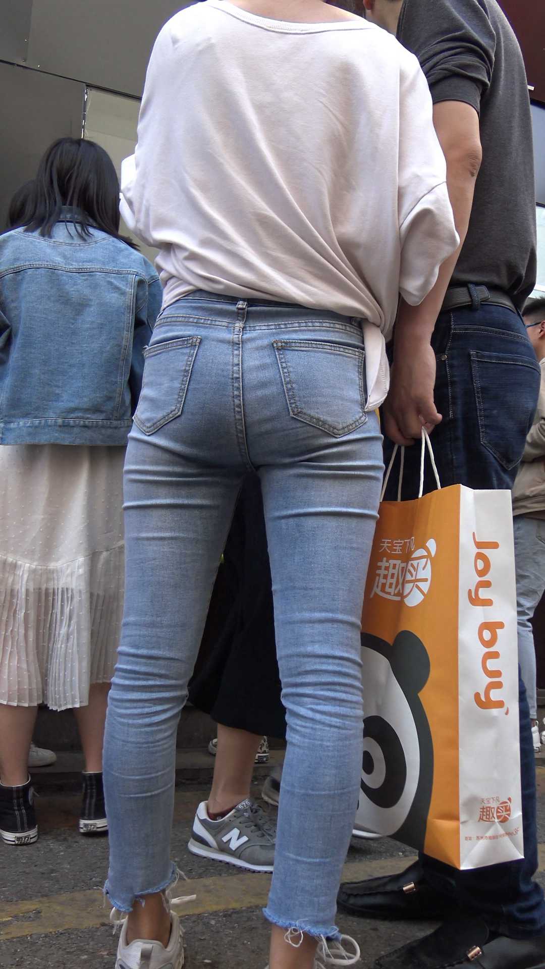 C267街拍灰色牛仔裤小姐姐