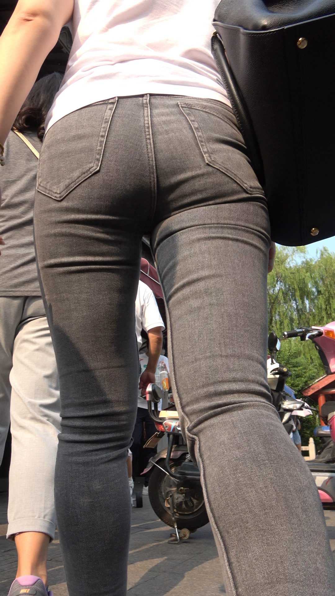 C282超紧灰牛仔饱满紧臀少妇