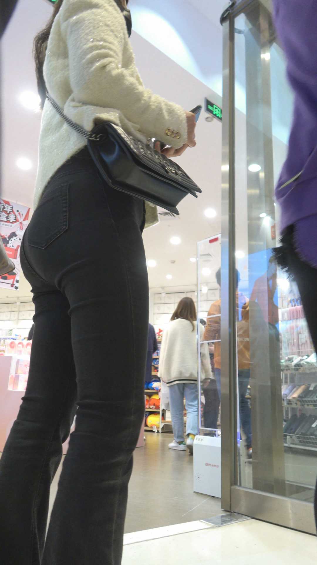 C322饱满圆润黑牛仔喇叭裤妹子