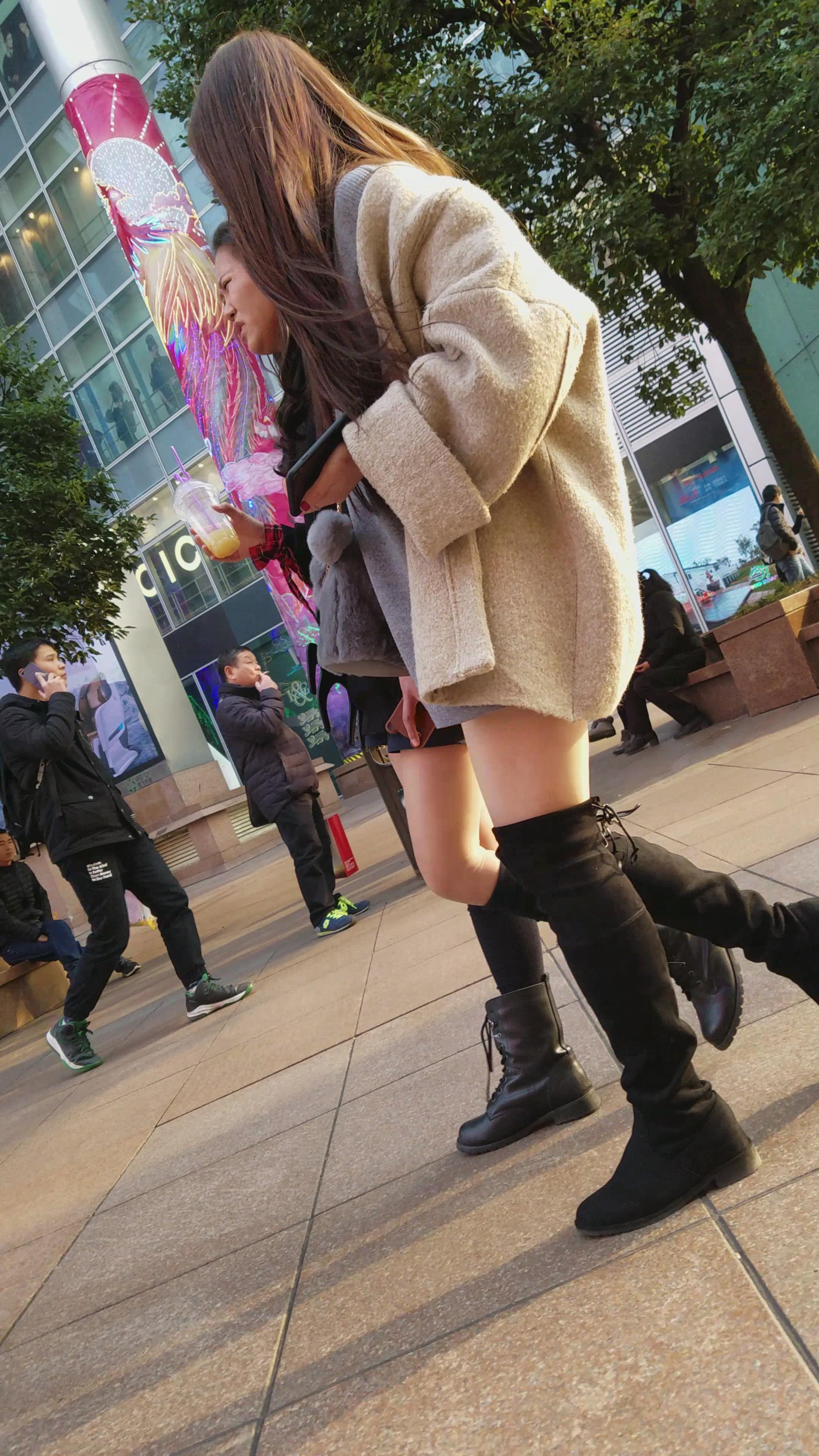 4k-街拍长筒靴肉色丝袜美颜俩姐妹花 编号3299