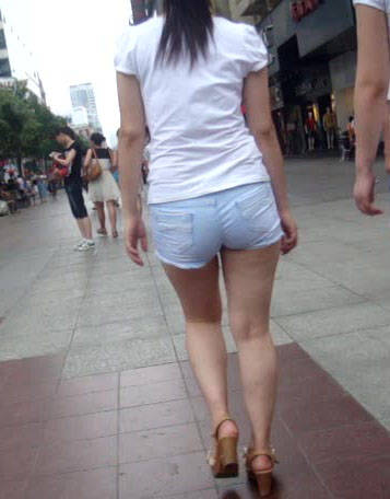流行风向标:花容月貌的裹臀裙牛仔短裤美腿女孩 编号1068