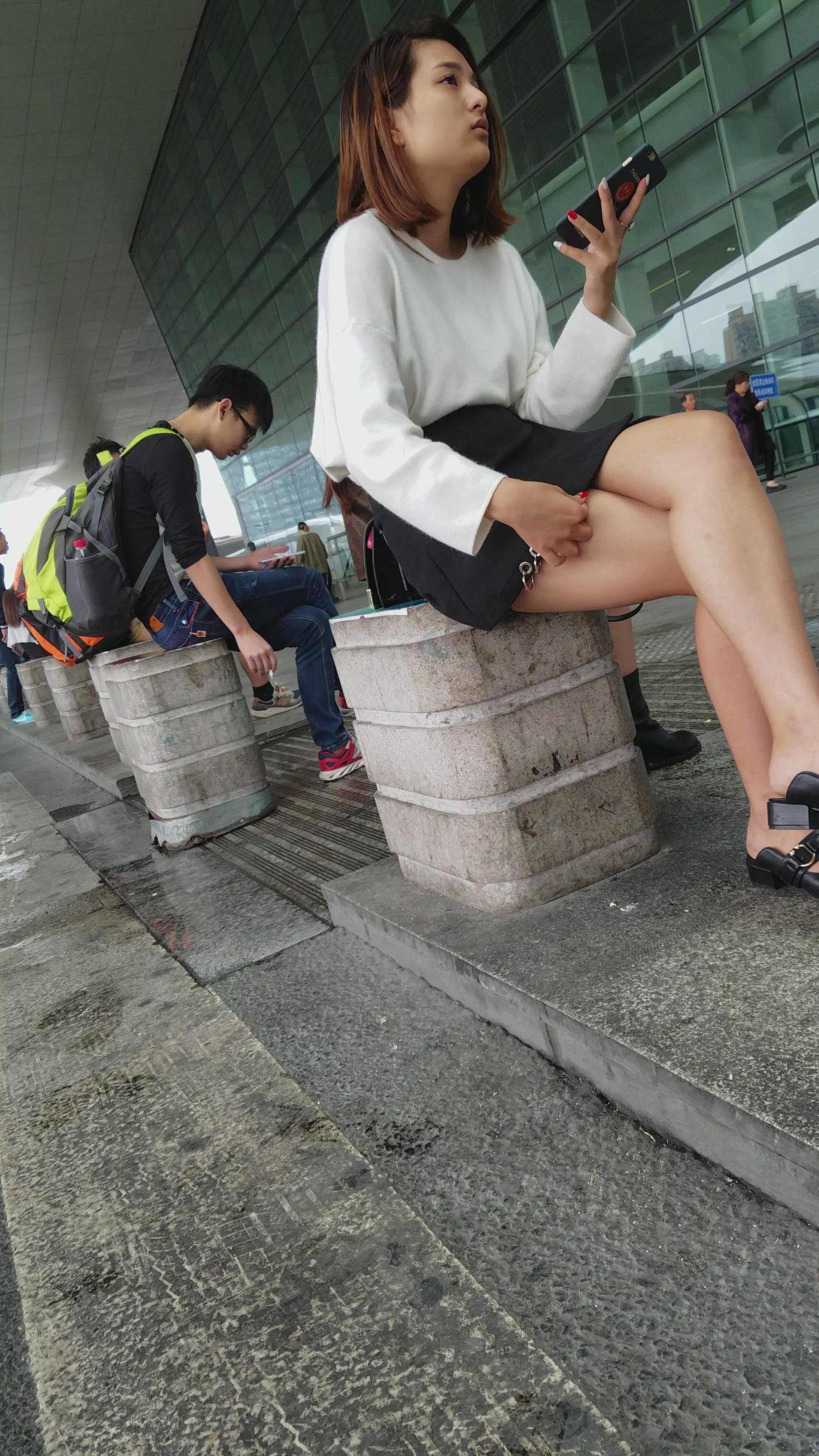 4k-坐在石墩上玩手机的美腿短裙美女姐姐 编号3312