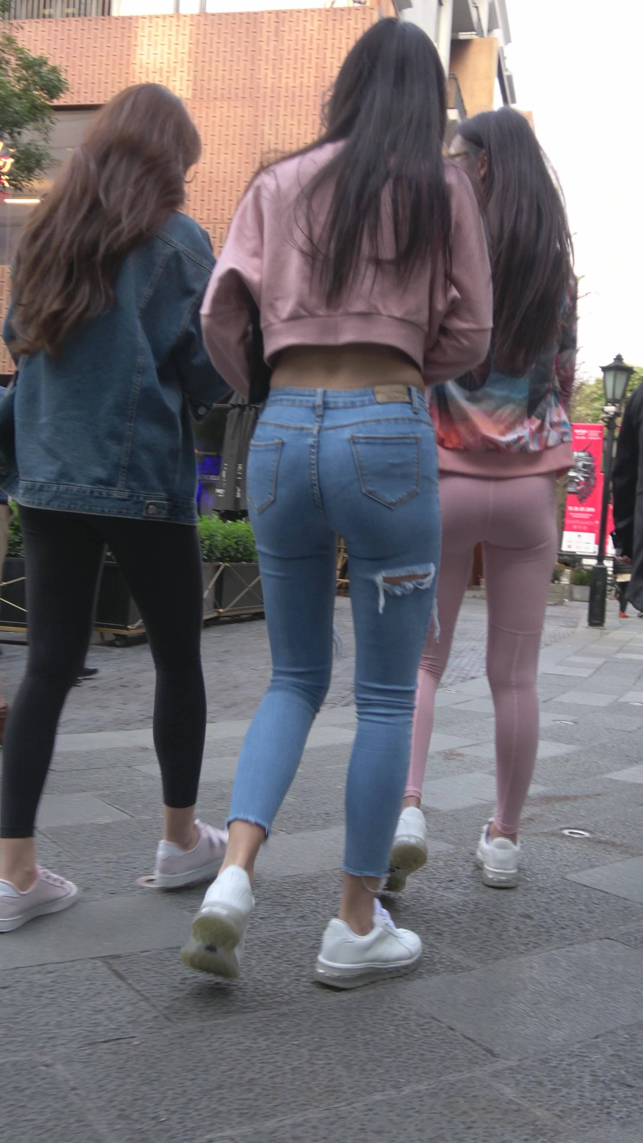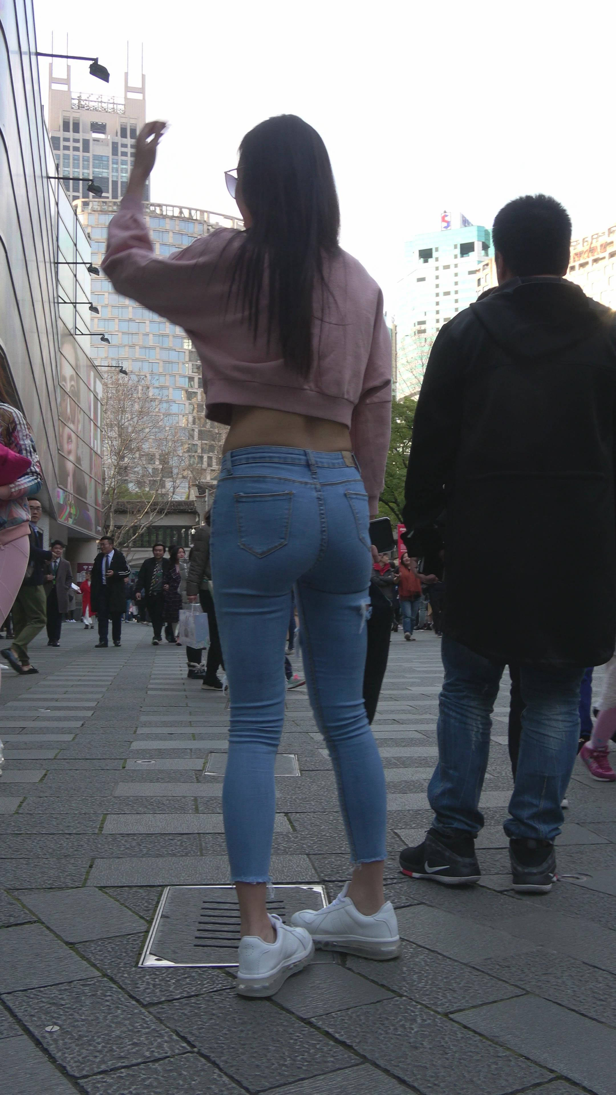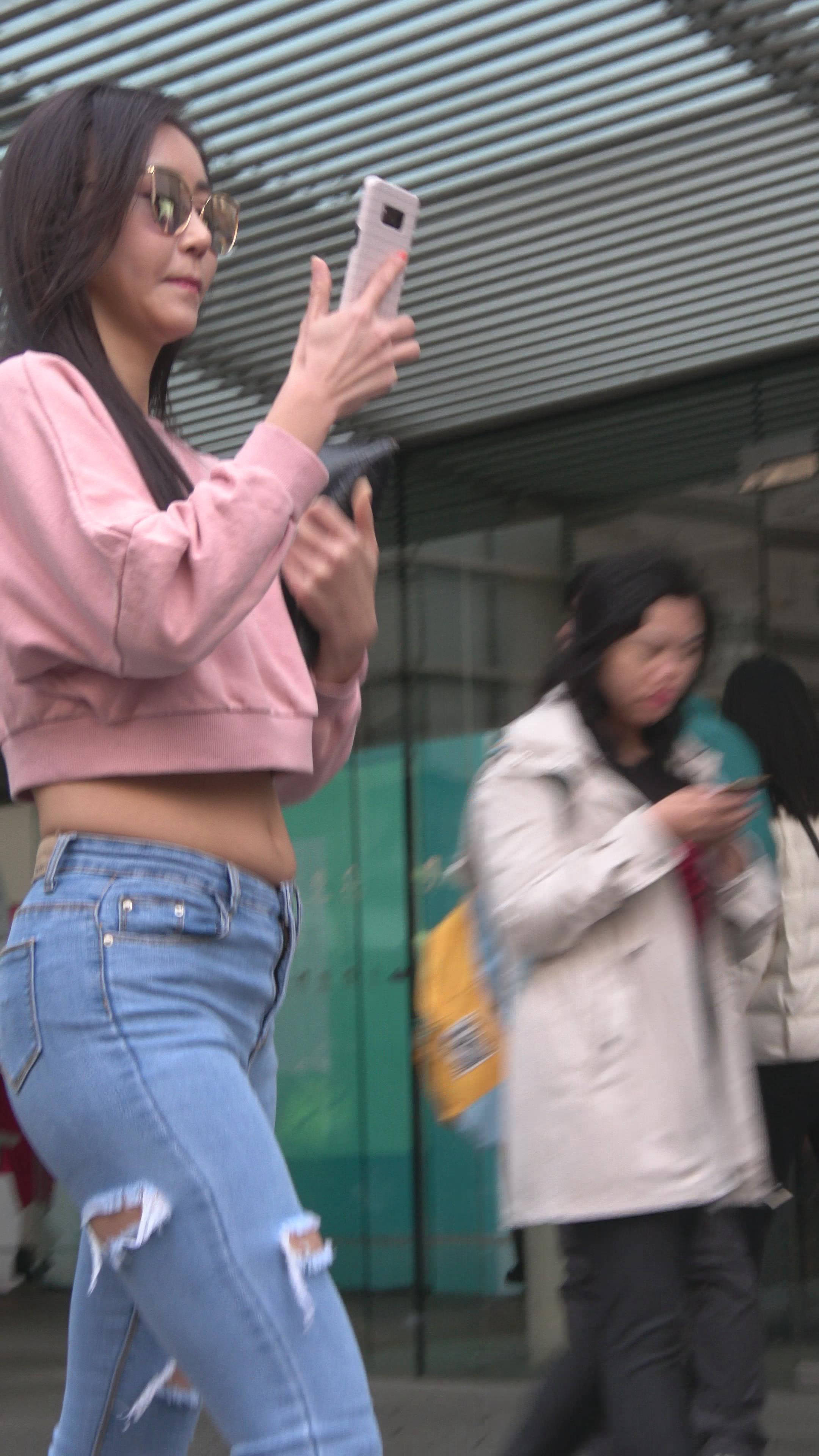 4K 超紧身牛仔裤粉色外套美女 编号7334