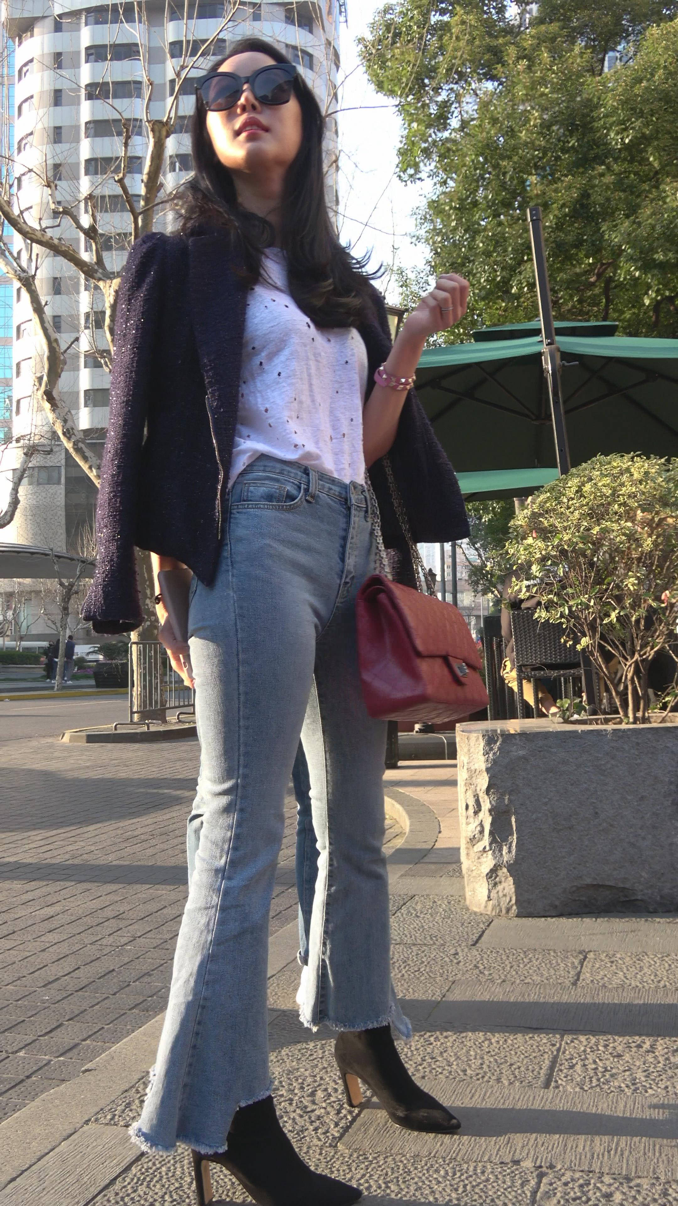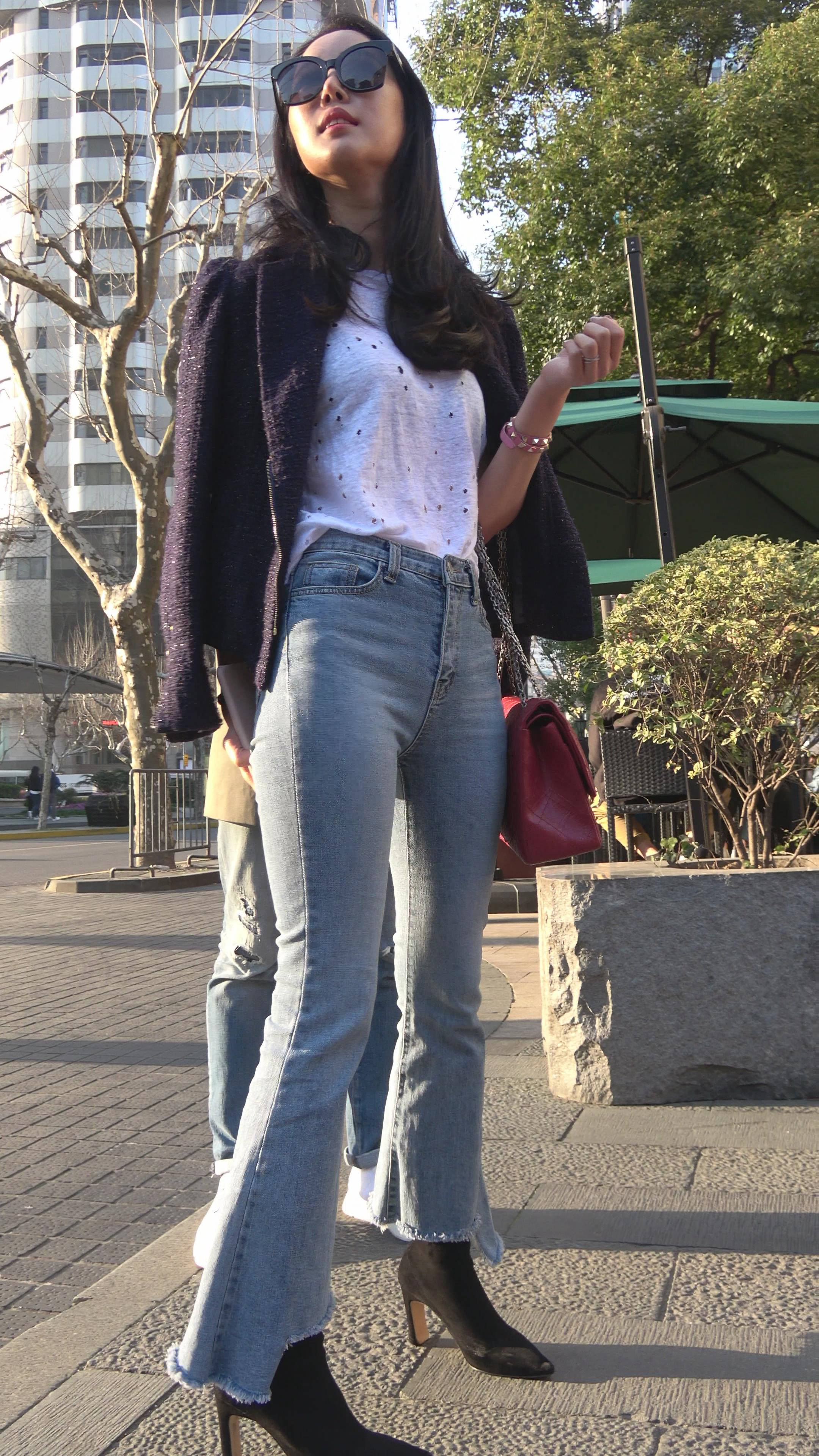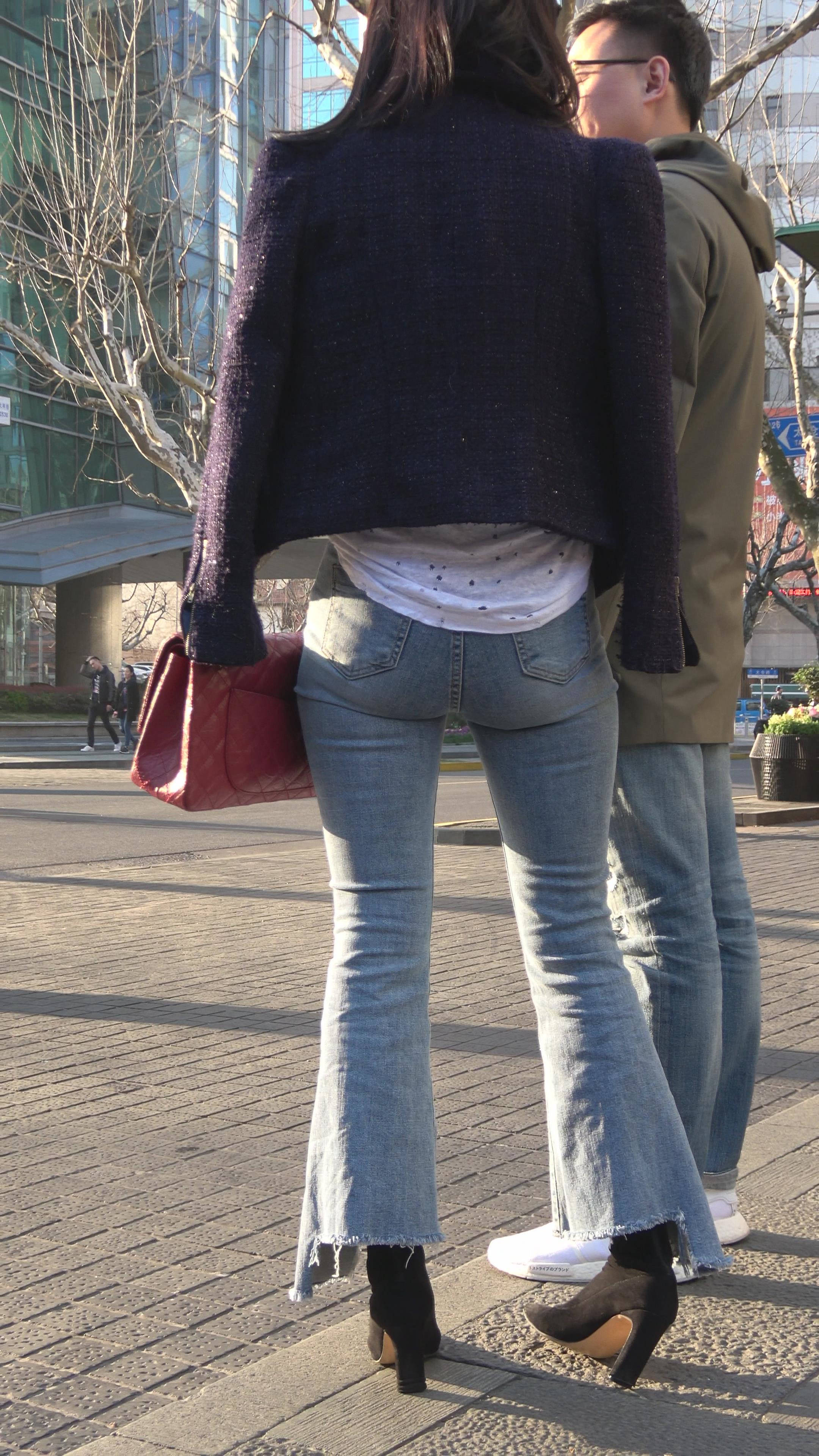4K 街拍牛仔喇叭裤宽臀性感美女 编号7343
