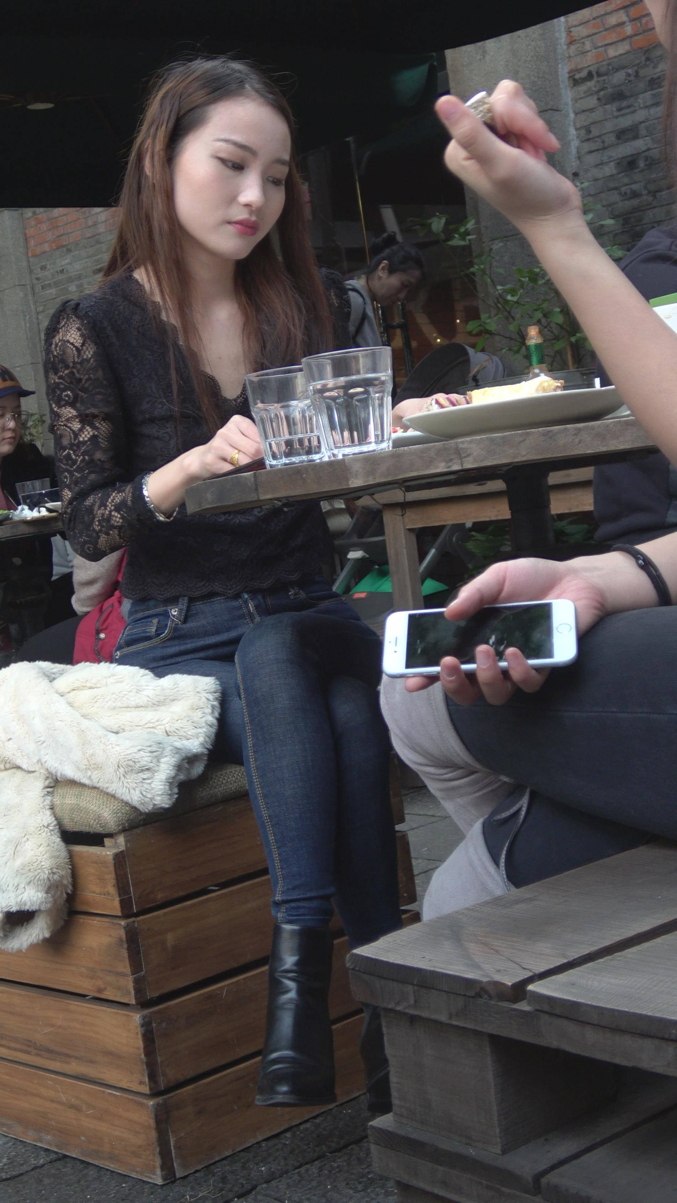 4K 蕾丝衣紧身牛仔气质美女 编号7345