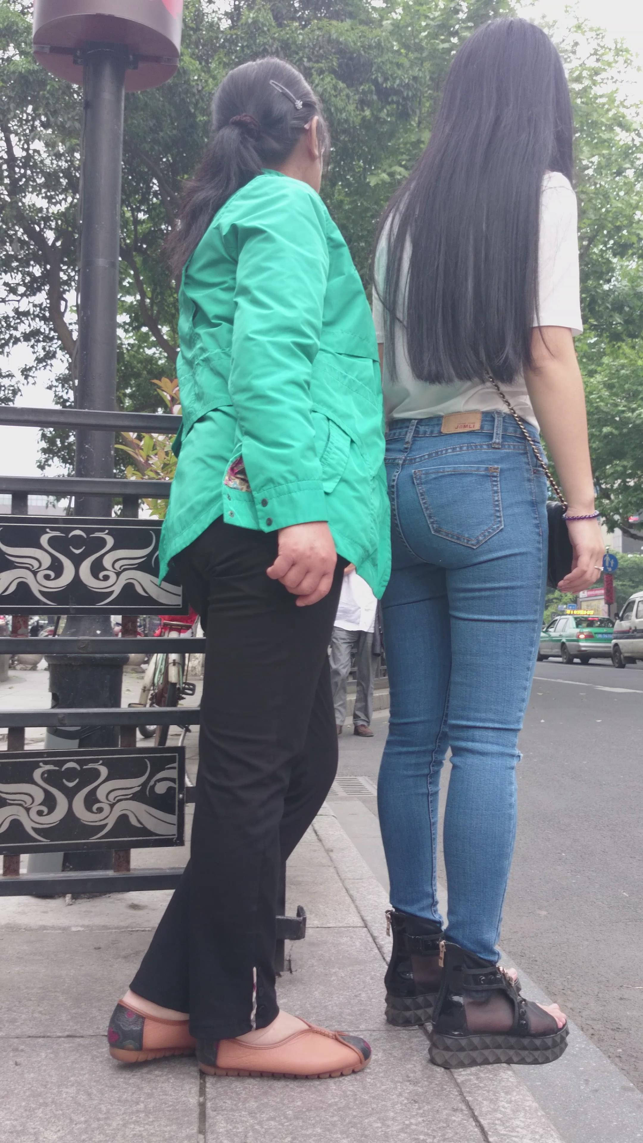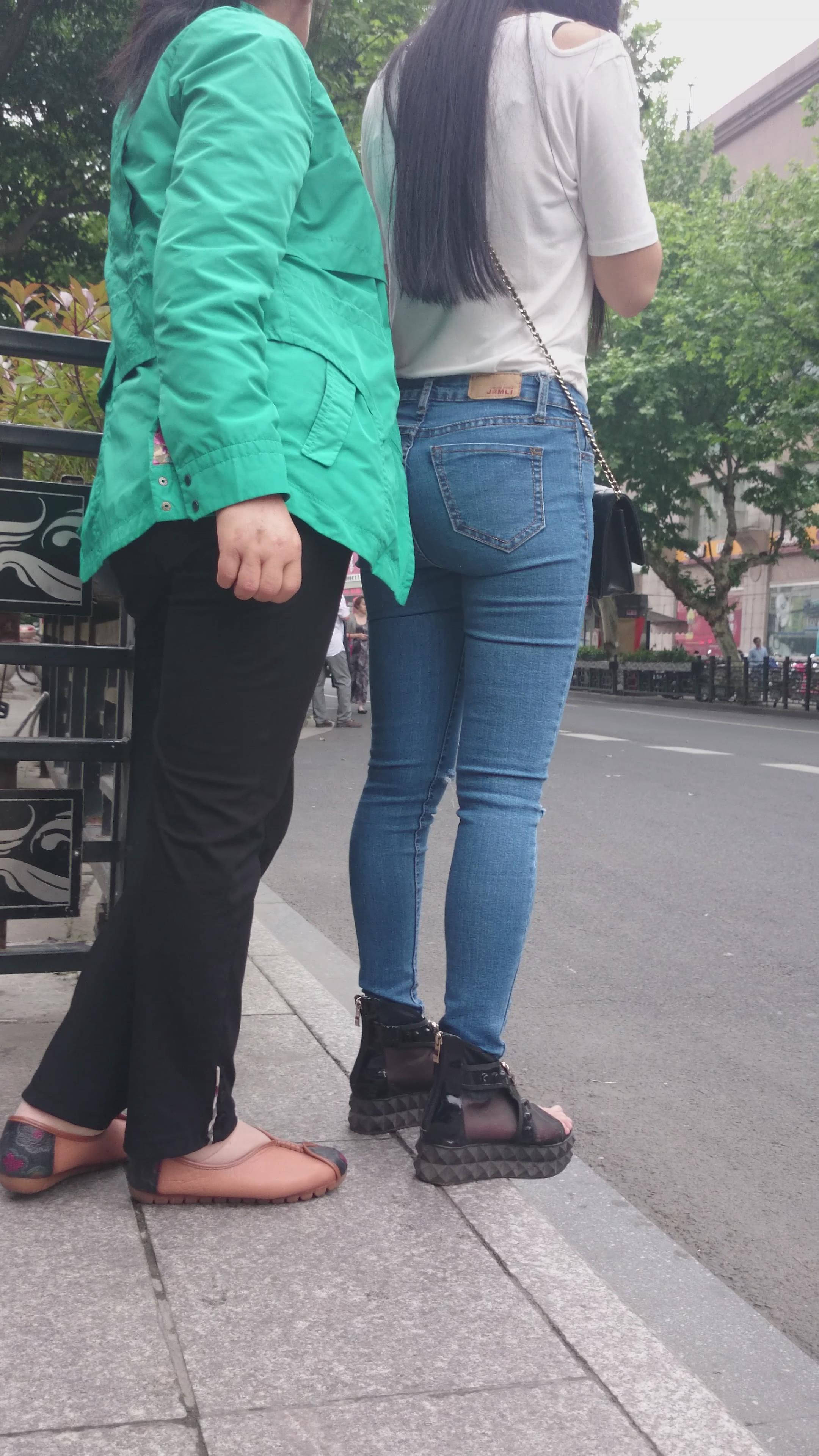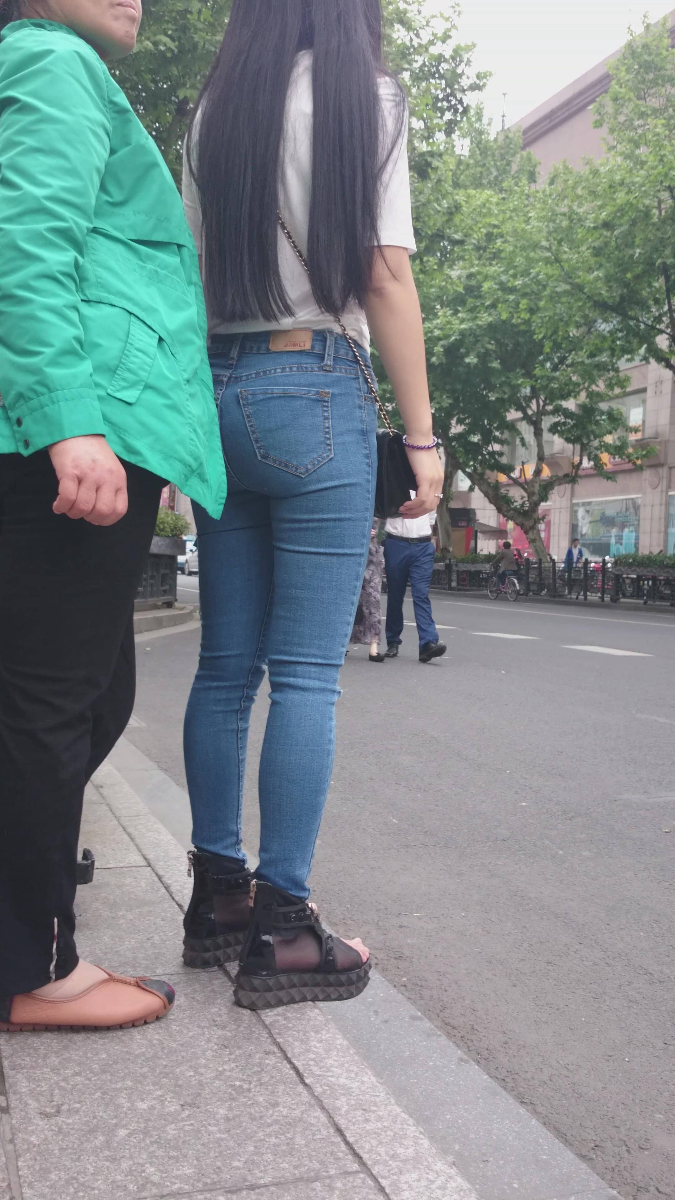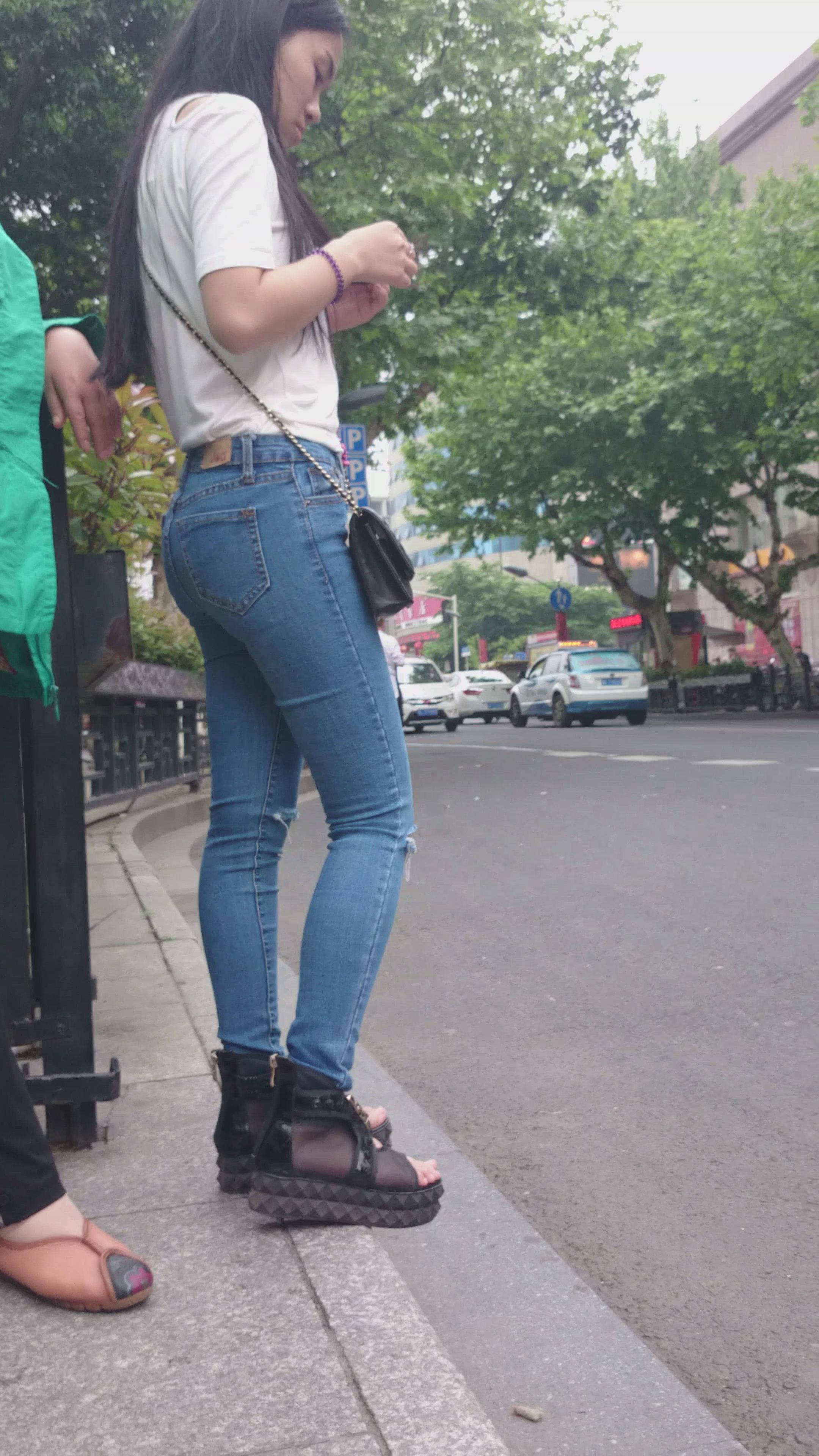 4k-街拍等公交的紧身蓝牛丰臀美女 编号7347