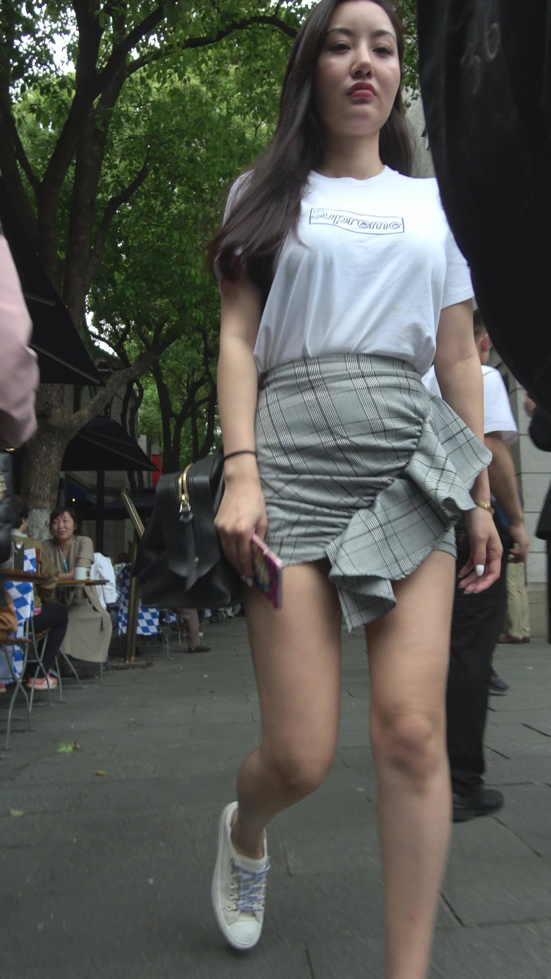 4K 性感包臀裙白T恤街拍美腿美女 编号7933