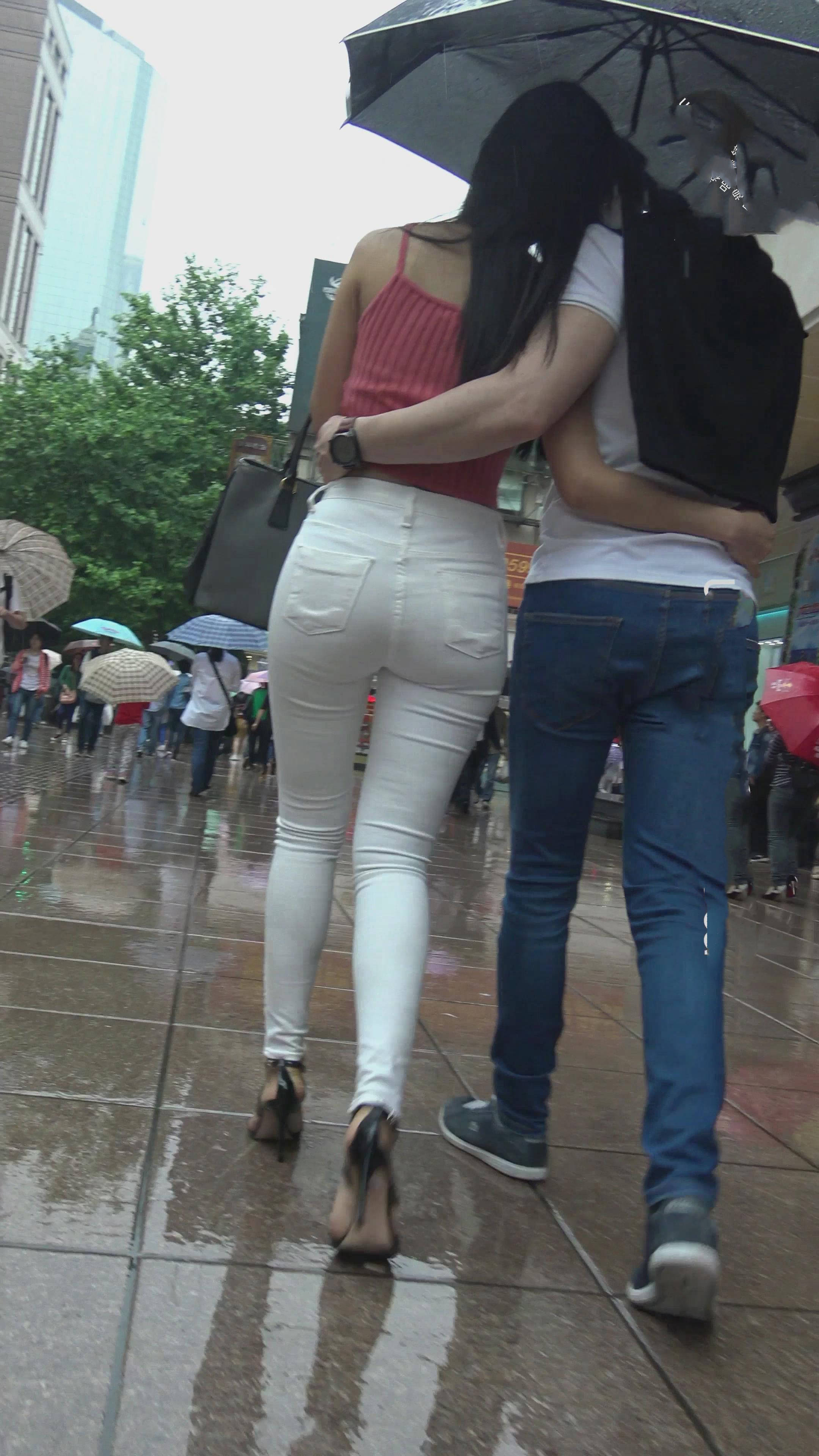 4k-雨天拍摄逛街的紧身白裤美腿老外情侣 编号7415