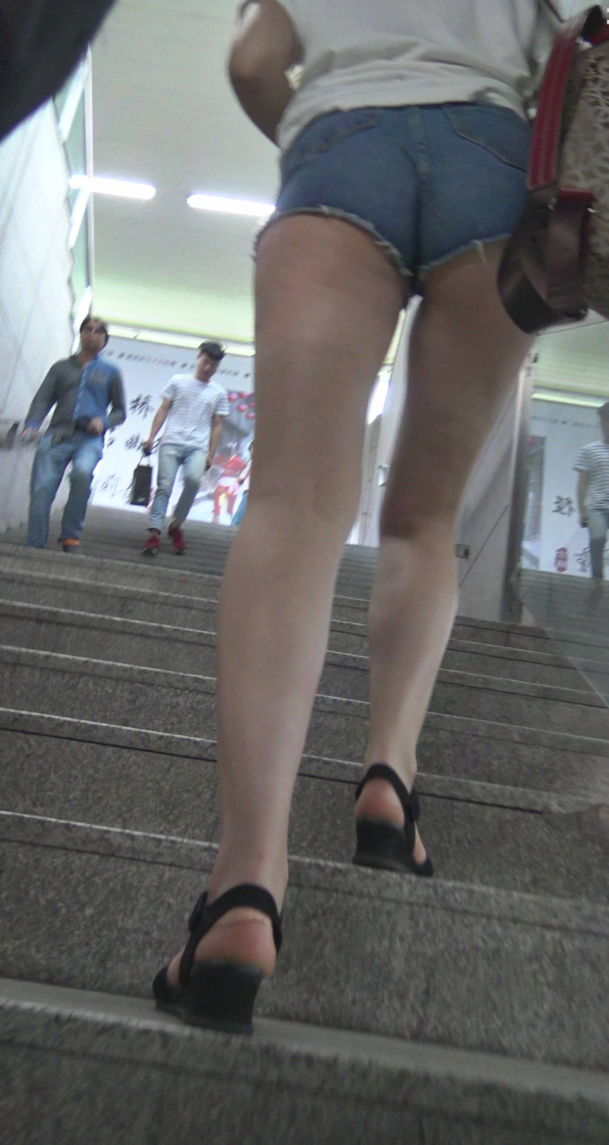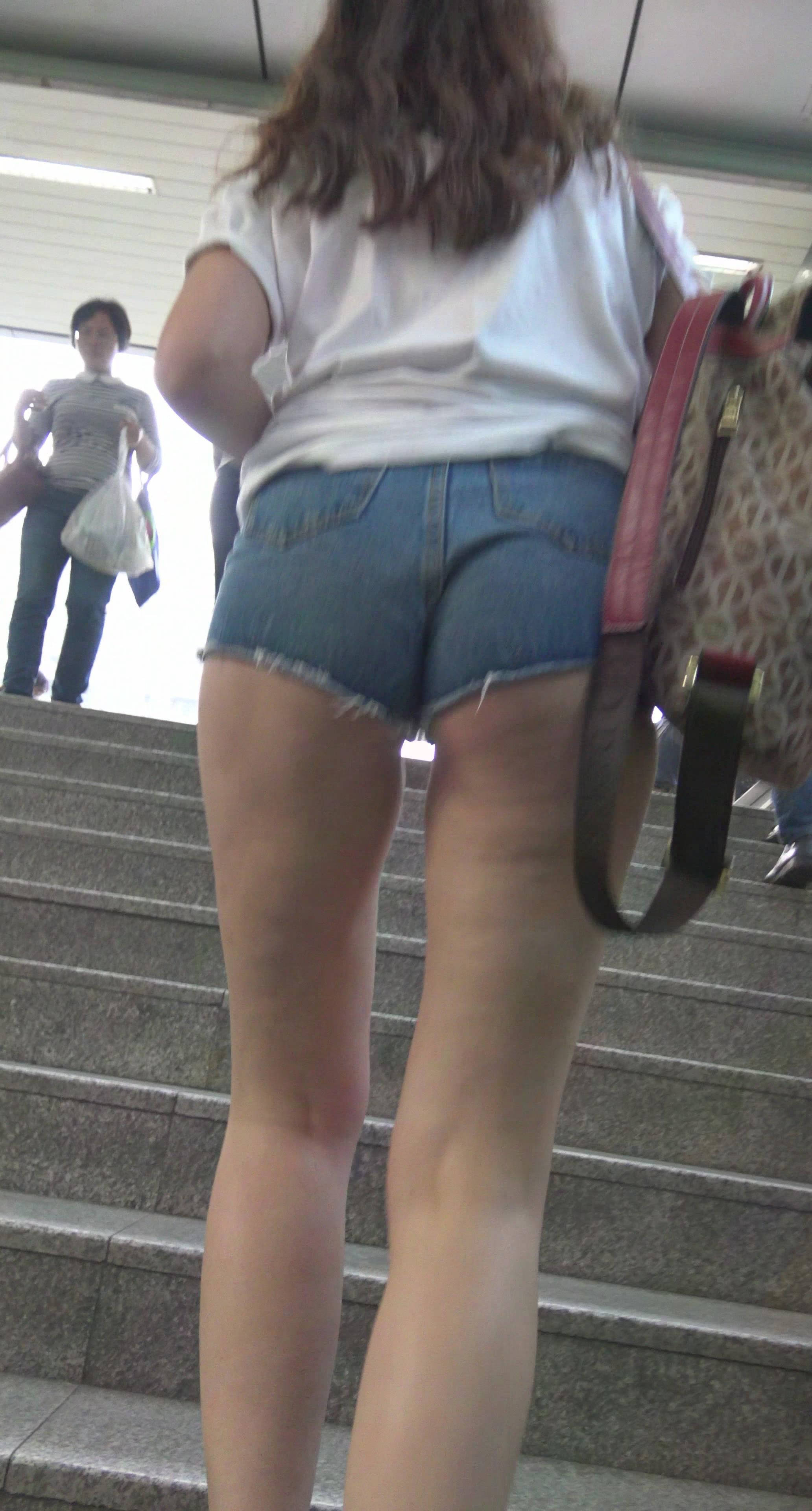 4k-高腰超短牛仔热裤白T恤蜜桃臀洋妹子 编号7423