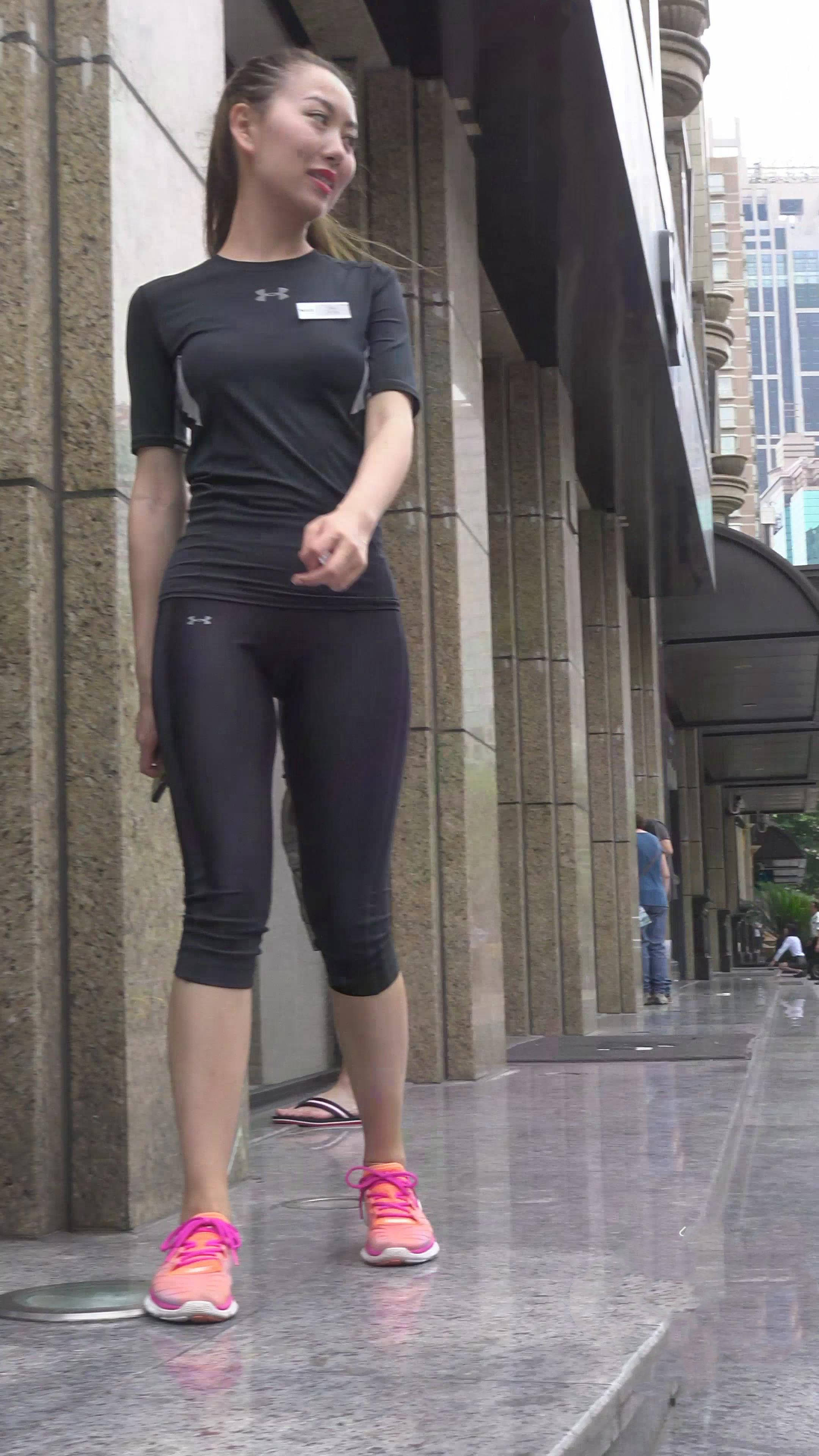 4k-紧身秀美黑色运动弹力裤美女 编号7443