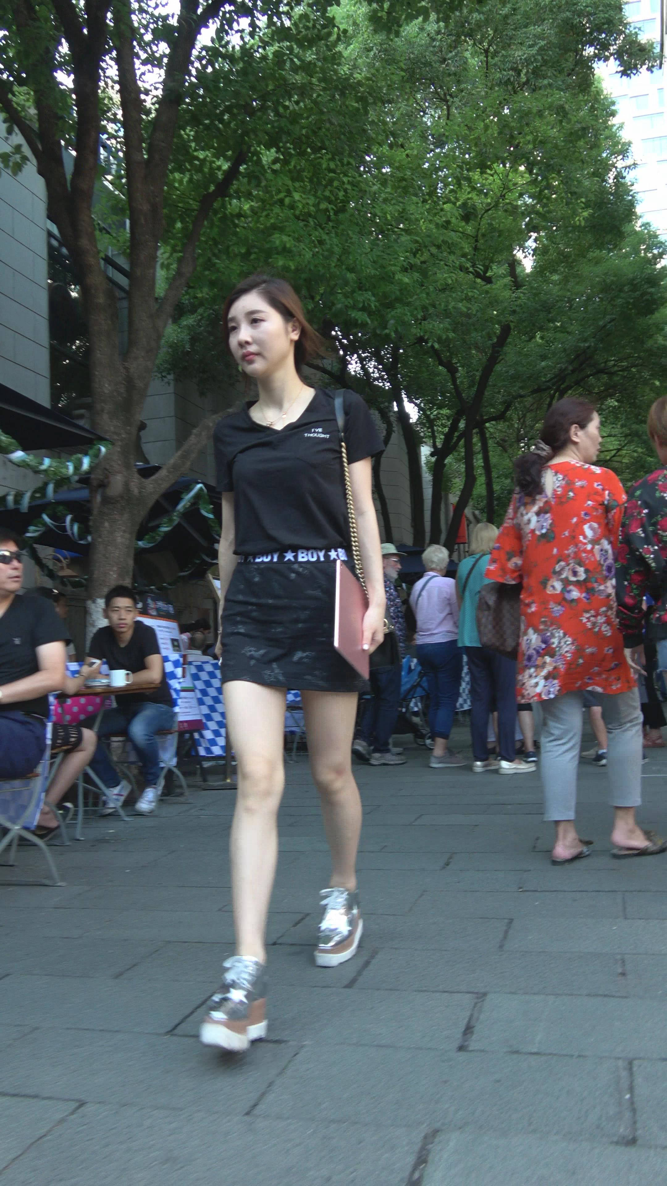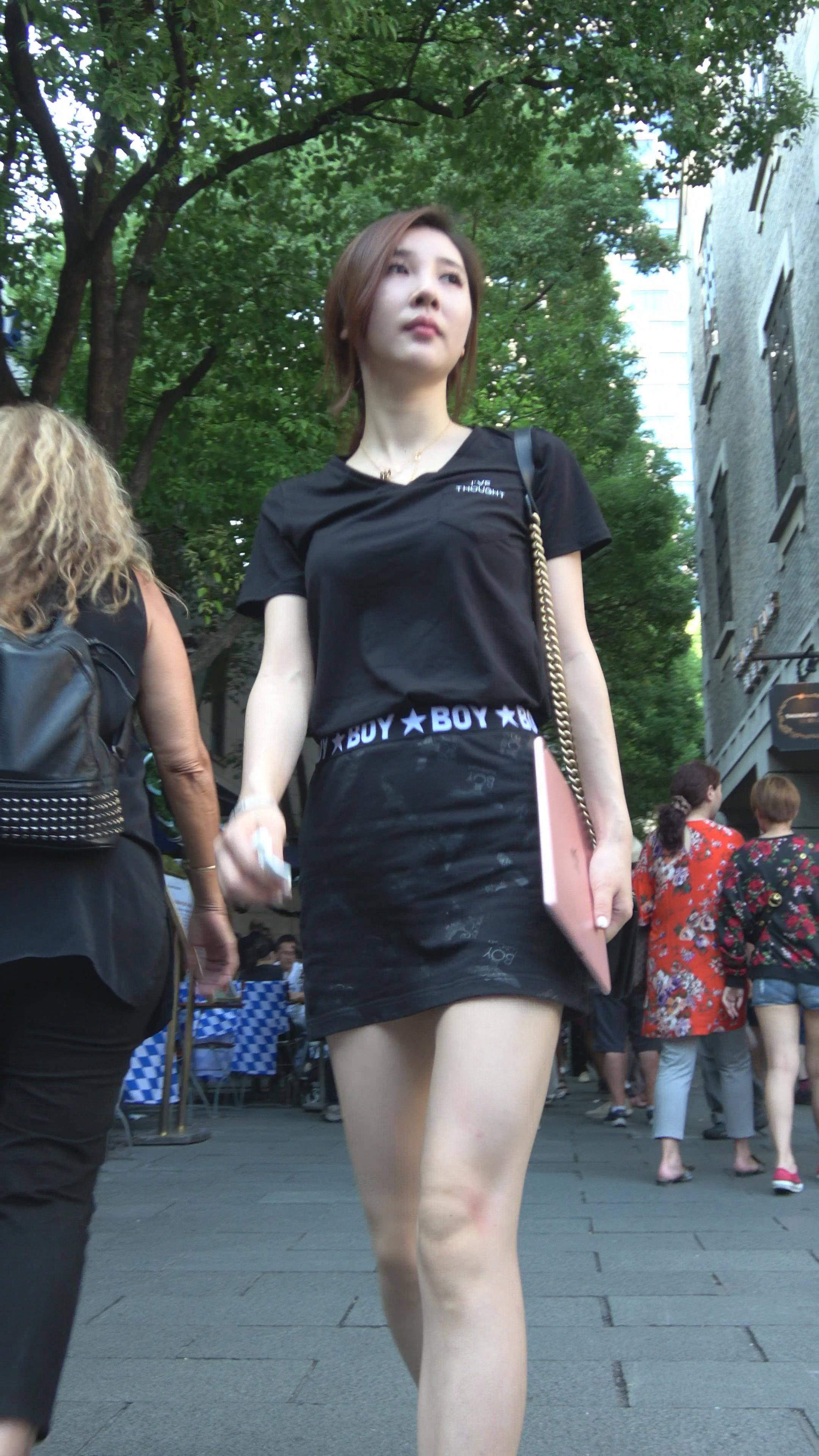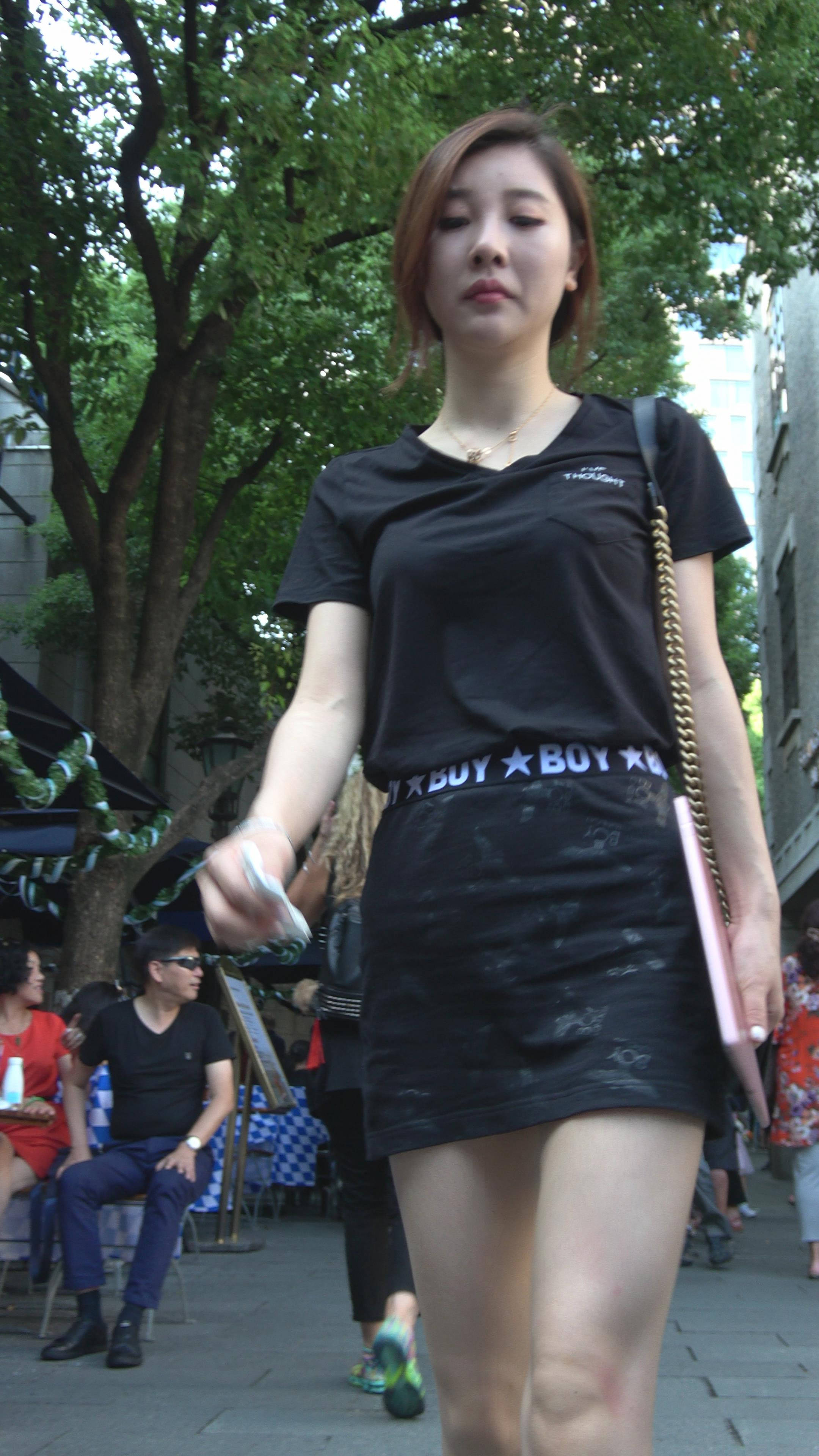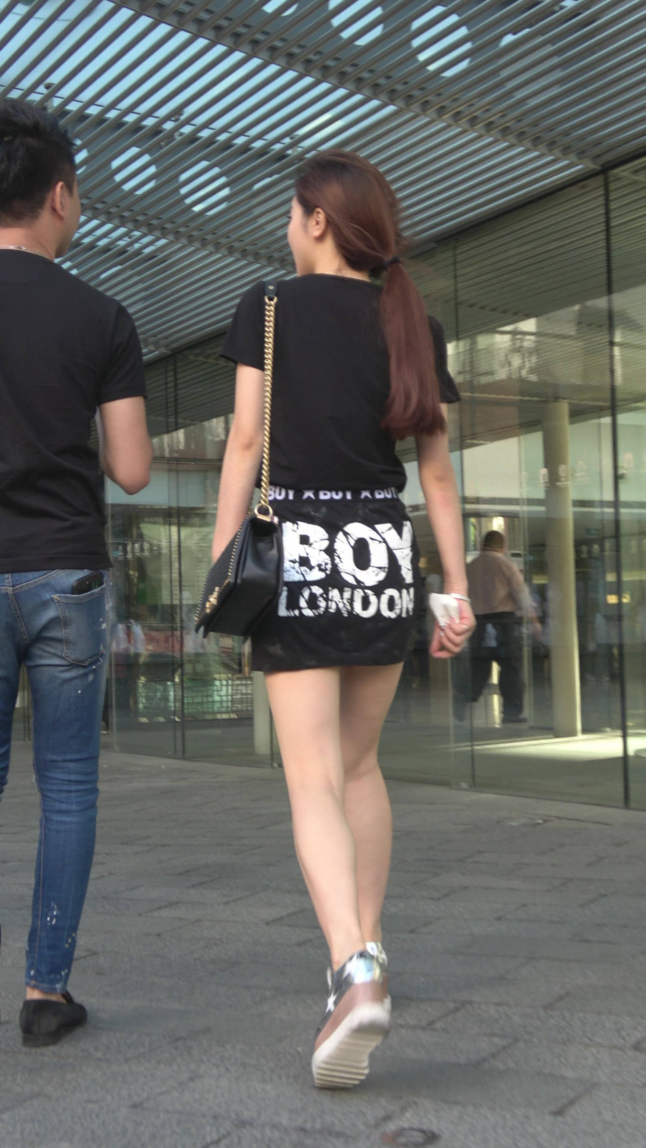 性感短裙黑色T恤街拍美女 编号7473