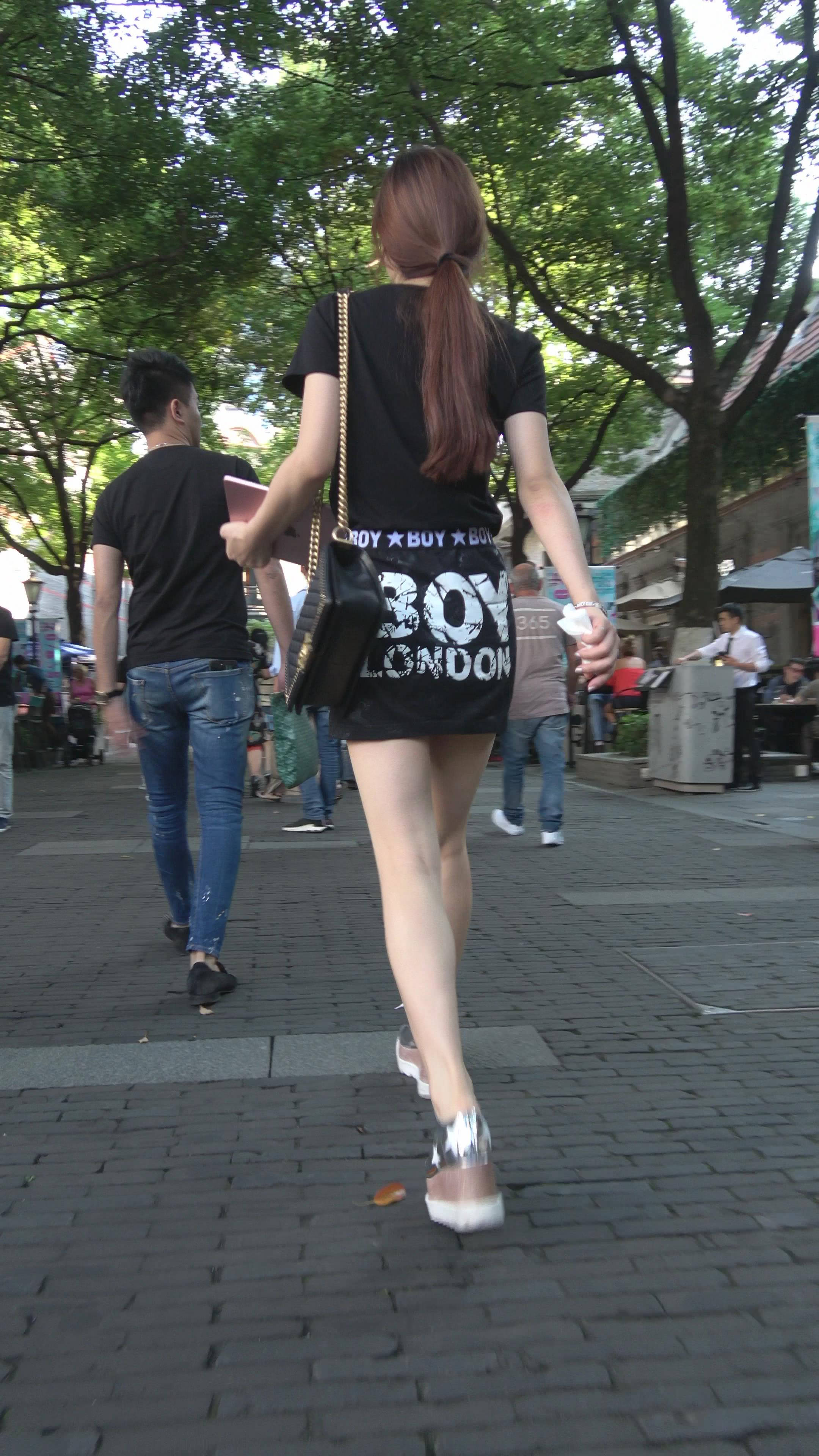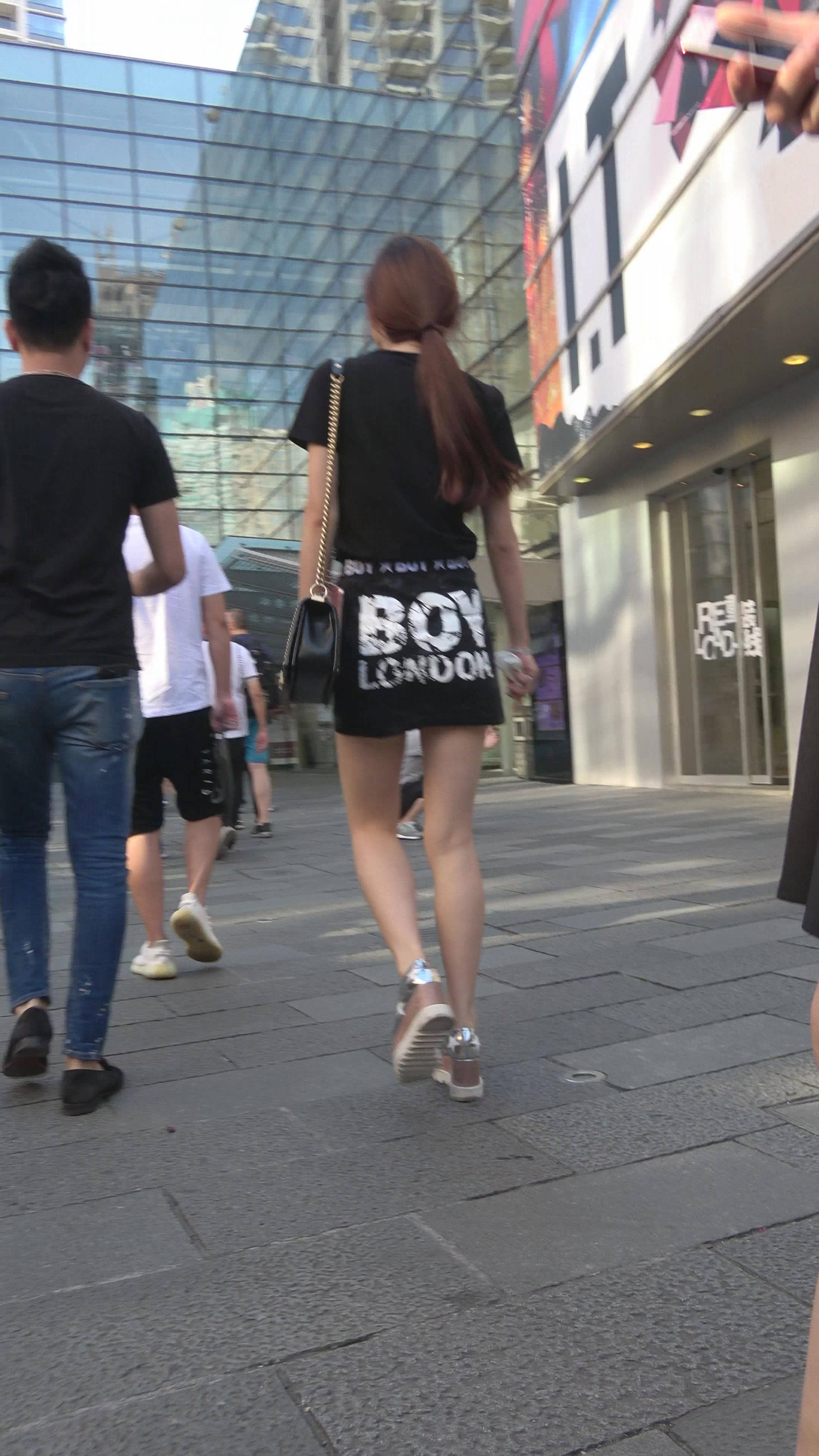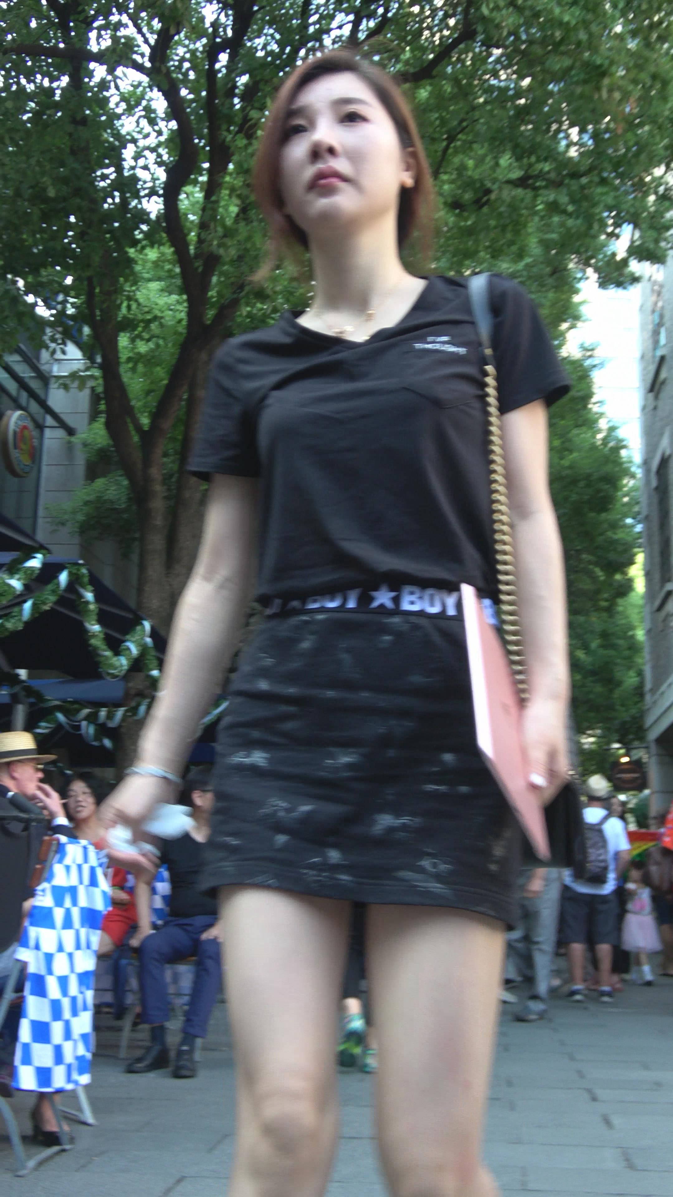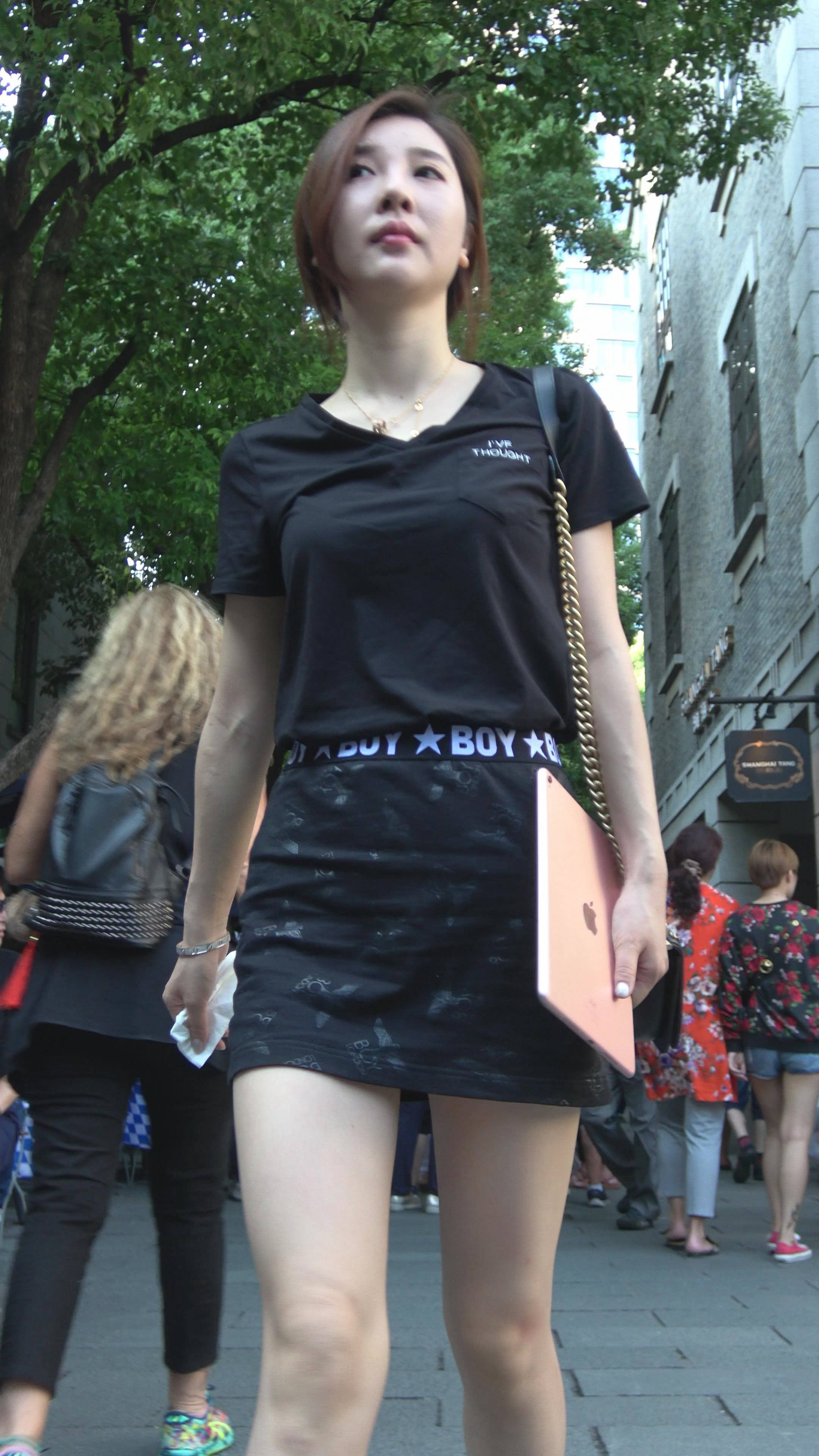 性感短裙黑色T恤街拍美女 编号7473