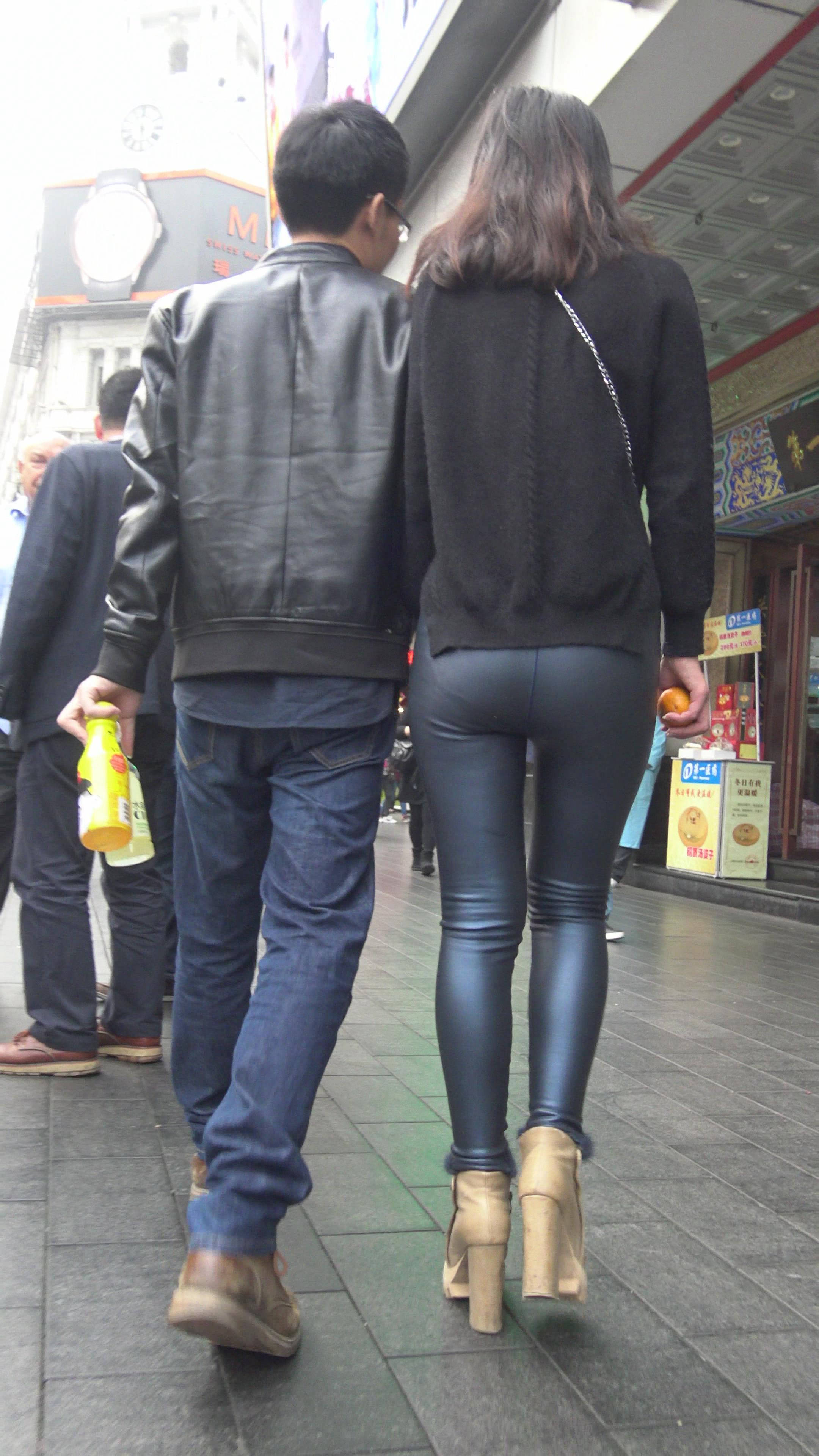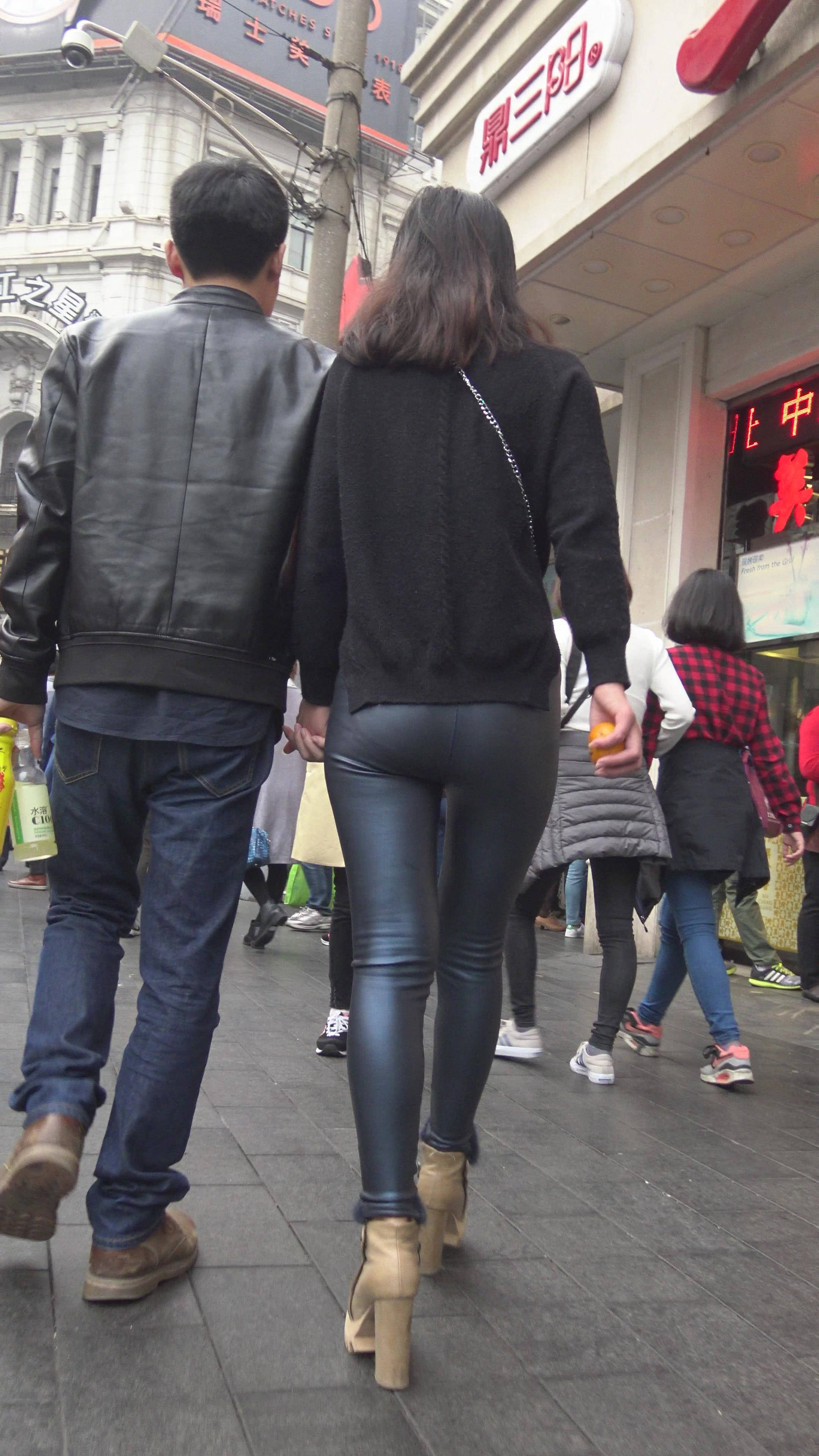 4K - 完美身材街拍皮裤性感美女 编号7481