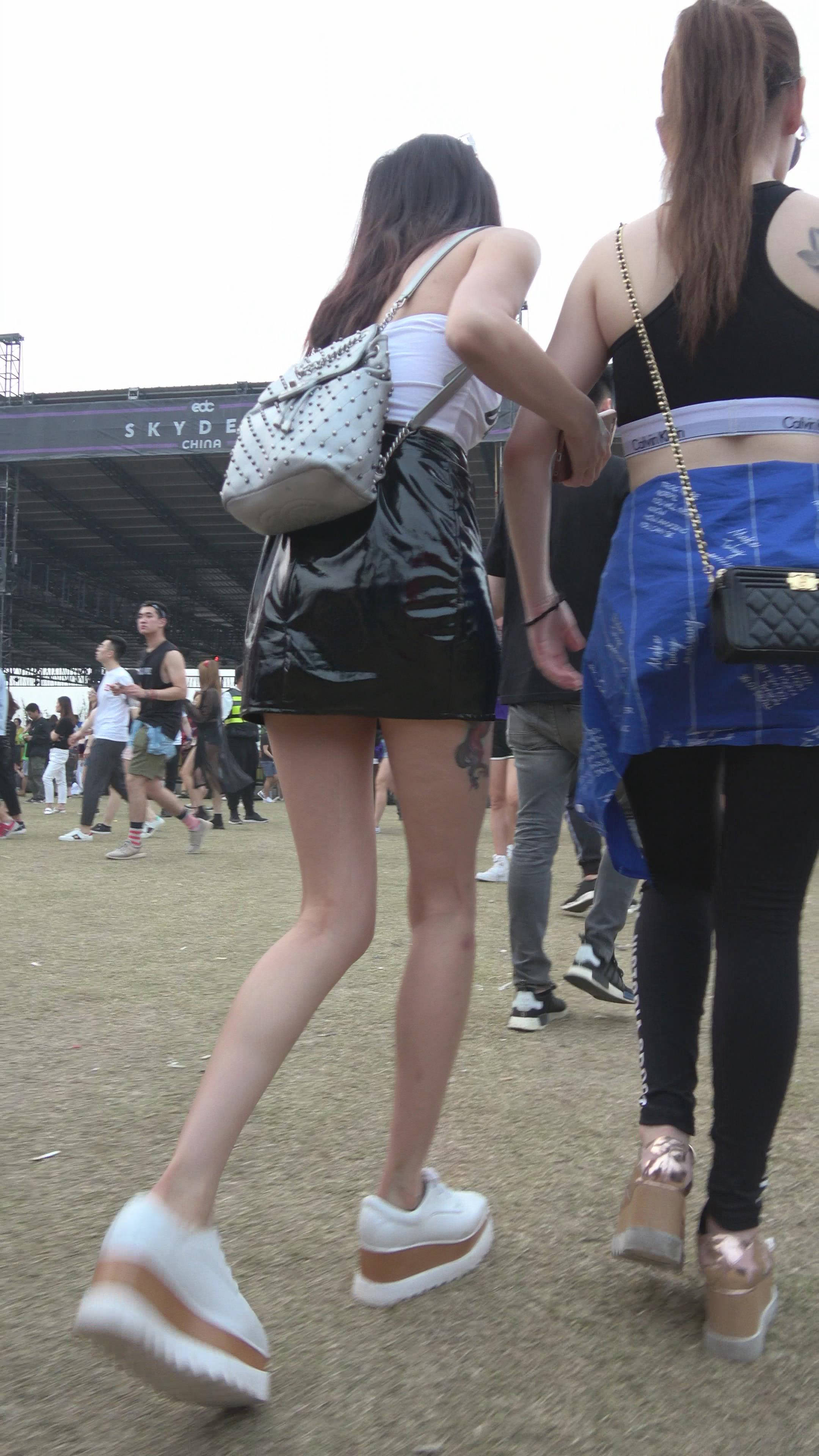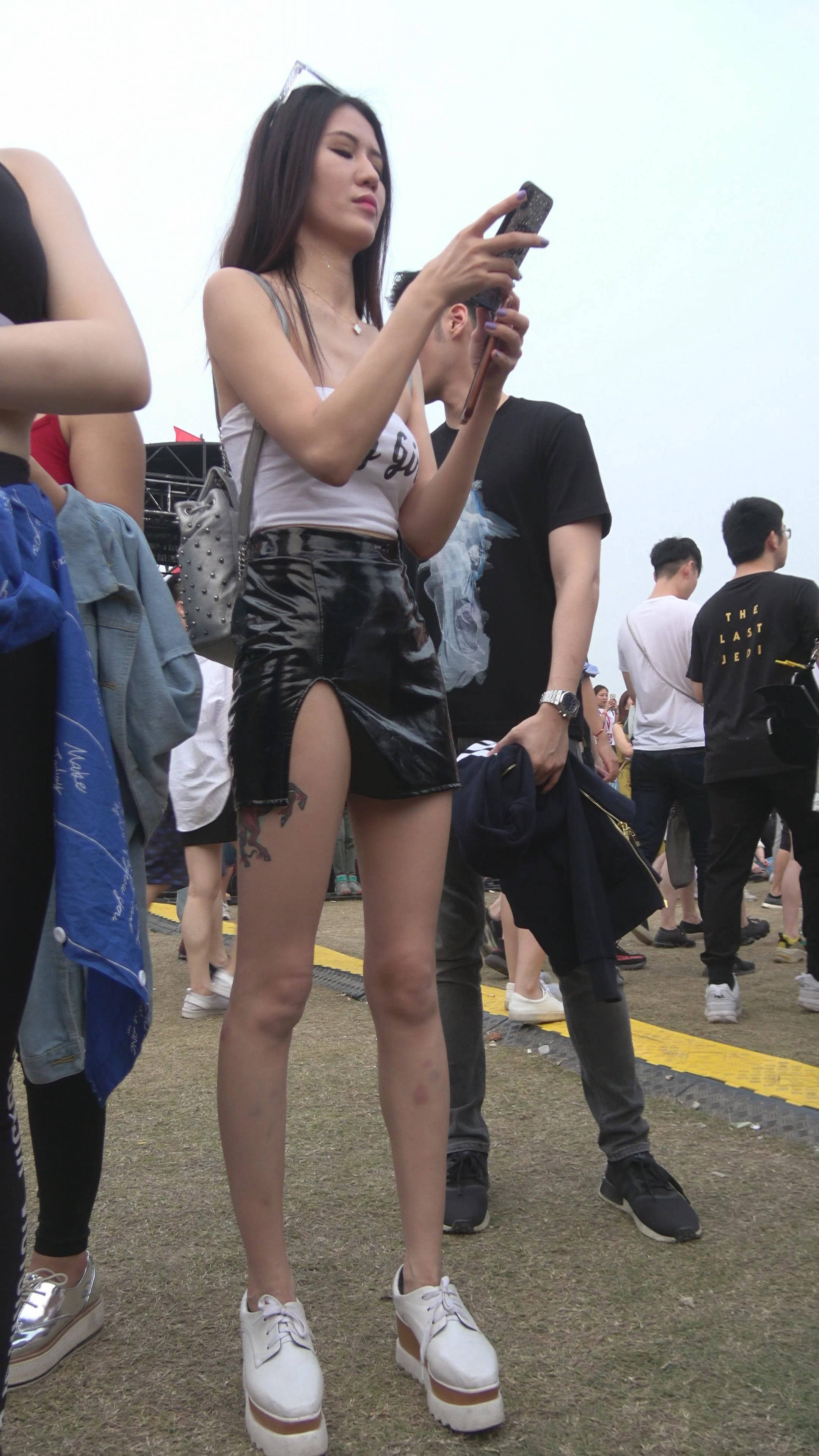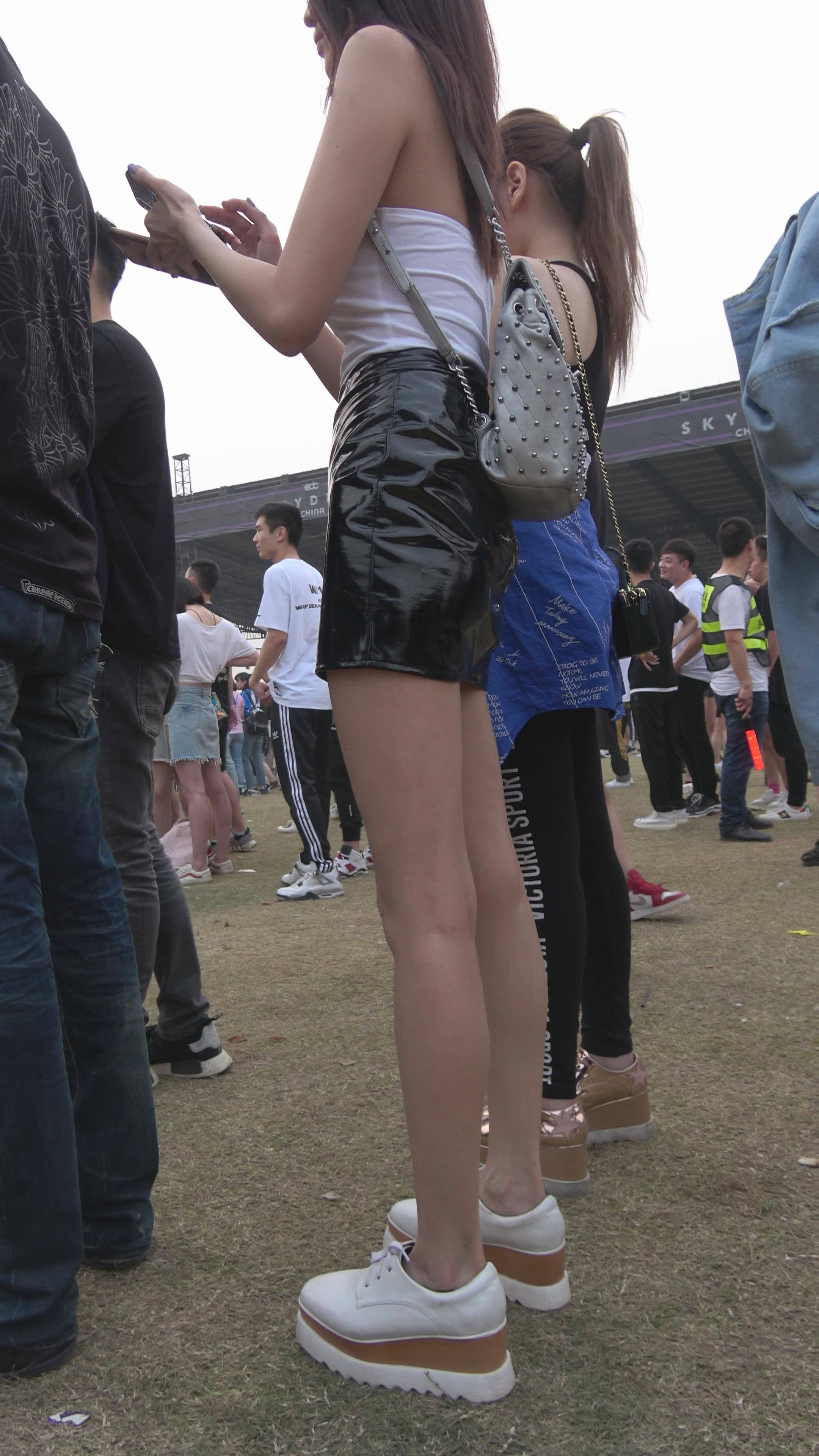 4K 高挑的街拍皮裙长腿美女 编号7489