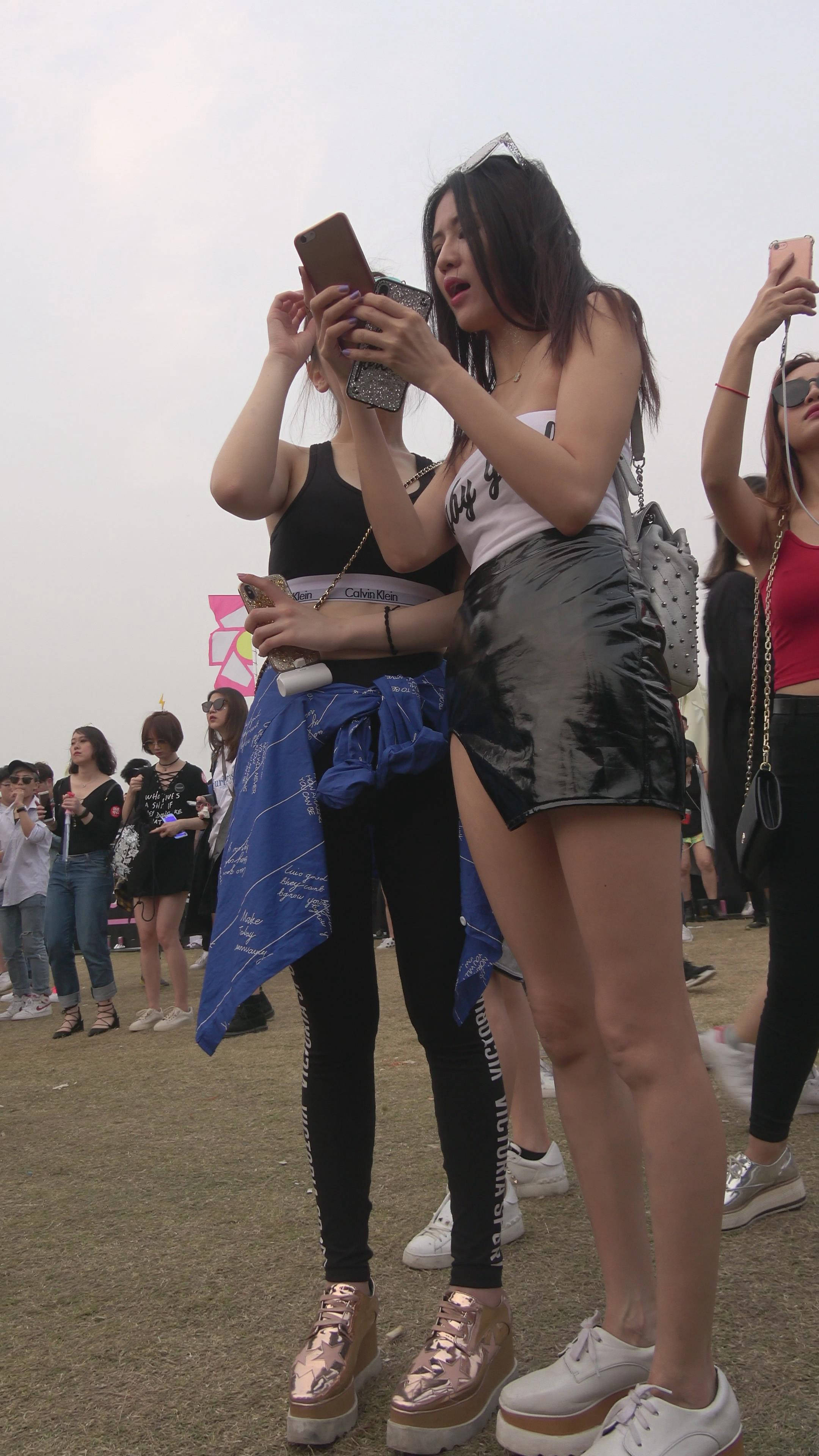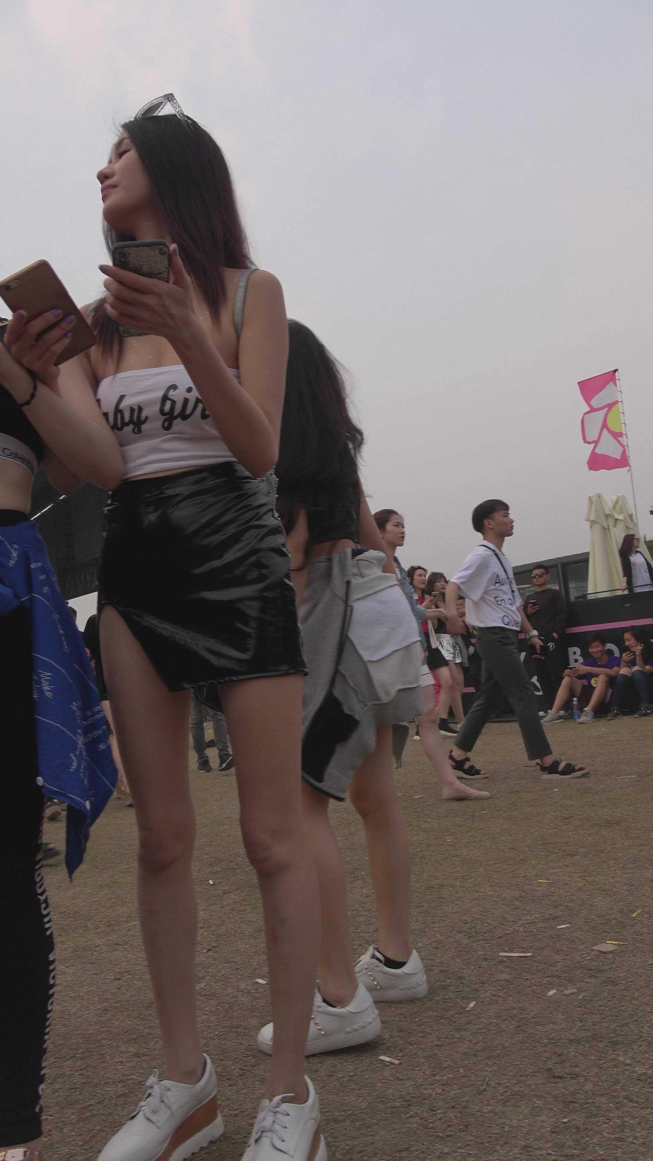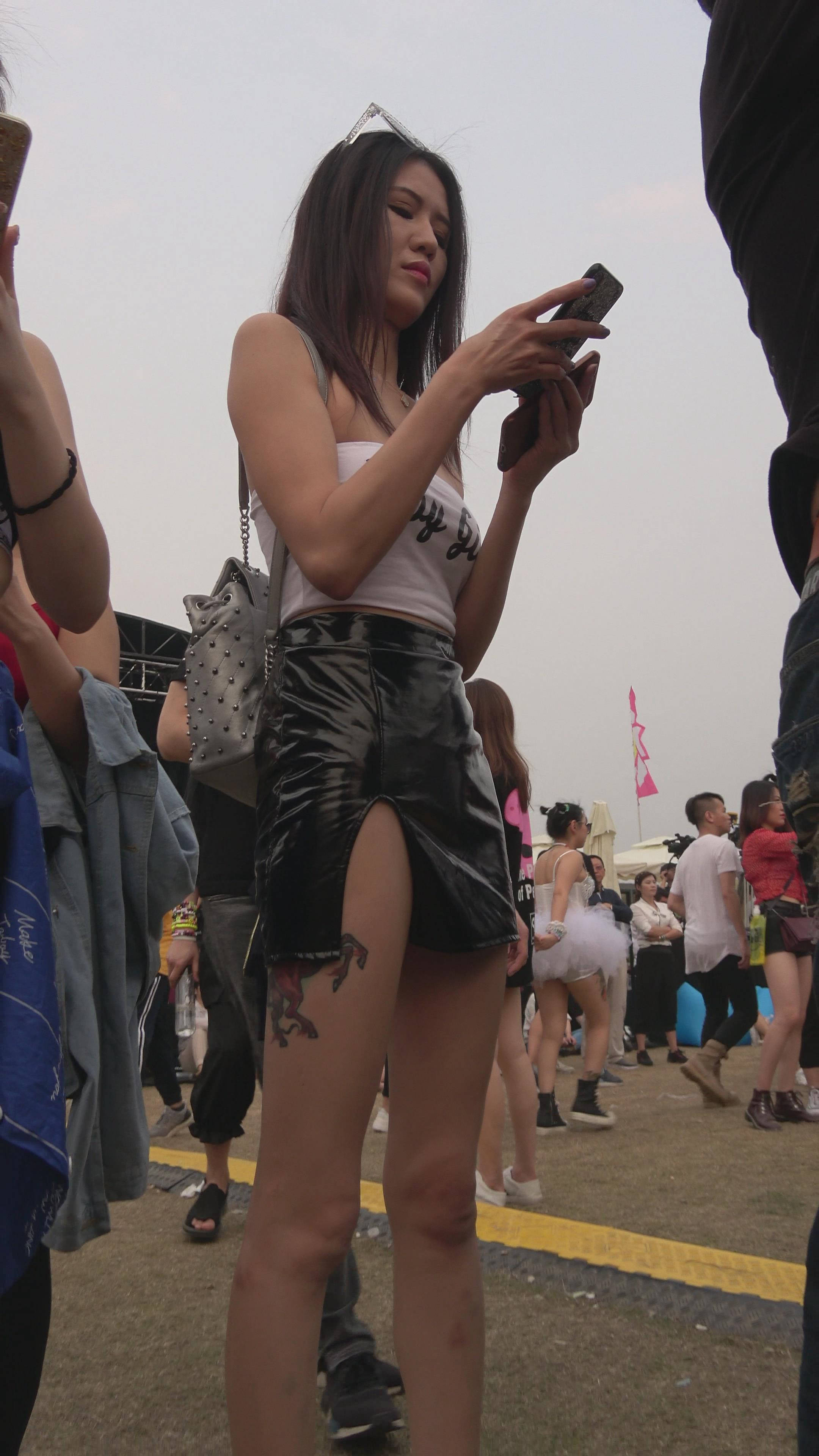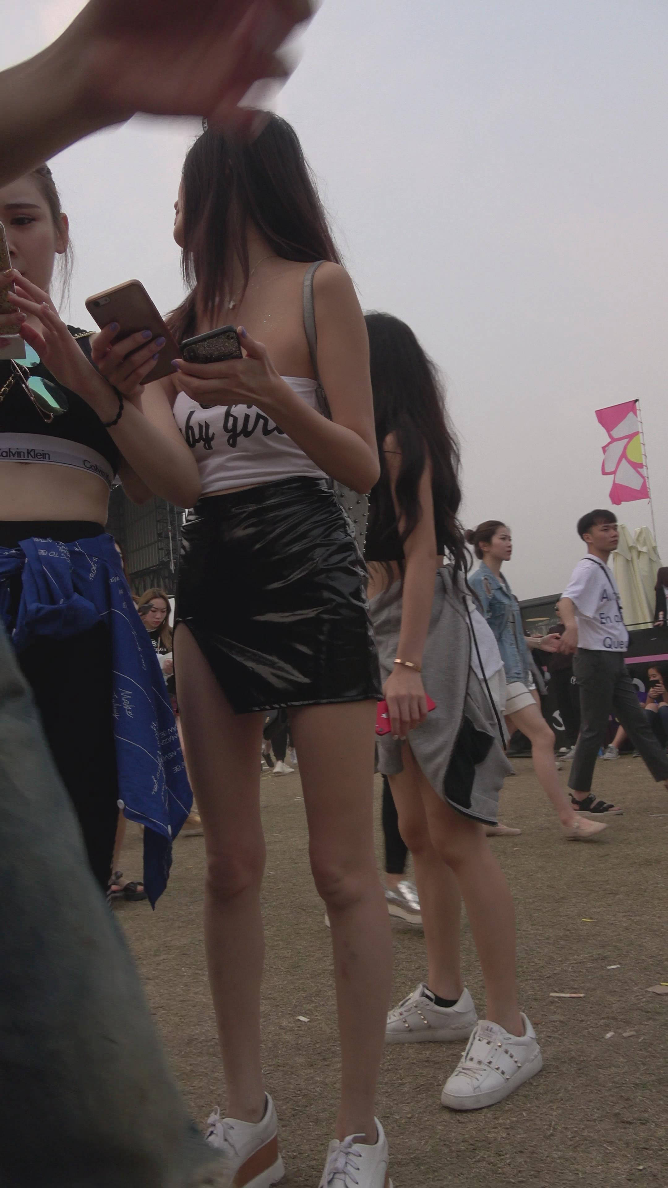 4K 高挑的街拍皮裙长腿美女 编号7489