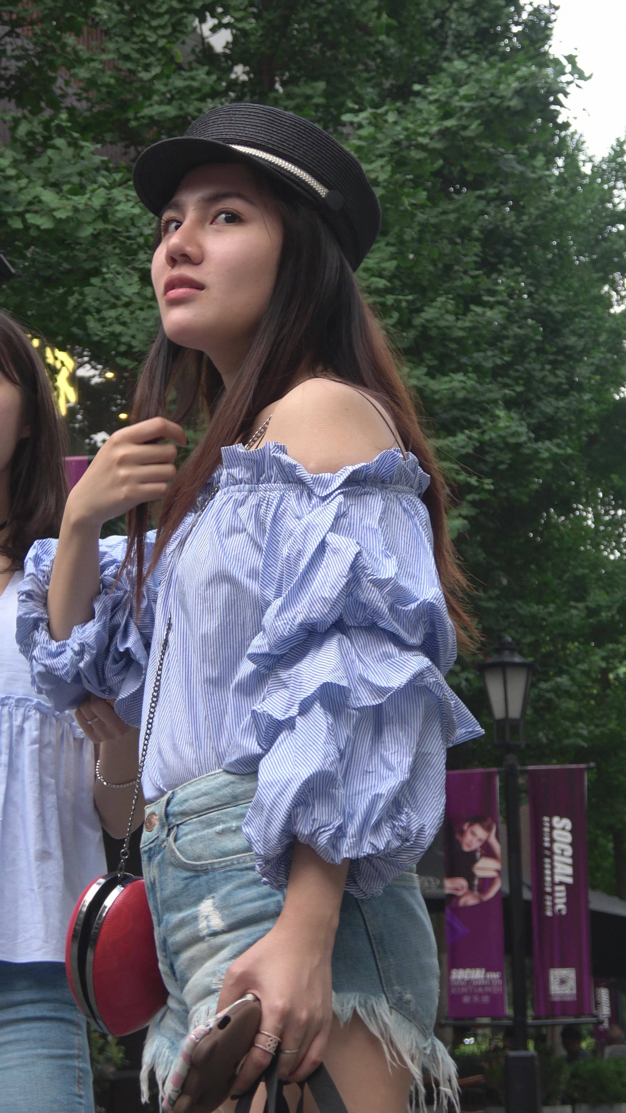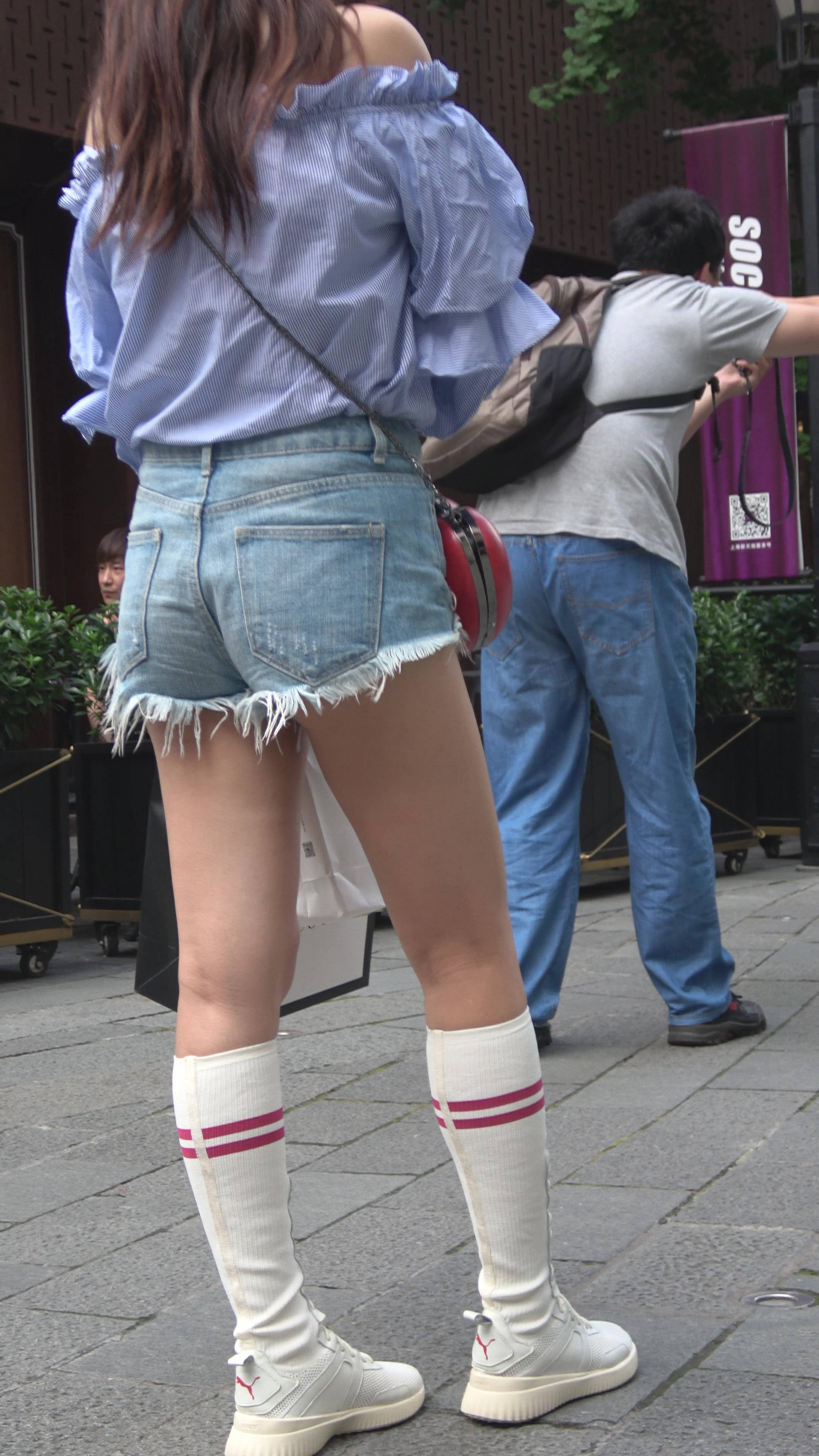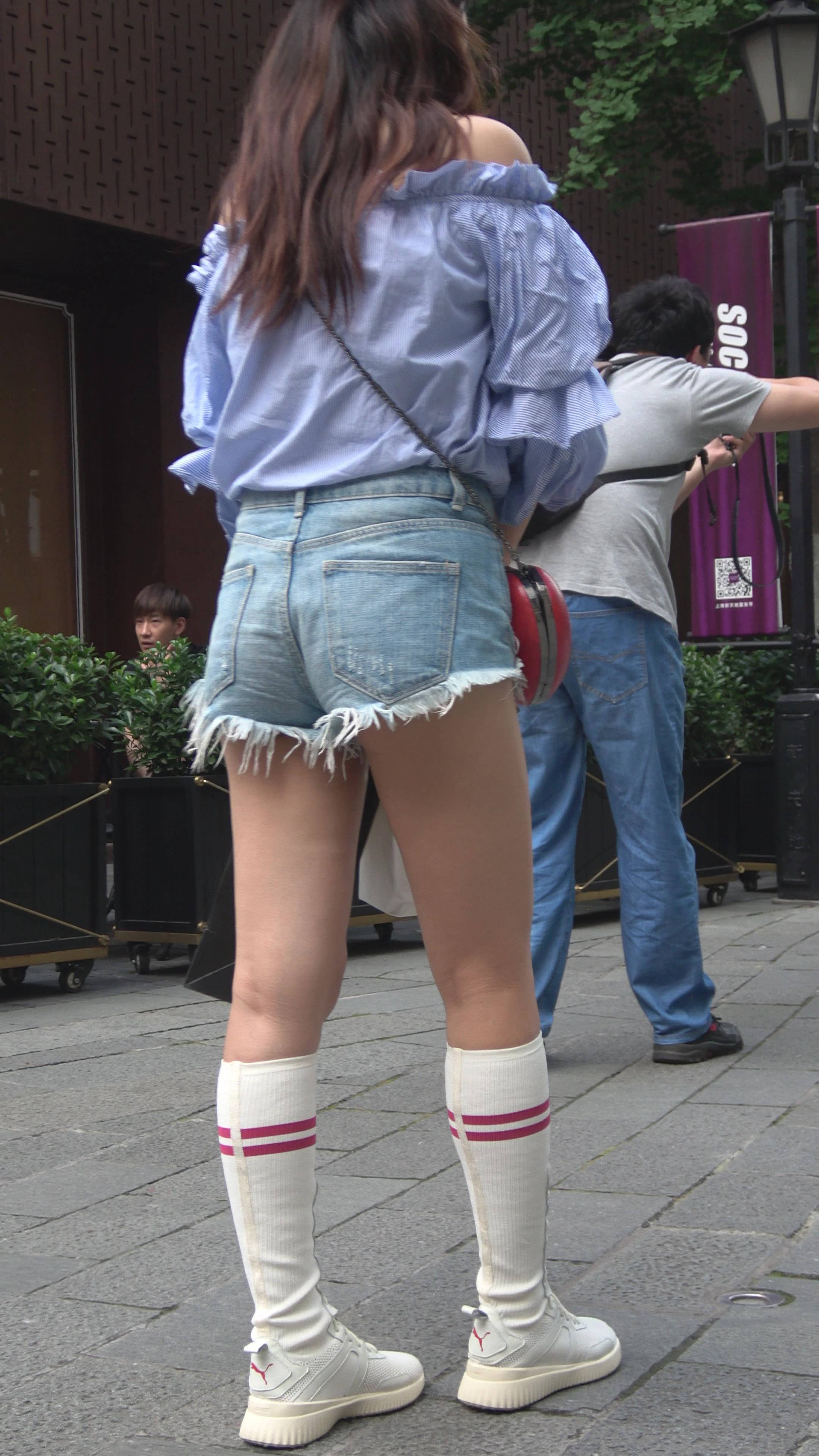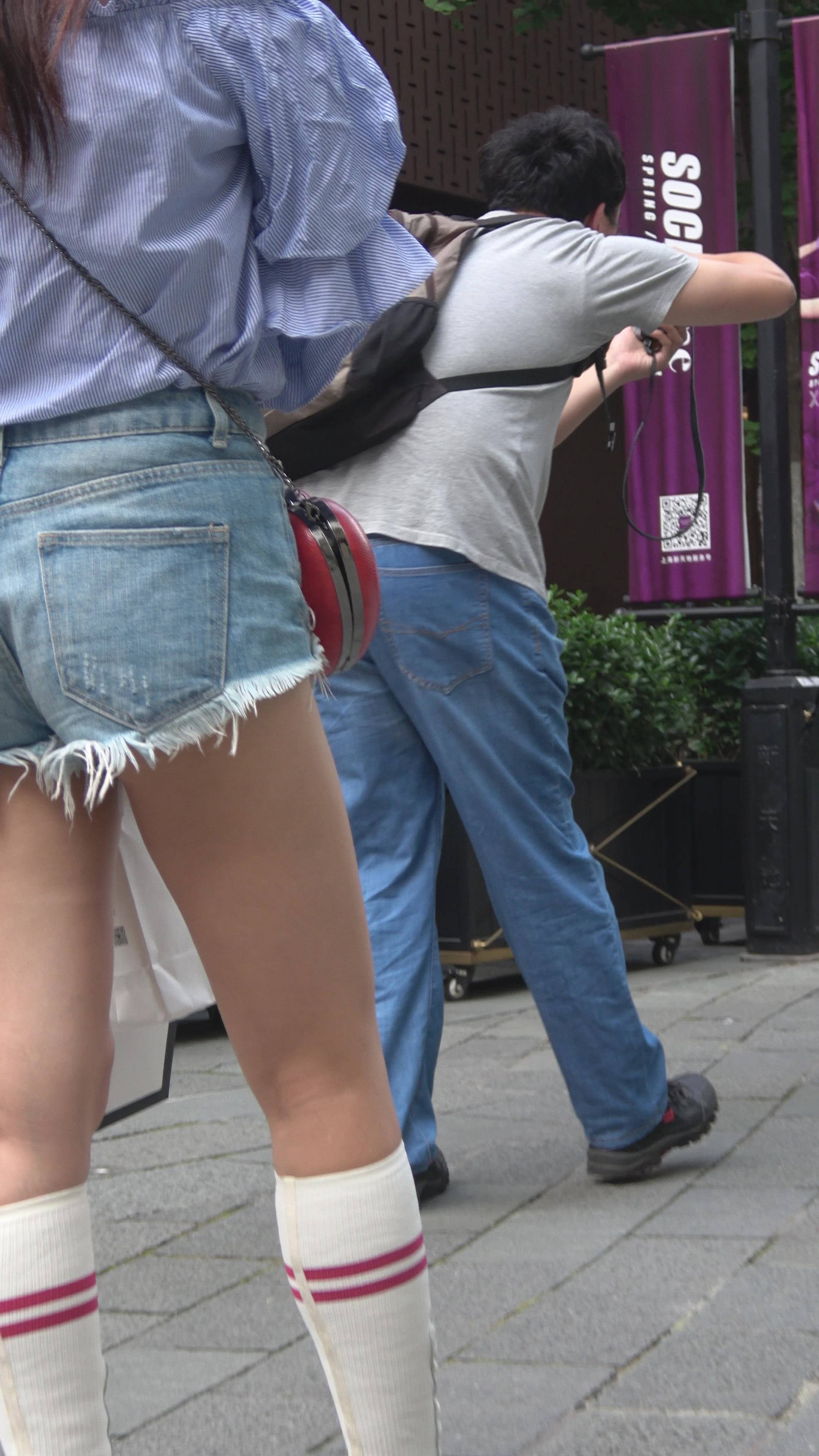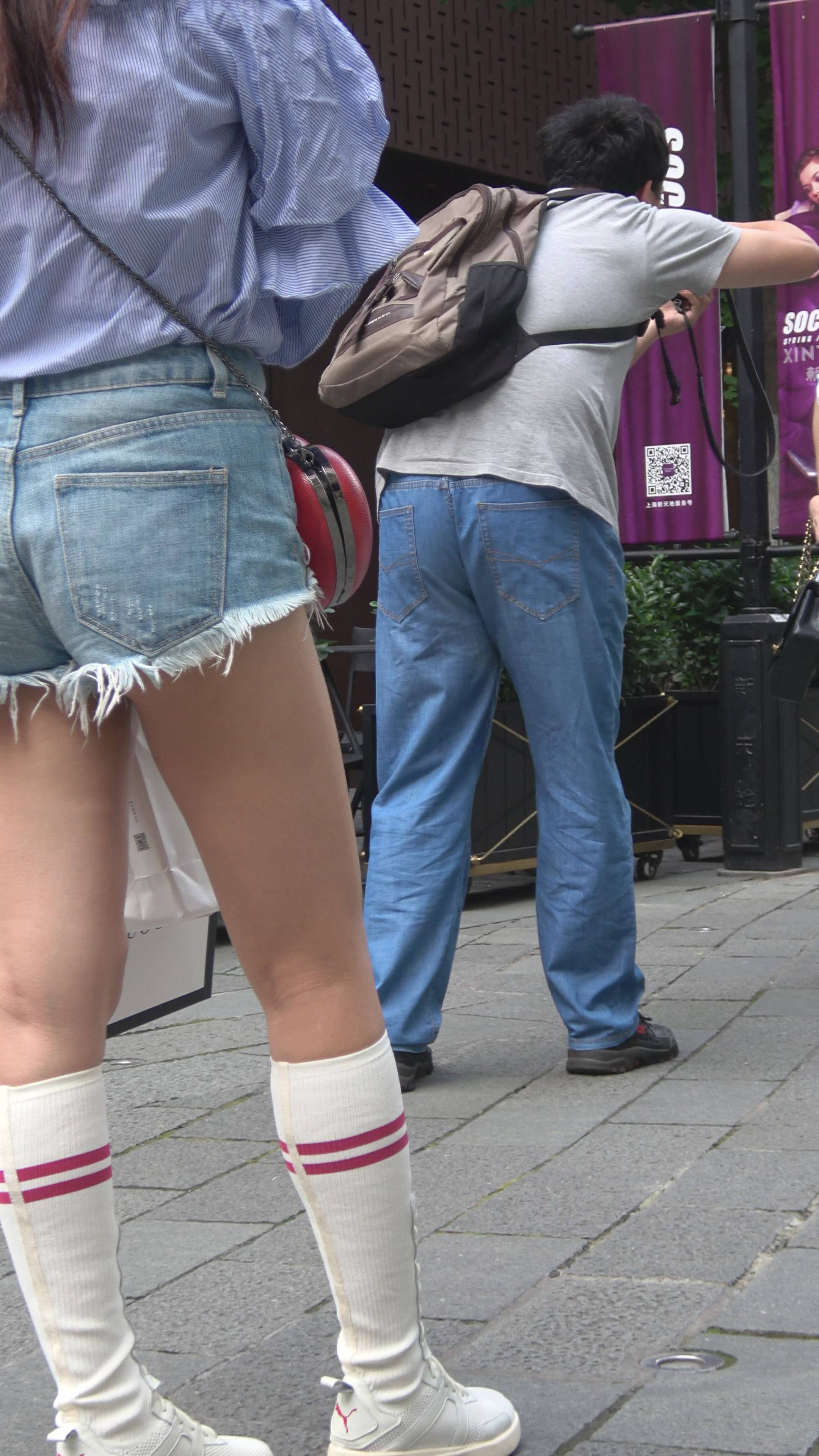 4K 街拍牛仔热裤美腿美女姐妹爱拍照 编号7497